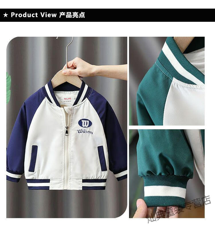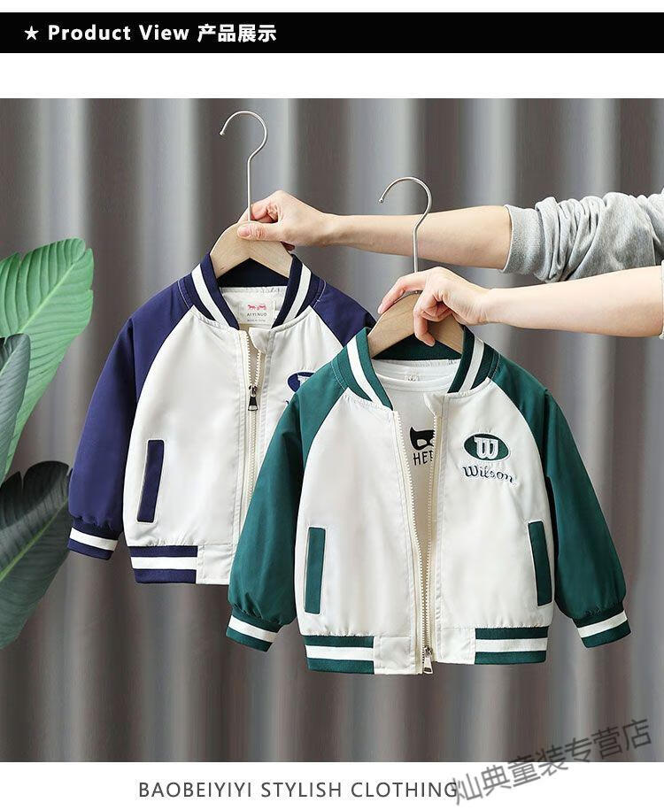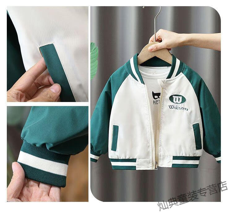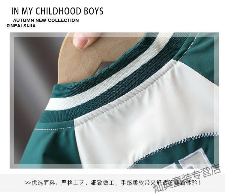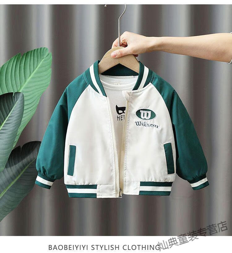 G.DUCKKIDS Boys' Jacket Thin Spring and Autumn Children's Baseball Style Fashionable Small and Medium-sized Boys' Casual Jacket Green Spring and Autumn Jacket 110 Recommended height 100-110