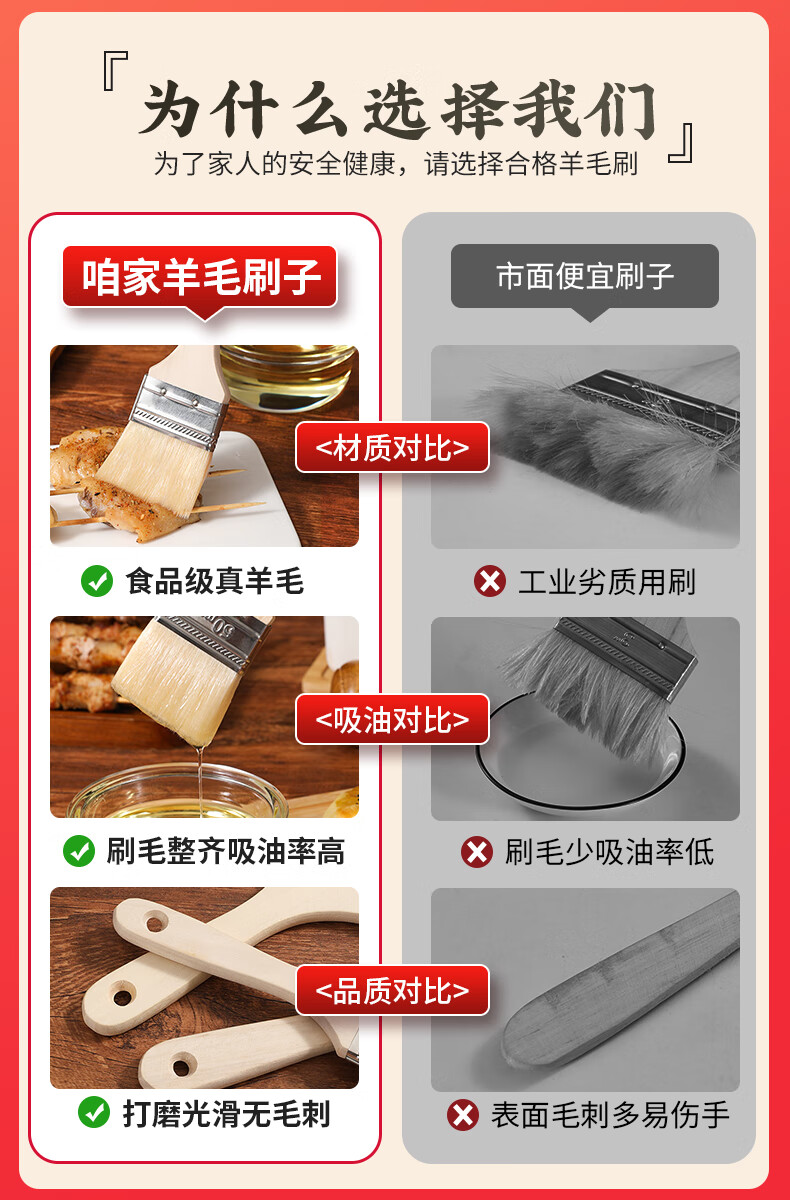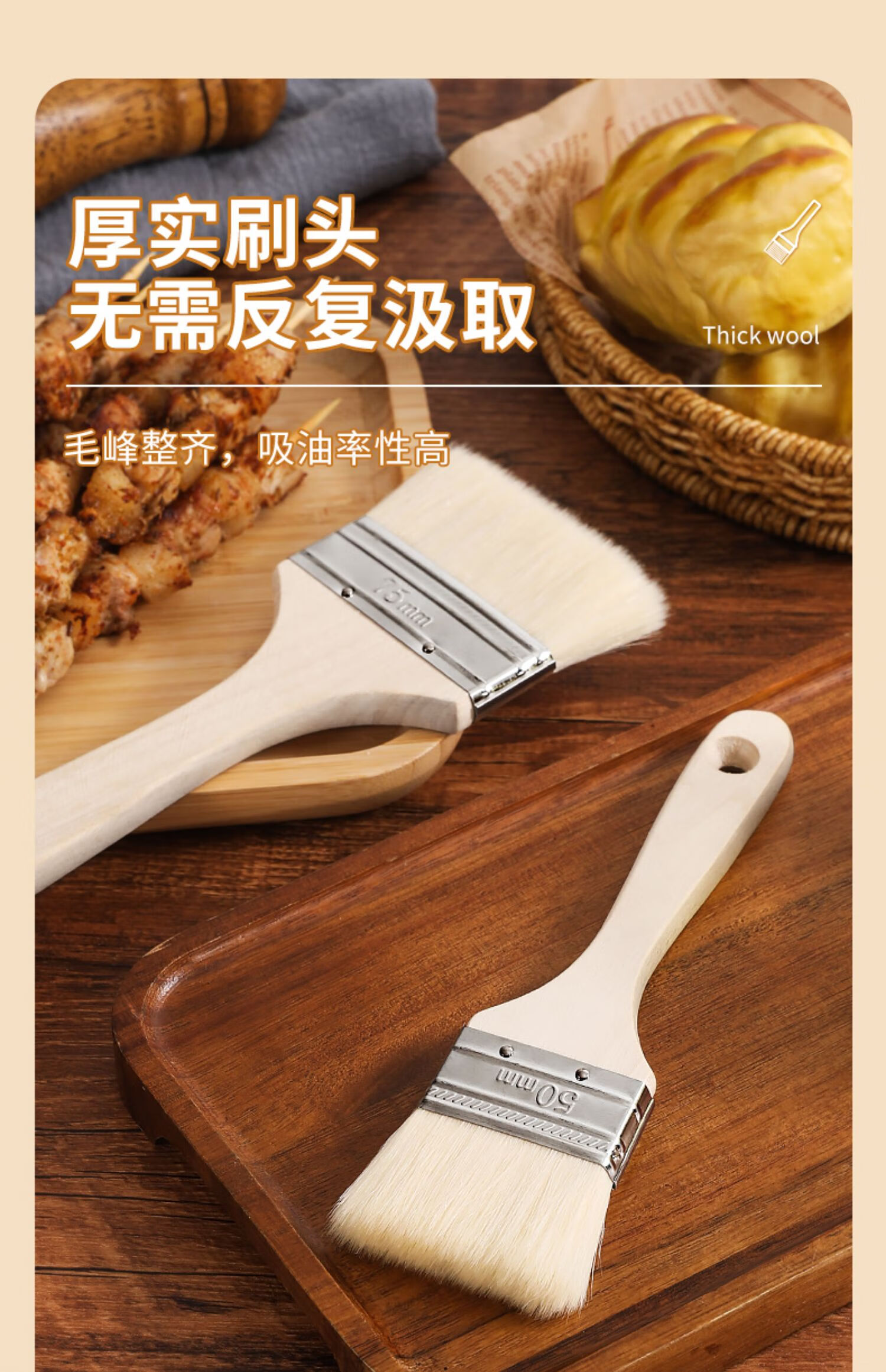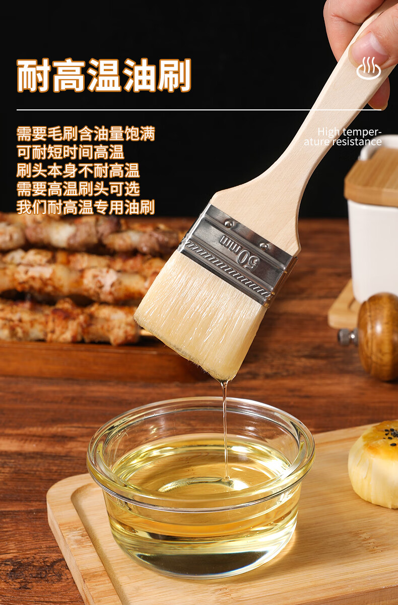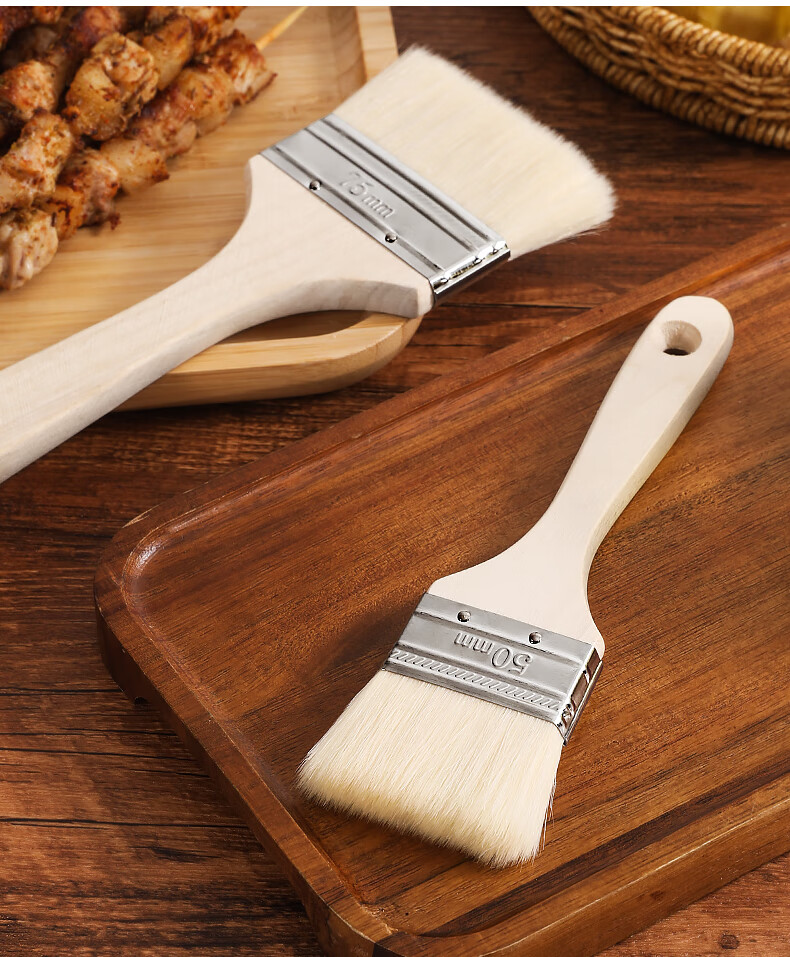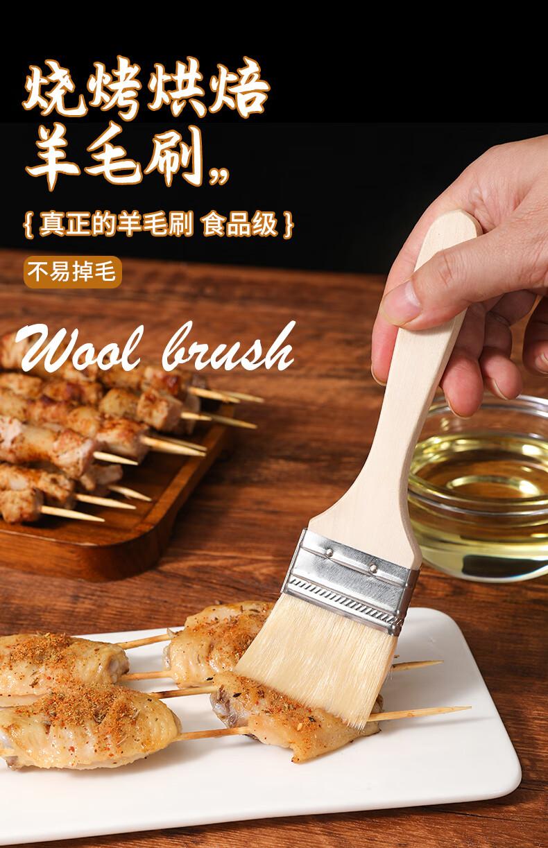 Ziwei Xiyang Food Grade Wool Brush BBQ Oil Brush Kitchen Pancake Brush Oil Sauce Supplies Tools Household Baking High Temperature Resistant Small 3 Pack Large - Wool Brush Food Grade Material
