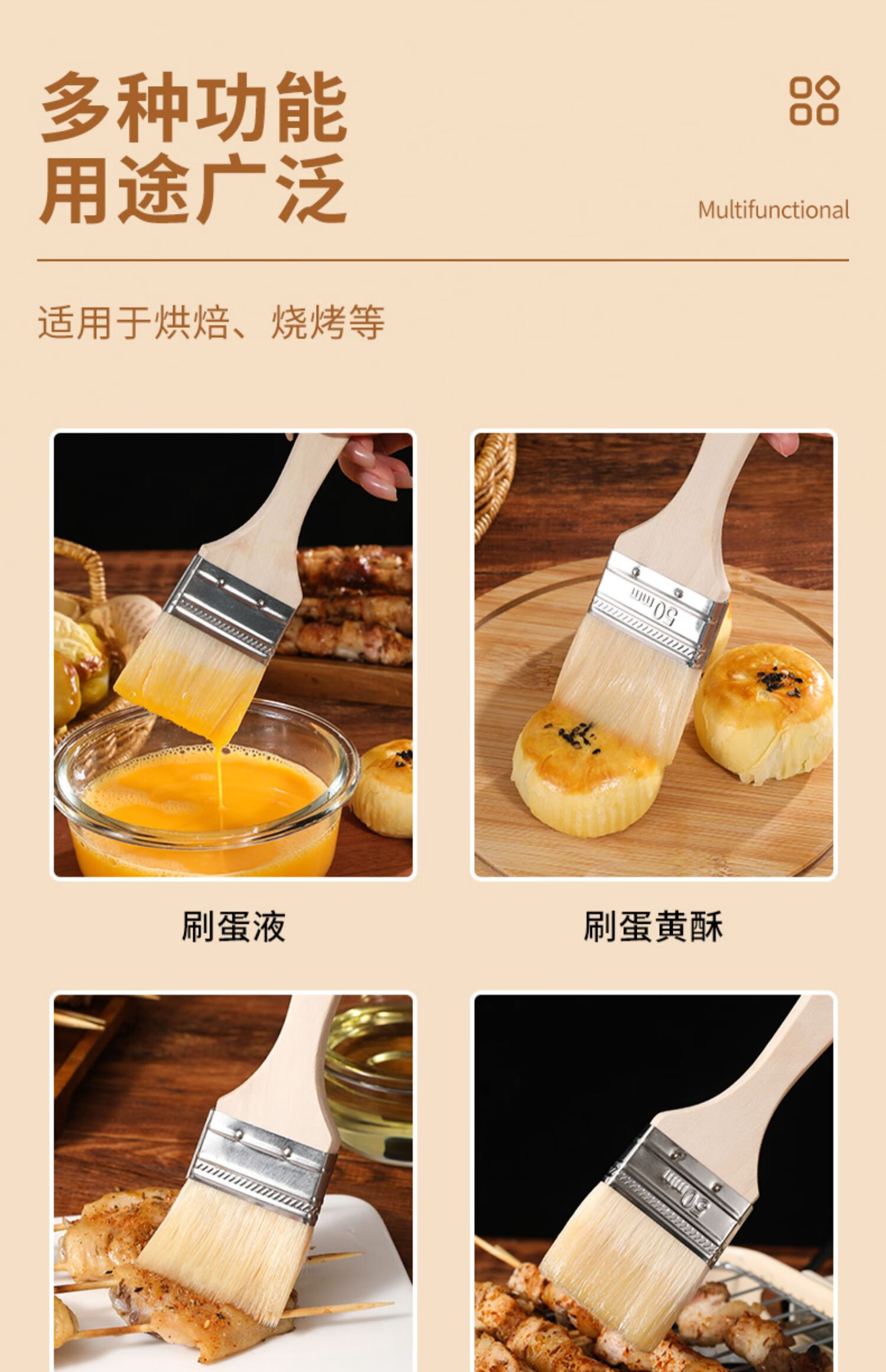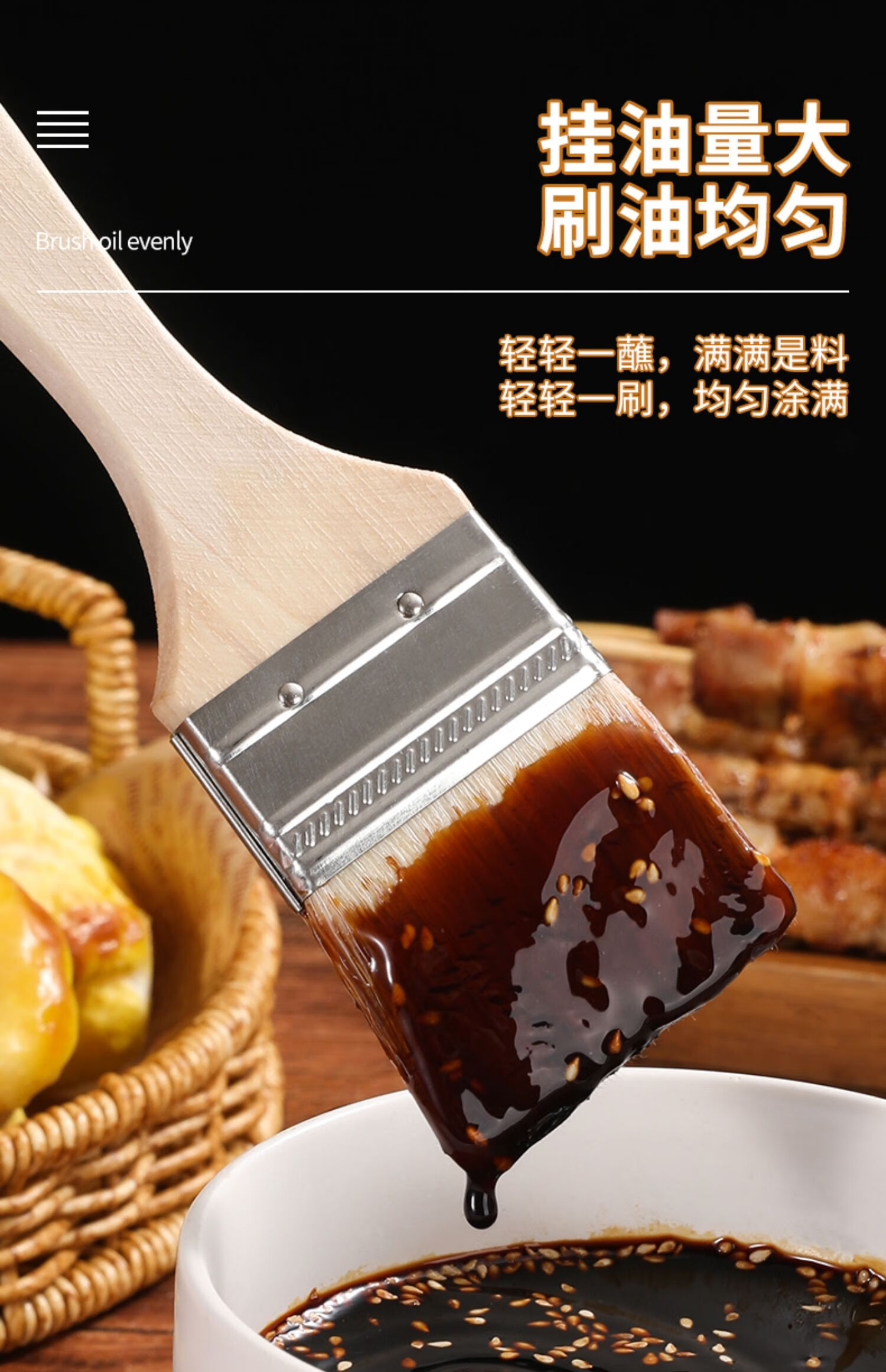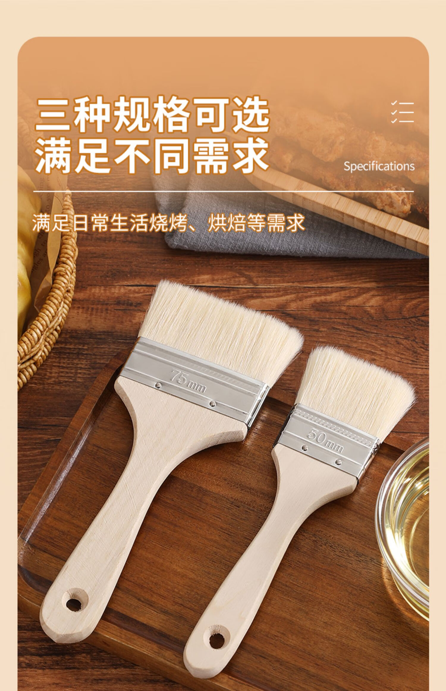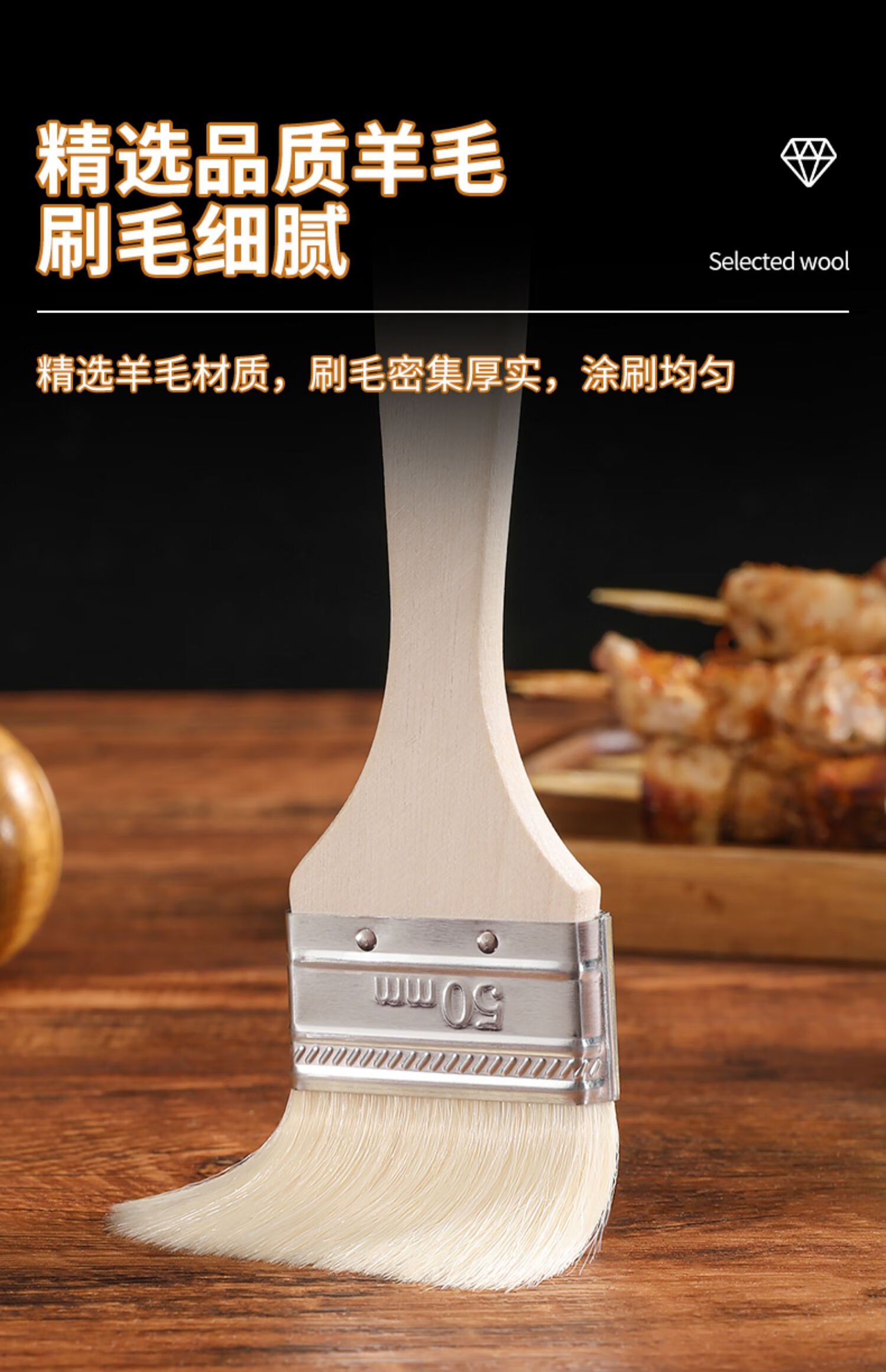 Ziwei Xiyang Food Grade Wool Brush BBQ Oil Brush Kitchen Pancake Brush Oil Sauce Supplies Tools Household Baking High Temperature Resistant Small 3 Pack Large - Wool Brush Food Grade Material