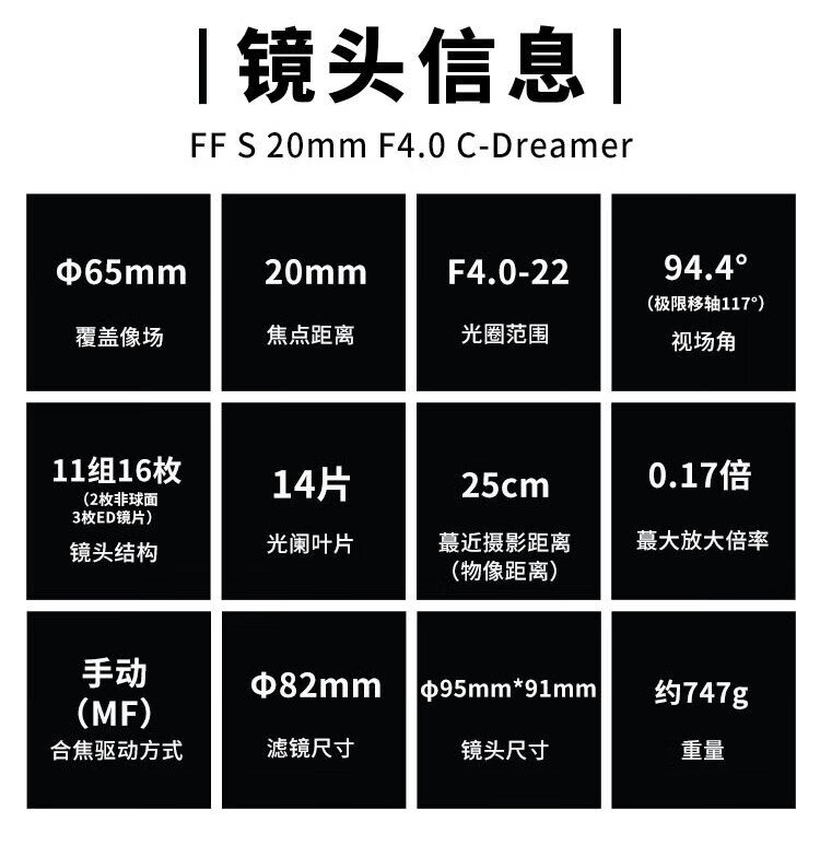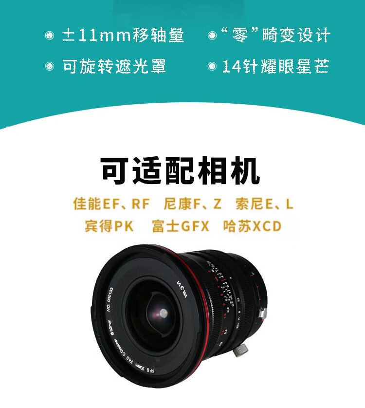 LAOWA 20mm f4.0 ultra-wide-angle tilt-shift full-frame zero-distortion lens, suitable for landscape and architectural photography, black standard, Hasselblad XCD port