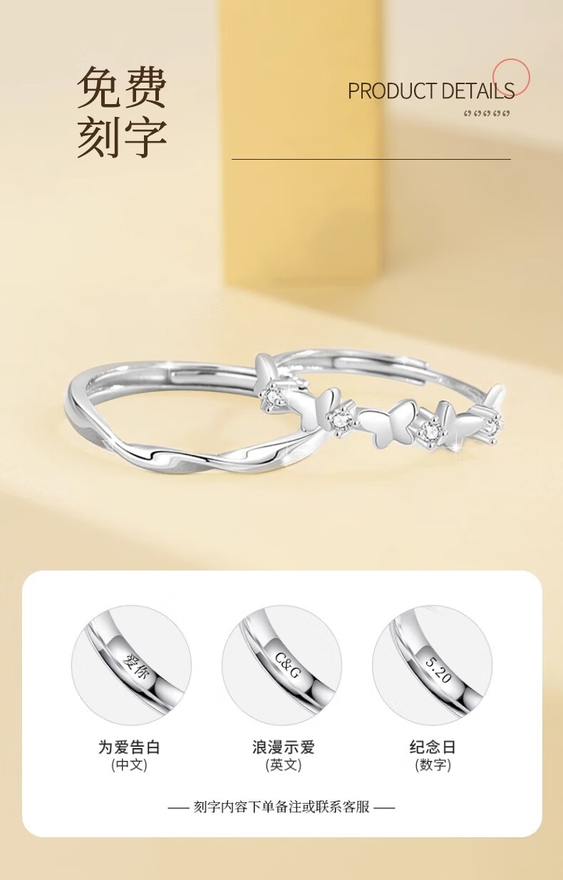 CHINA GOLD pure silver ring Möbius ring butterfly couple ring female Valentine's Day birthday gift for girlfriend and wife couple model pure silver butterfly love couple ring brand gift box