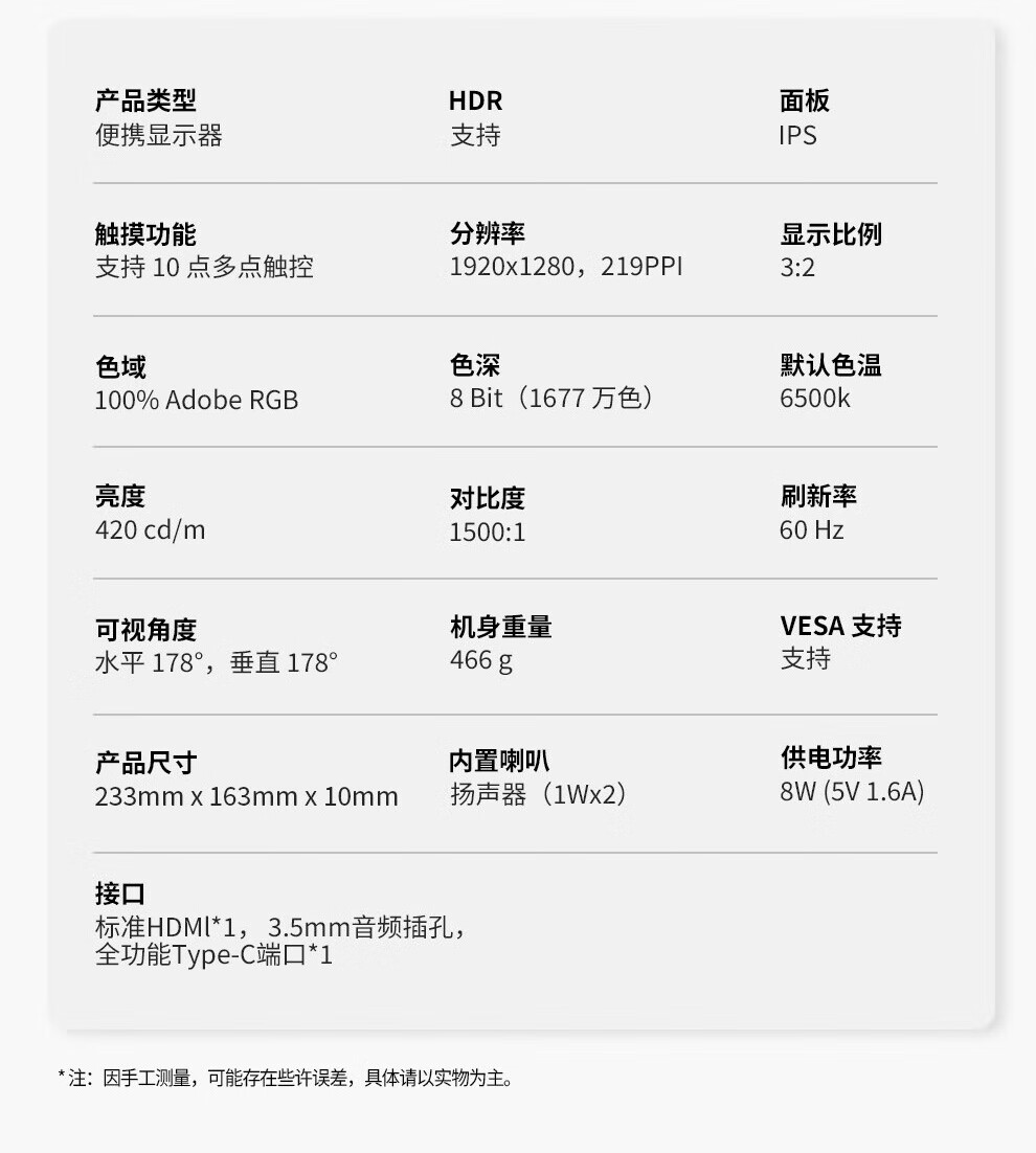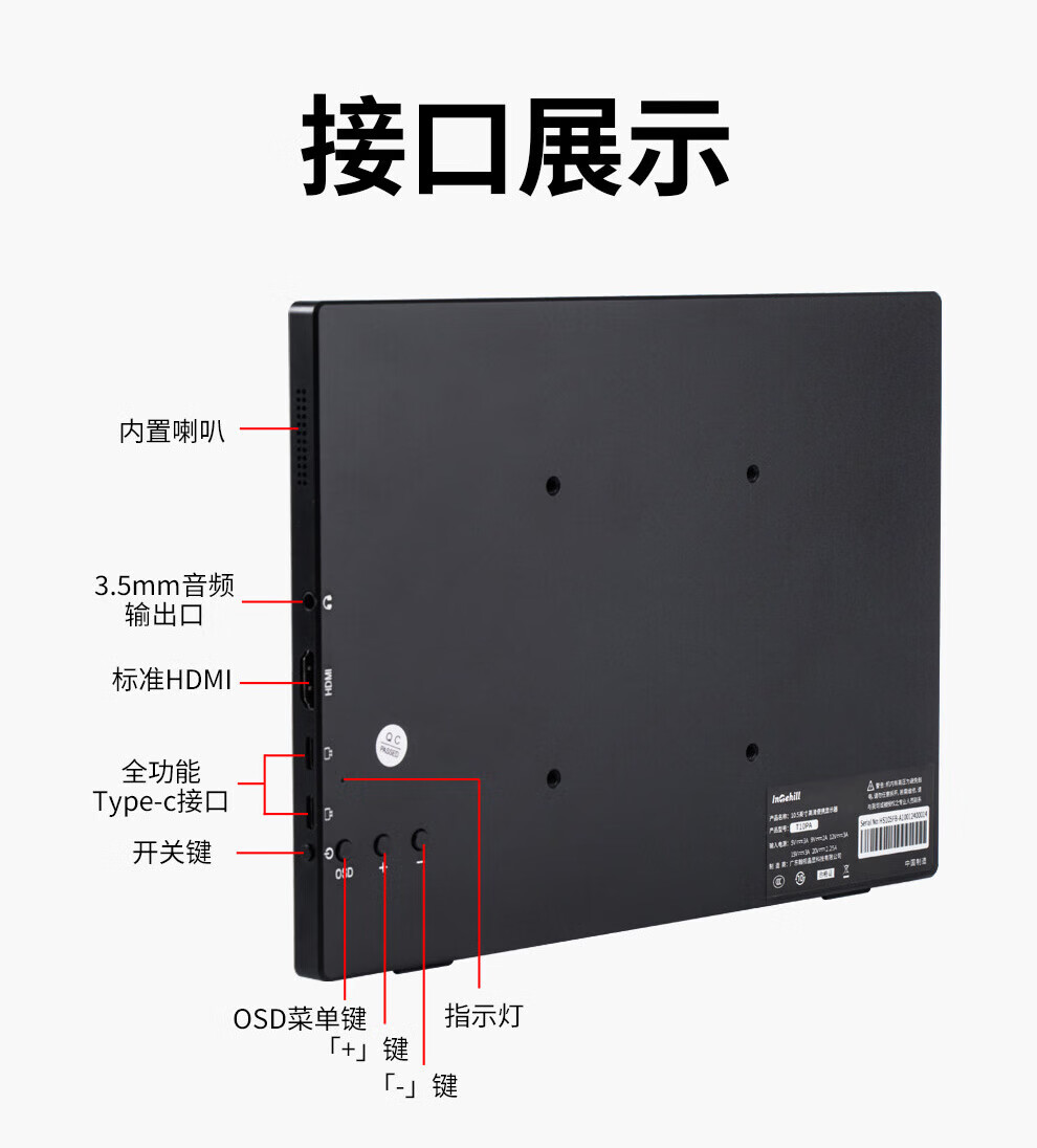 InTehill 10-inch portable display full-fit touch laptop extended secondary screen switch one-line direct connection industrial equipment computer medical equipment display T10PA 10-inch full-fit touch (1920x1280)