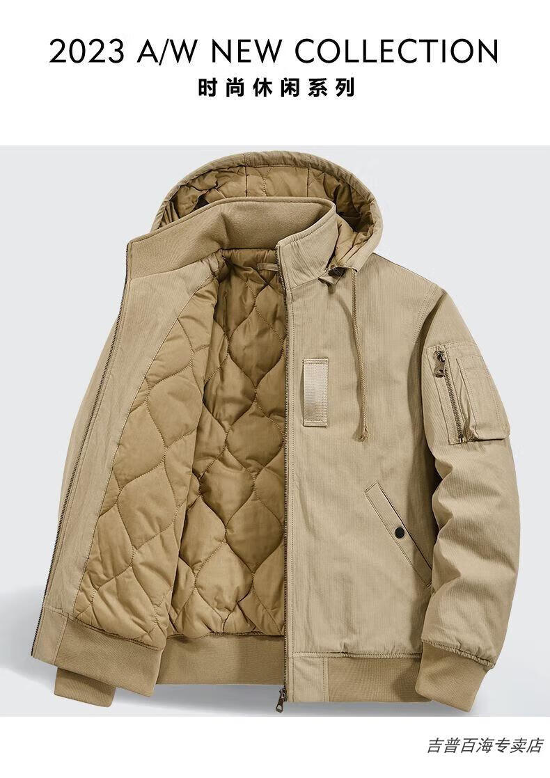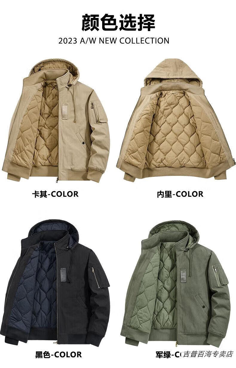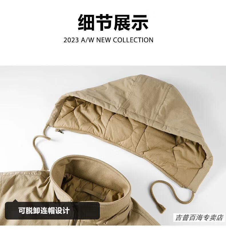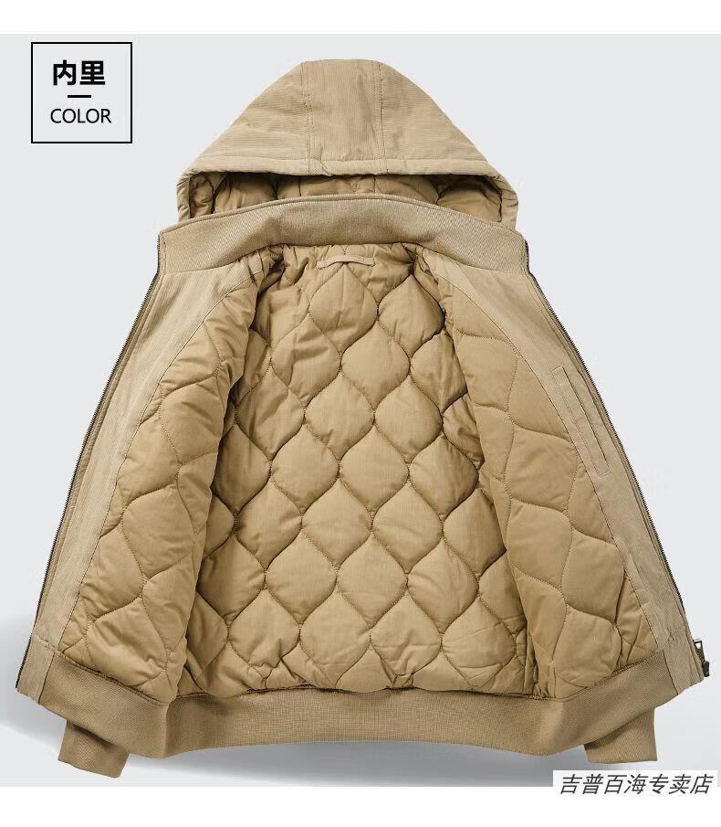 JEEP SPIRIT pure cotton coat men's autumn and winter loose large size workwear thickened American retro hooded jacket cotton jacket for men Khaki M Recommended 100Jin Jin is equal to 0.5kg -115Jin Jin is equal to 0.5kg