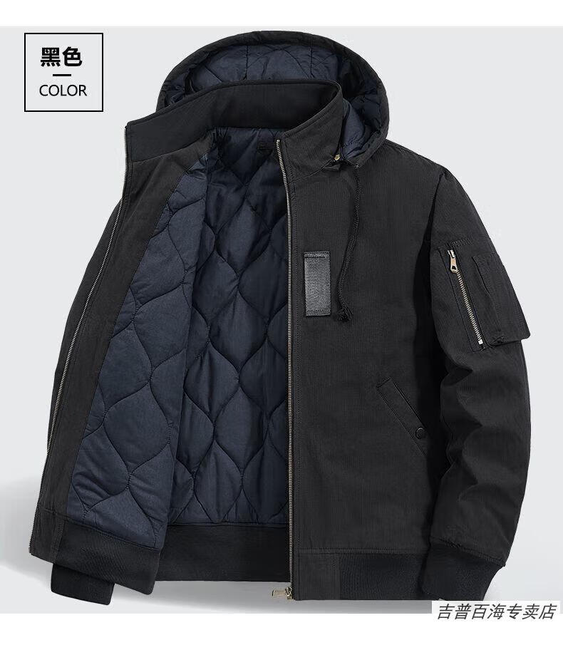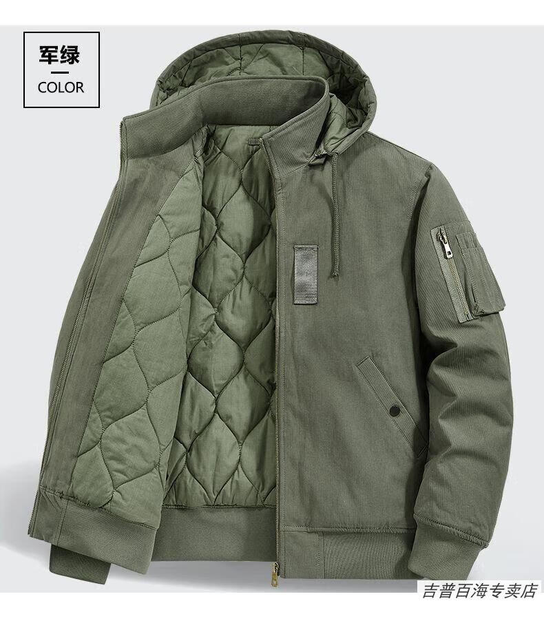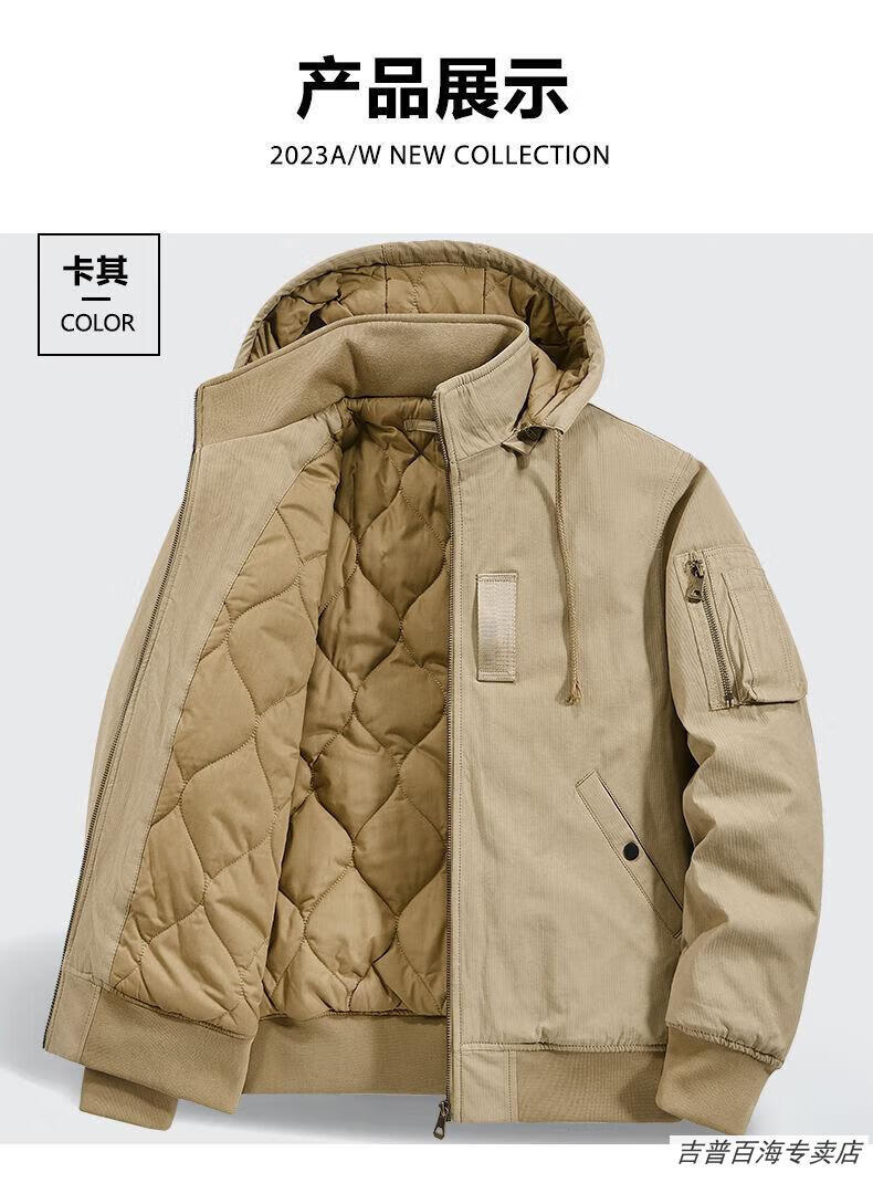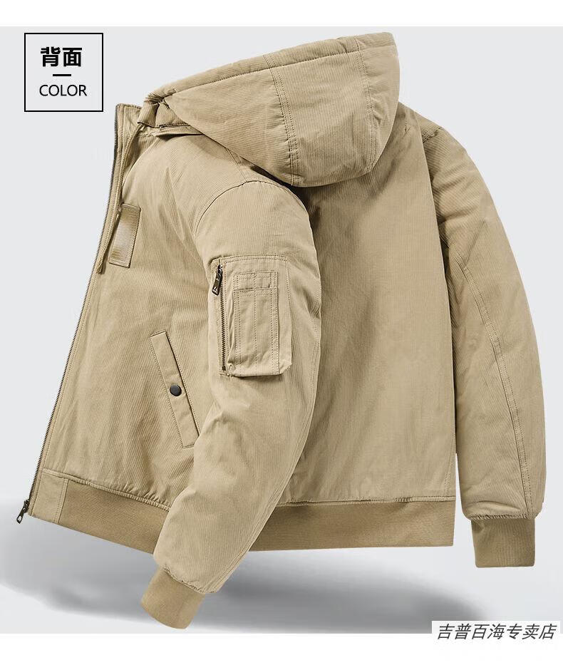 JEEP SPIRIT pure cotton coat men's autumn and winter loose large size workwear thickened American retro hooded jacket cotton jacket for men Khaki M Recommended 100Jin Jin is equal to 0.5kg -115Jin Jin is equal to 0.5kg