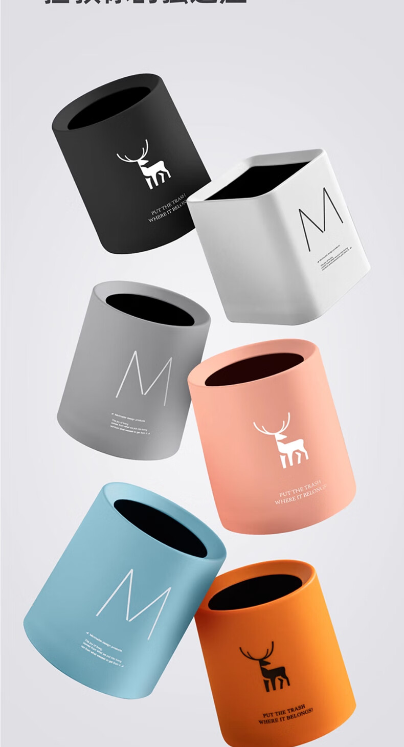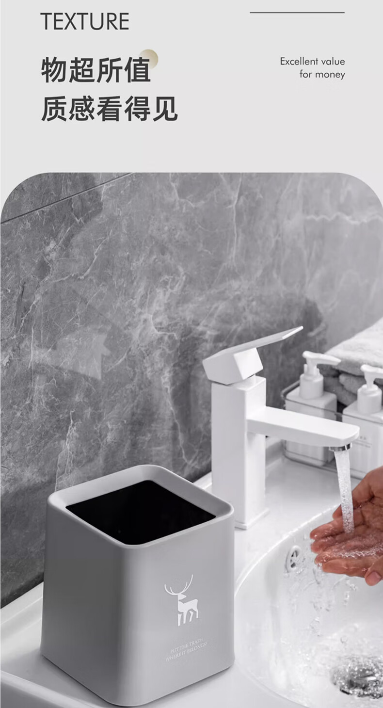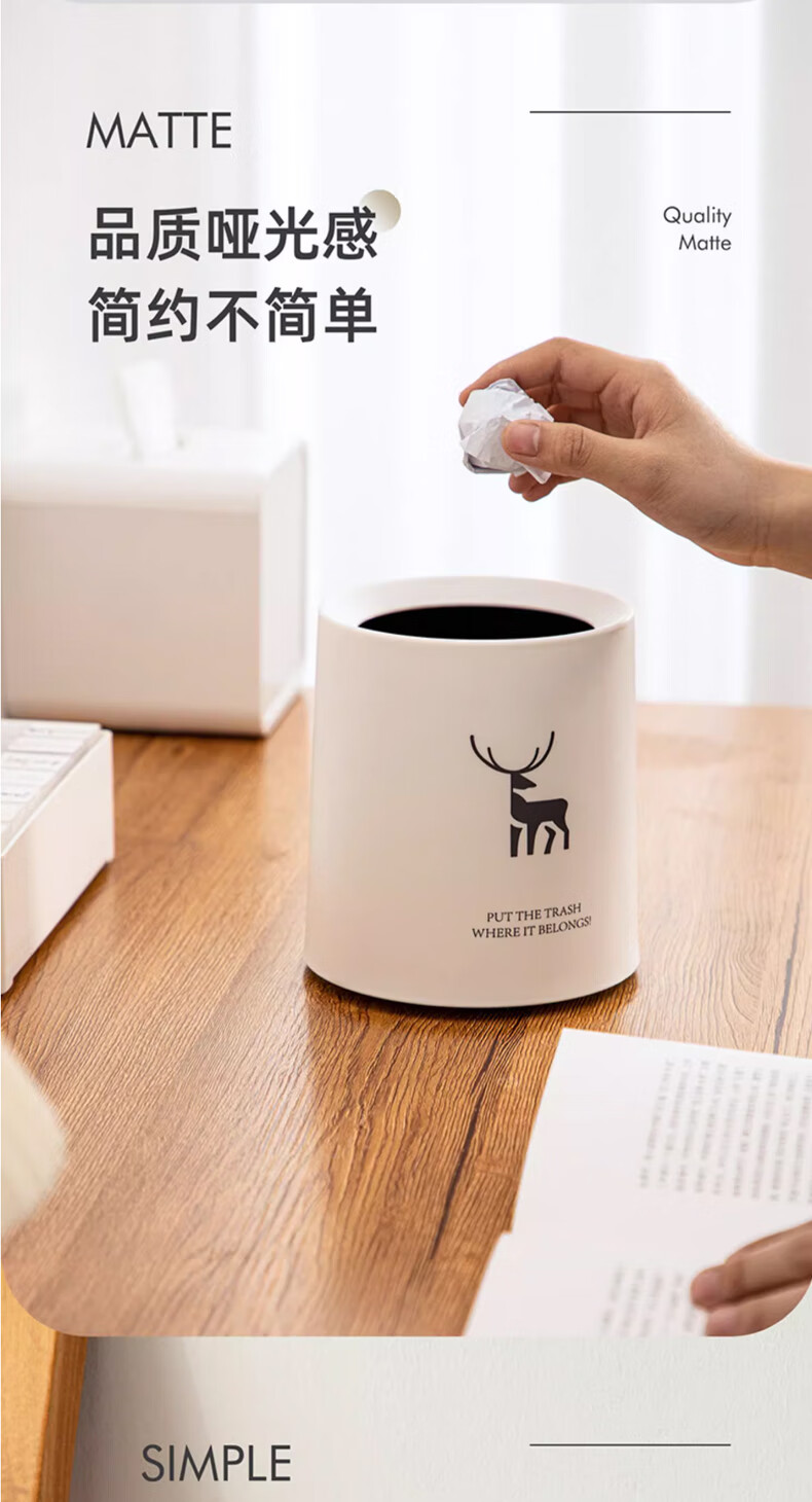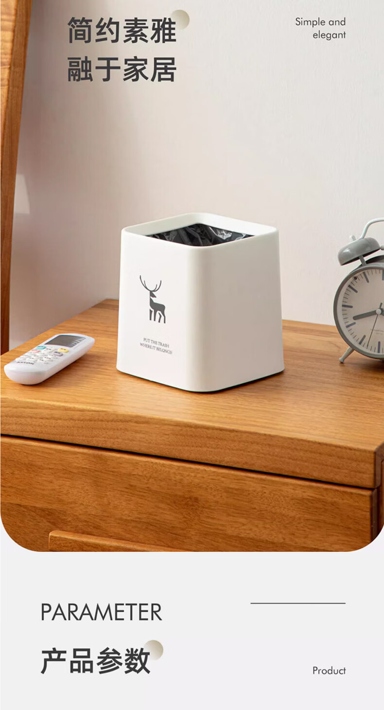 Fanxi Light Luxury Nordic Square Mini Coverless Desktop Trash Can Small Trash Can Living Room Office Coffee Table Storage Bucket Square White Deer 1 pc