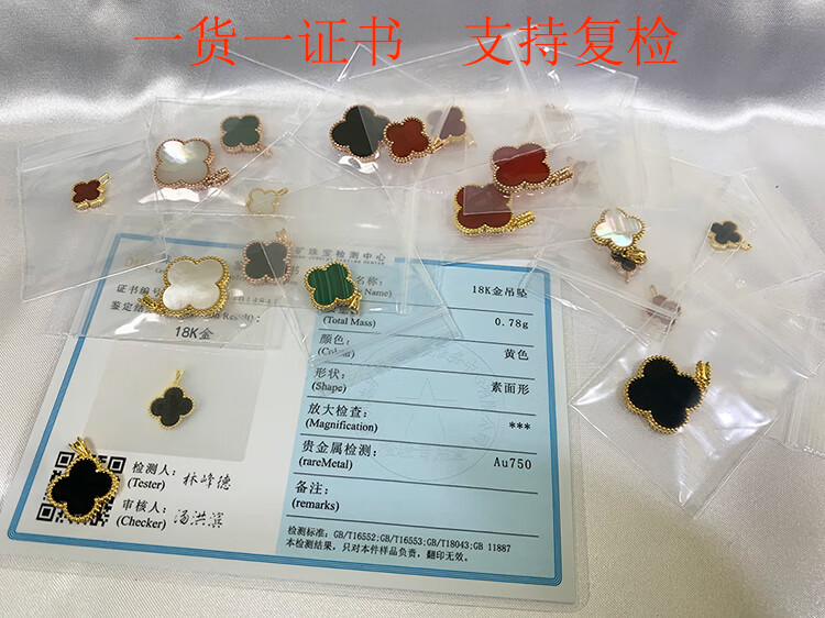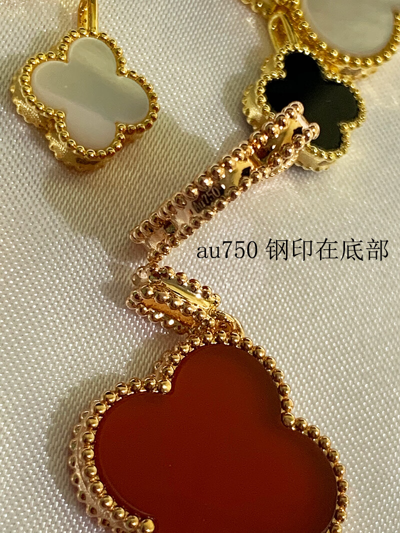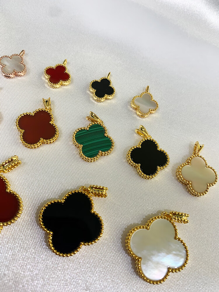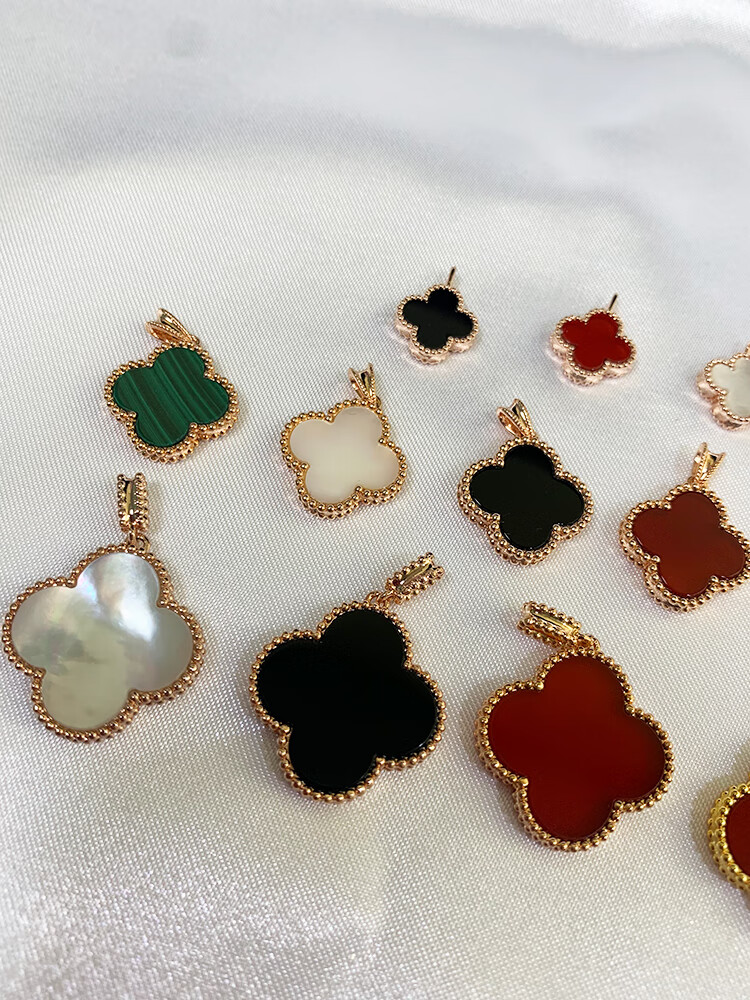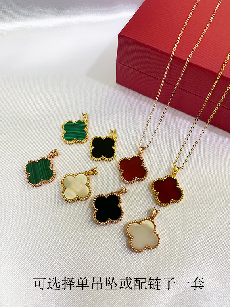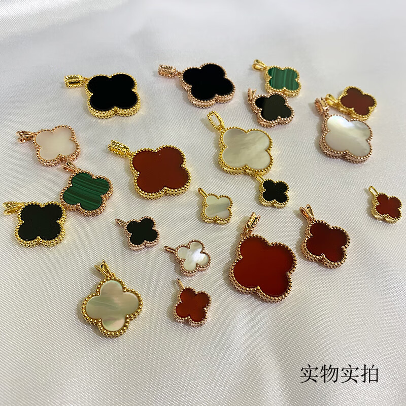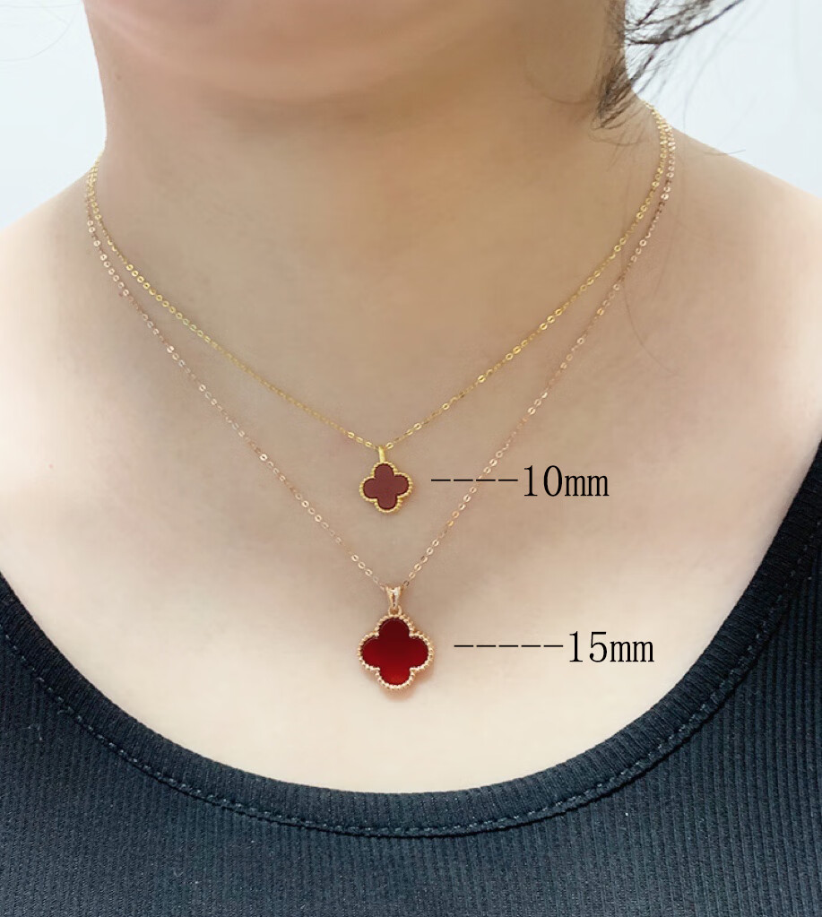 Amisha 18k gold AU750 real gold color gold four-leaf clover pendant necklace clavicle chain red and black agate pendant as a gift for girlfriend 20mm carnelian 18K rose gold (single pendant)