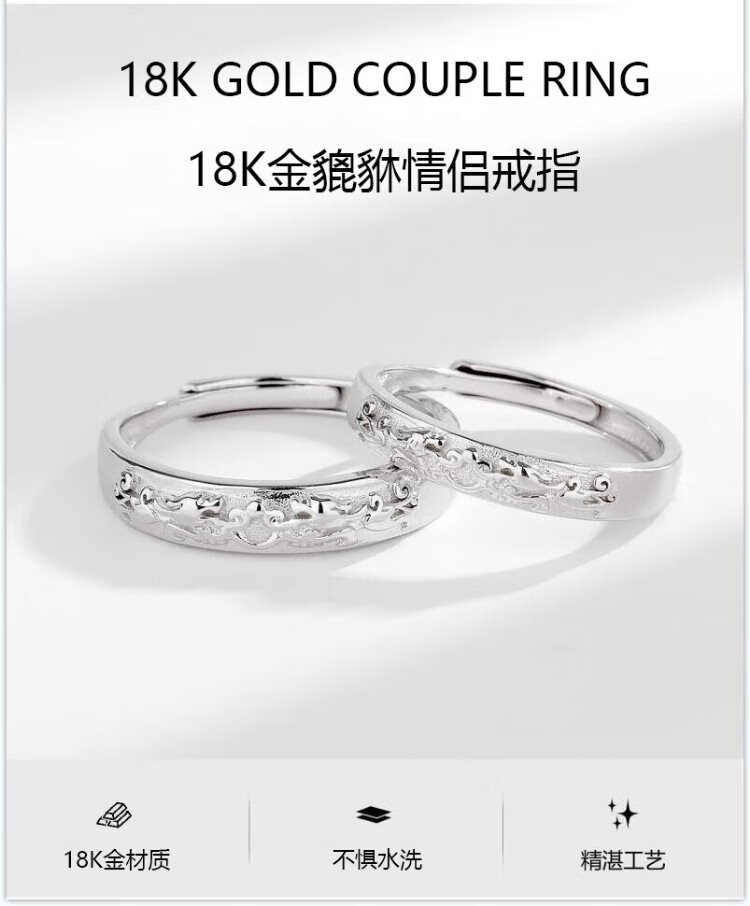 RHM 18K gold Pixiu ring for men and women, couple ring to attract wealth, birthday, Valentine's Day gift for girlfriend 18K gold Pixiu ring (women's model) + certificate