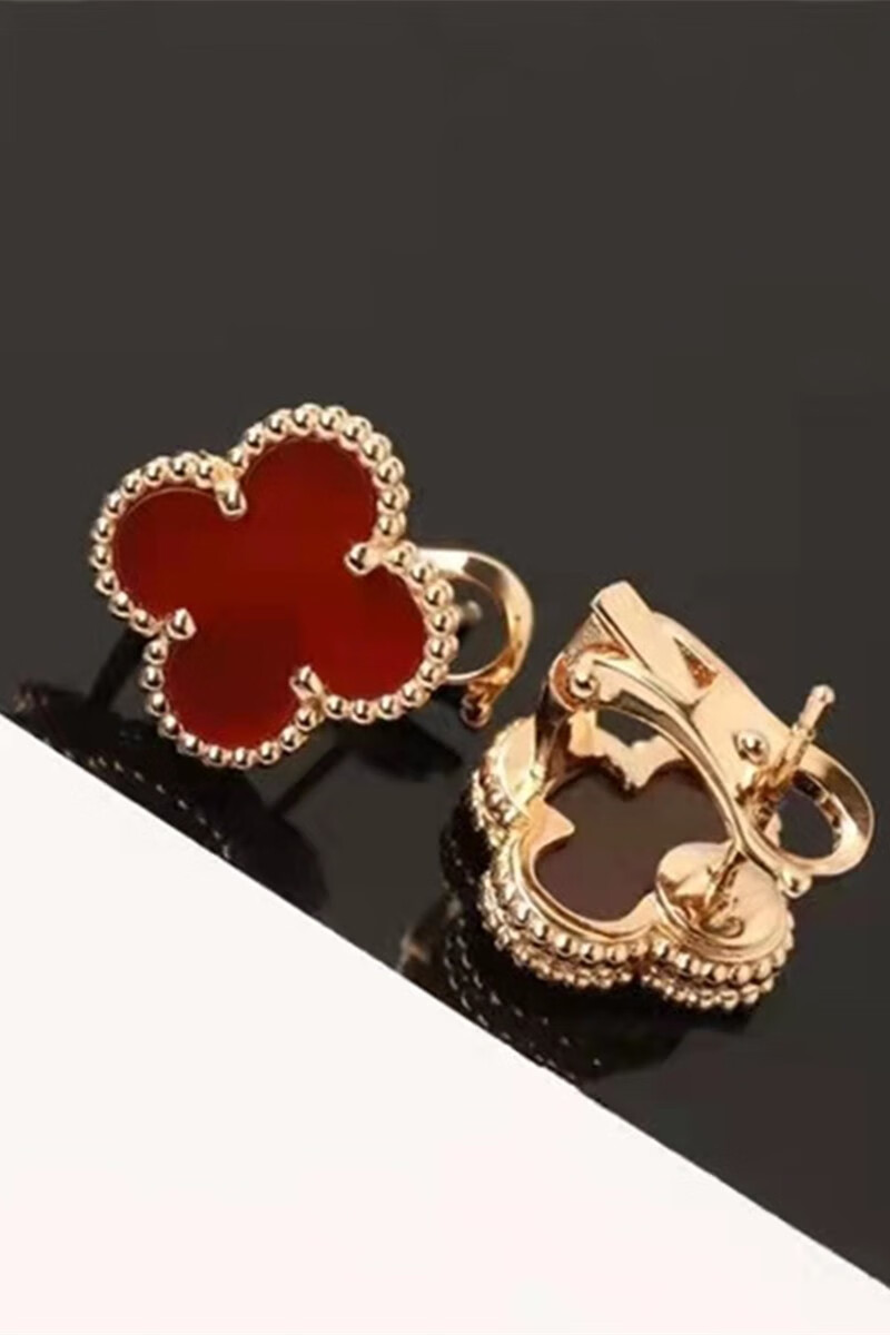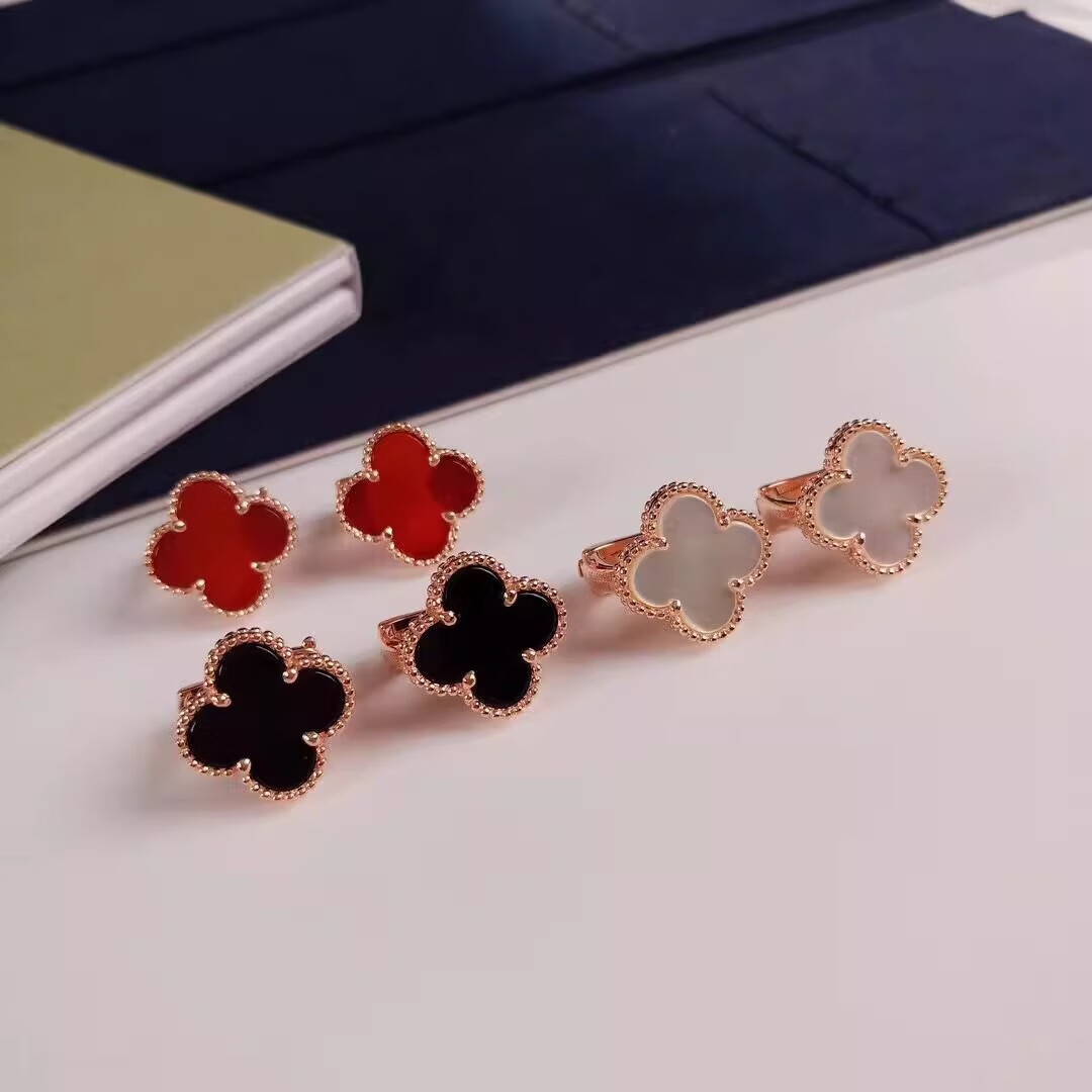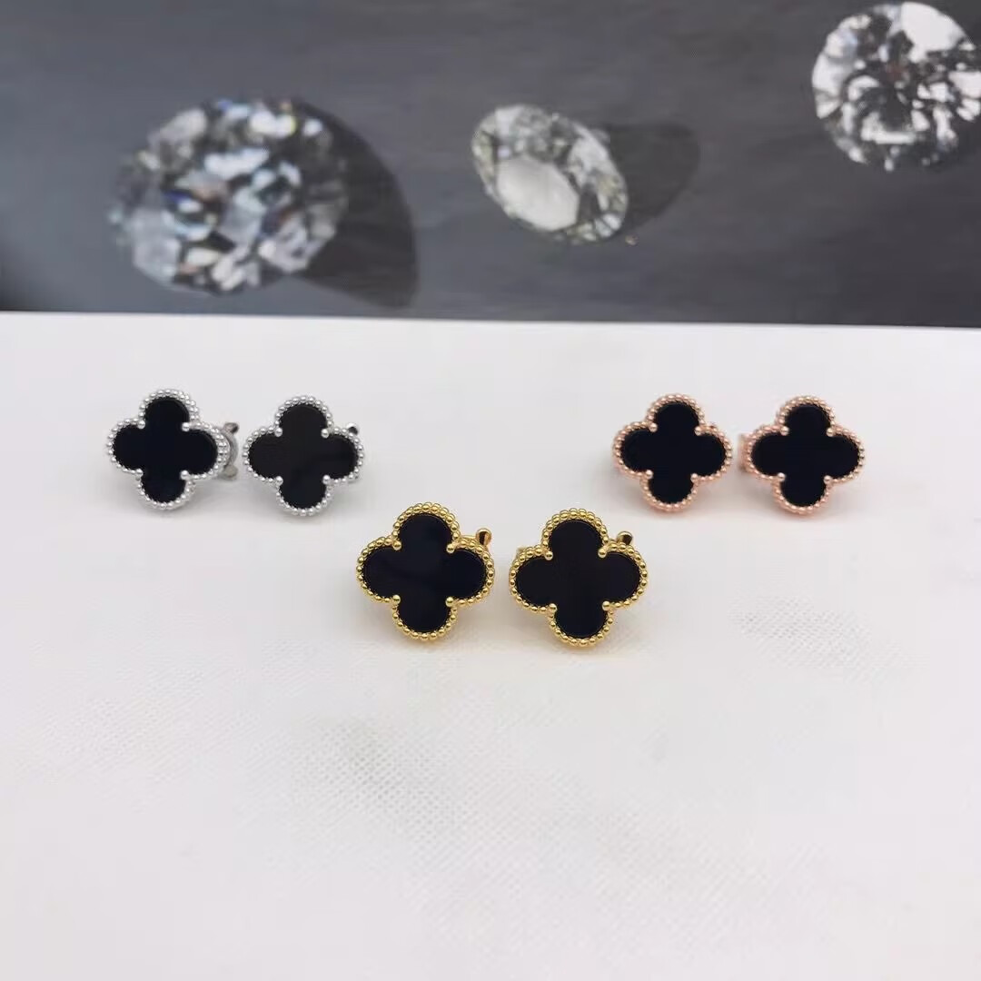 Yuyun non-fading pure 999 silver four-leaf clover earrings for women, rose gold earrings, temperament ear buckles, ear claps, practical and heart-warming wife ear claps - rose gold, black onyx 1.5