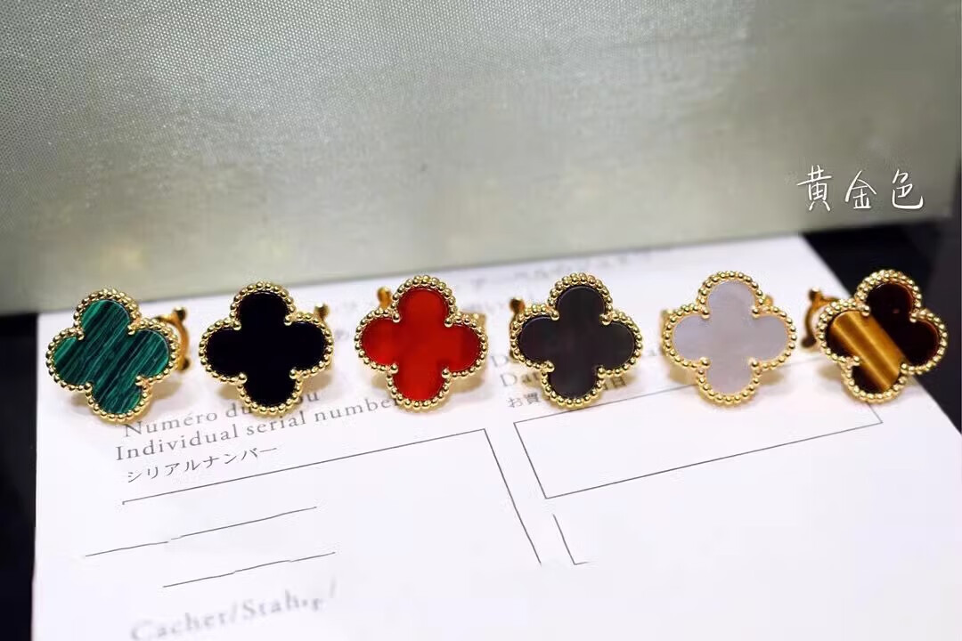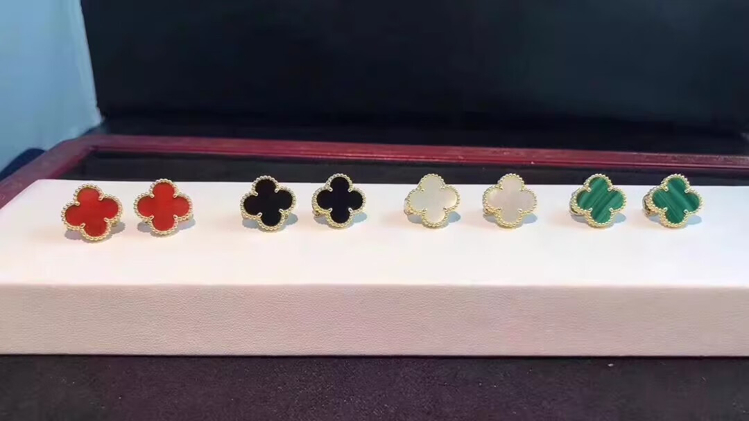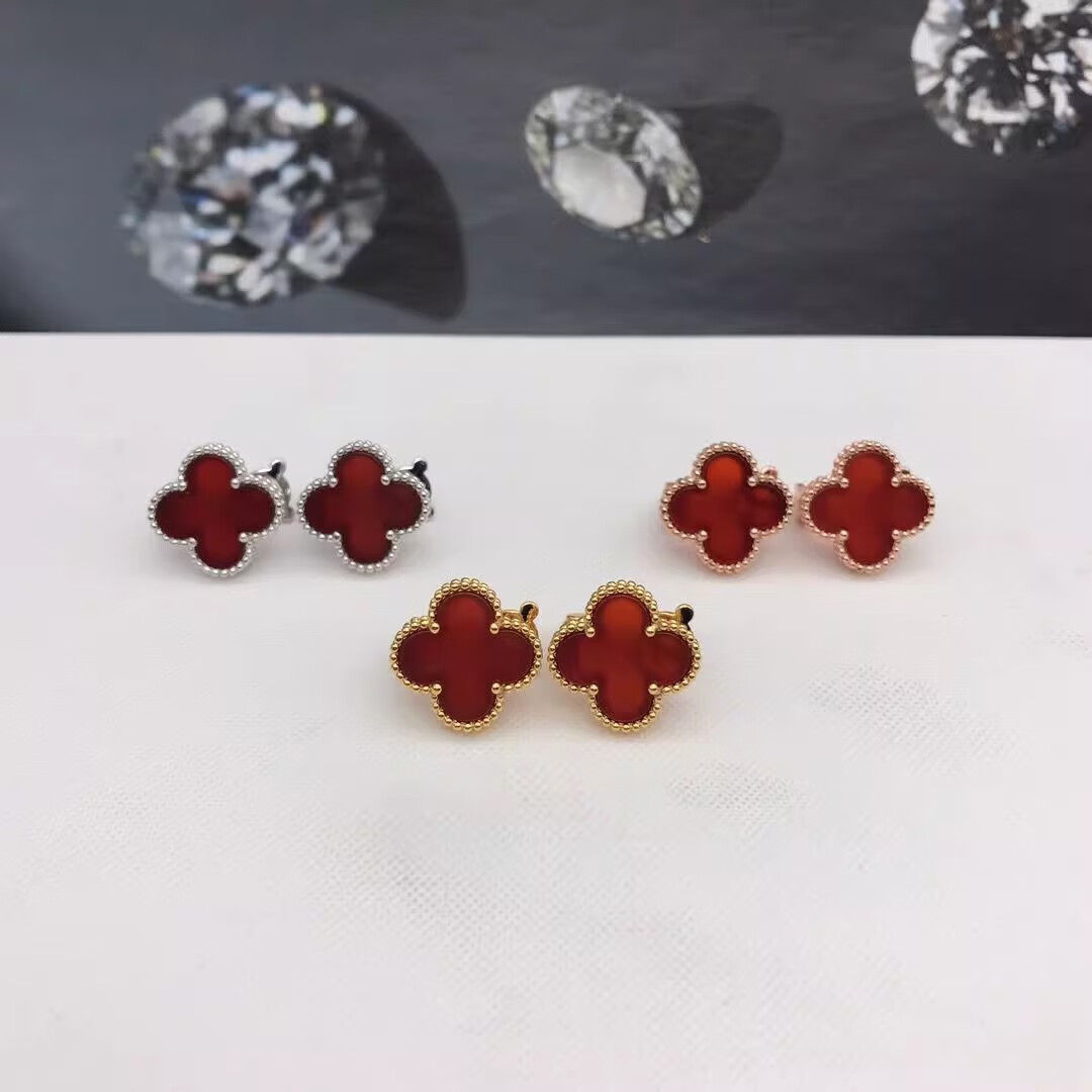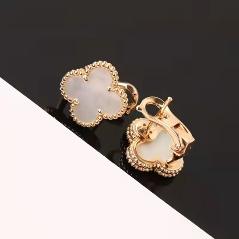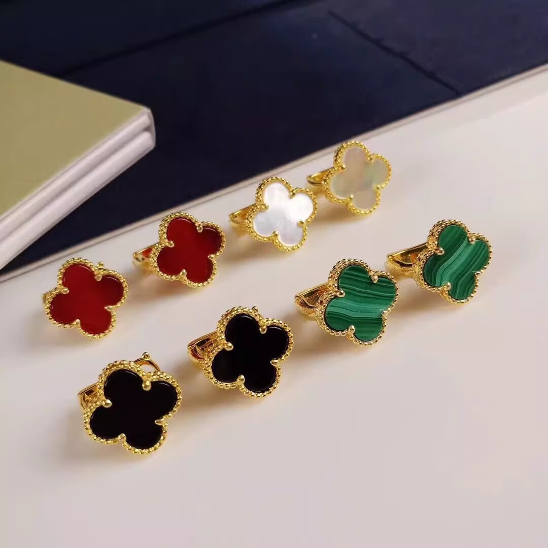 Yuyun non-fading pure 999 silver four-leaf clover earrings for women, rose gold earrings, temperament ear buckles, ear claps, practical and heart-warming wife ear claps - rose gold, black onyx 1.5