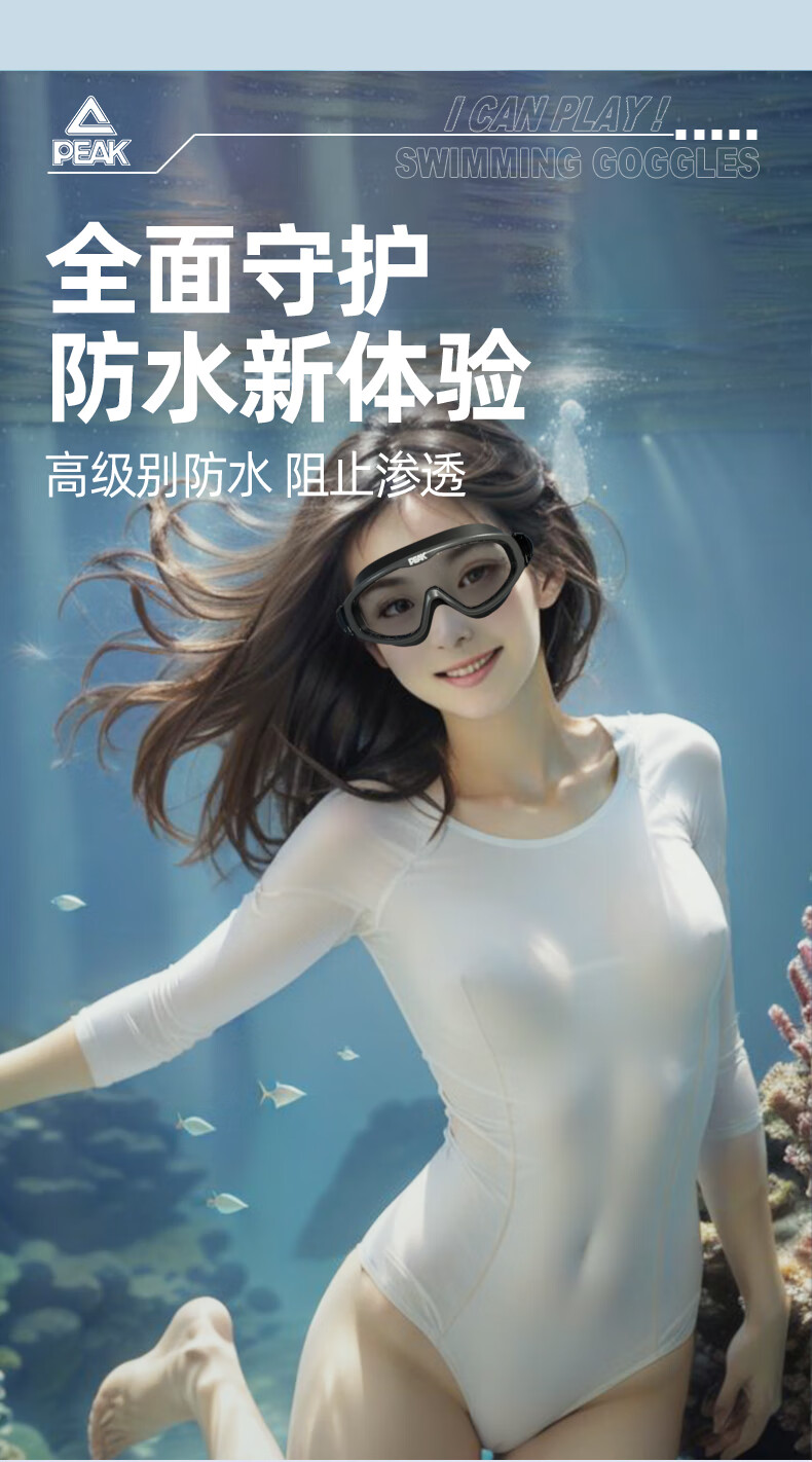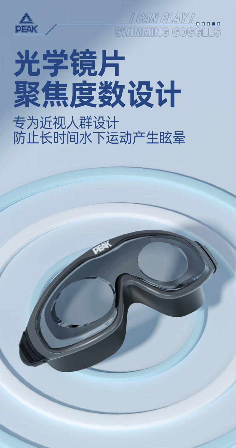Peak swimming goggles myopia large frame high definition anti-fog waterproof swimming goggles and cap set for men and women professional adult swimming equipment smoke green black 150 degrees