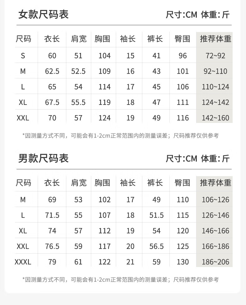 China (cm) 160-165/84-86 165-170 / 88-90 167-172 / 92-96 168-173 / 98-102 170-176 / 106-110