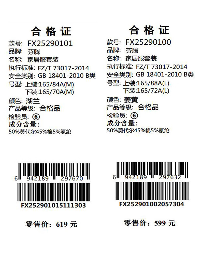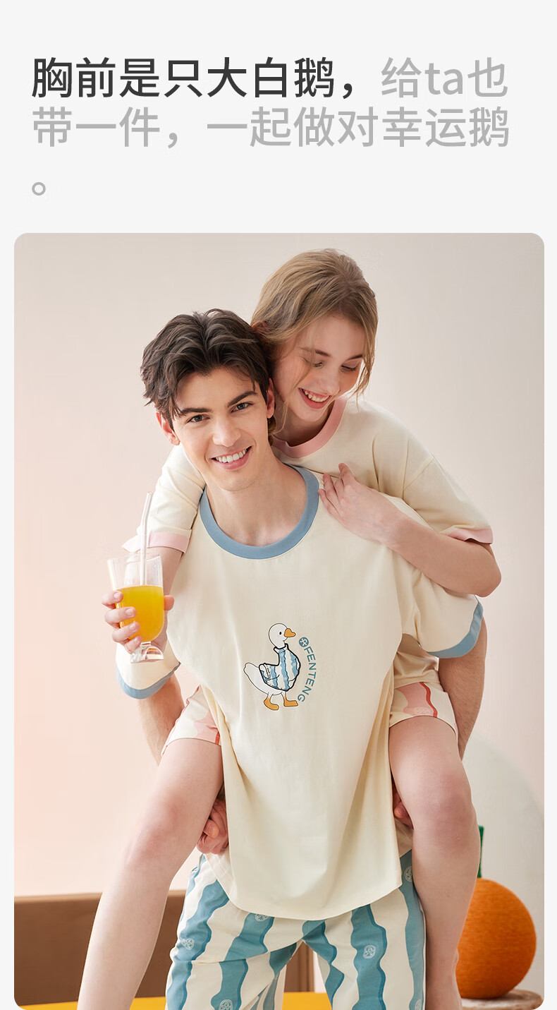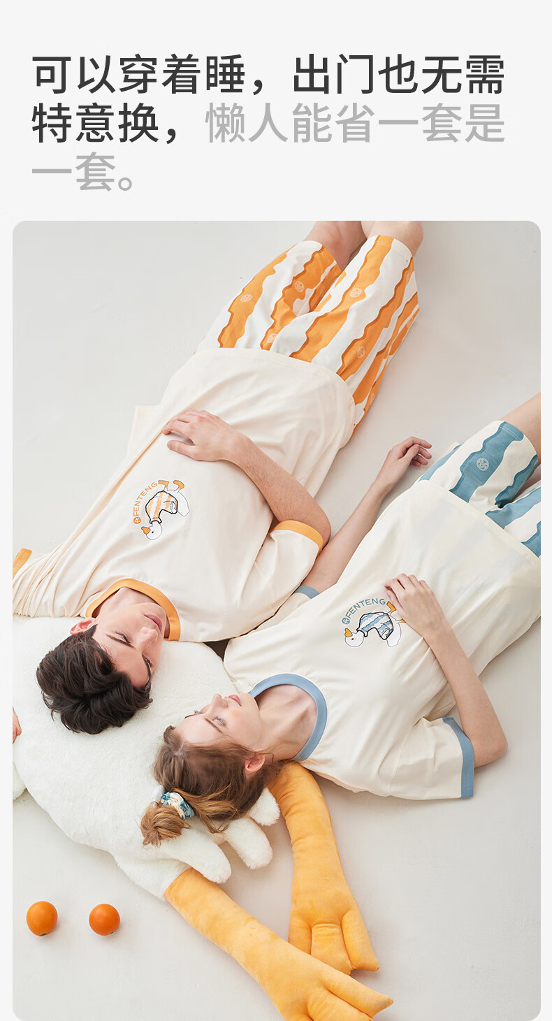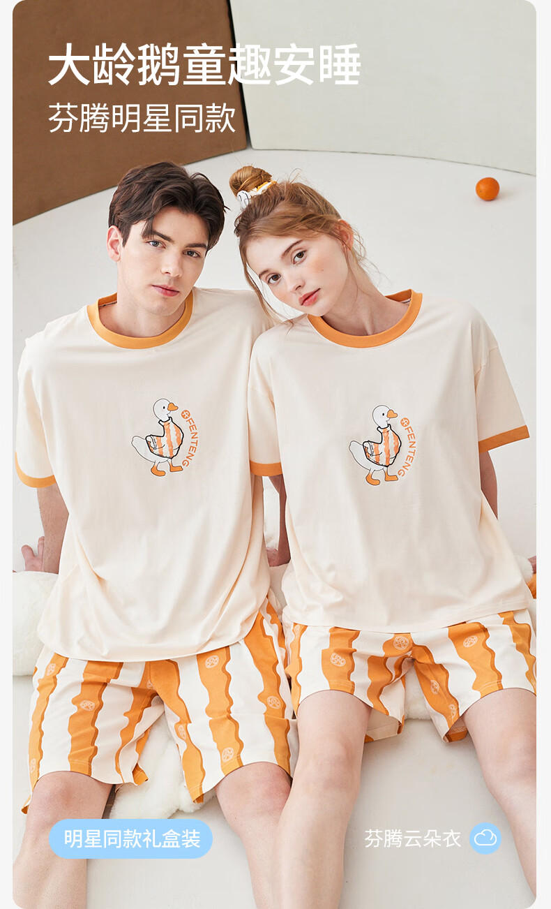Fenton Couple Pajamas Fan Chengcheng's same style Star's same 5A antibacterial round neck striped home wear set pajamas Hulan-women's M