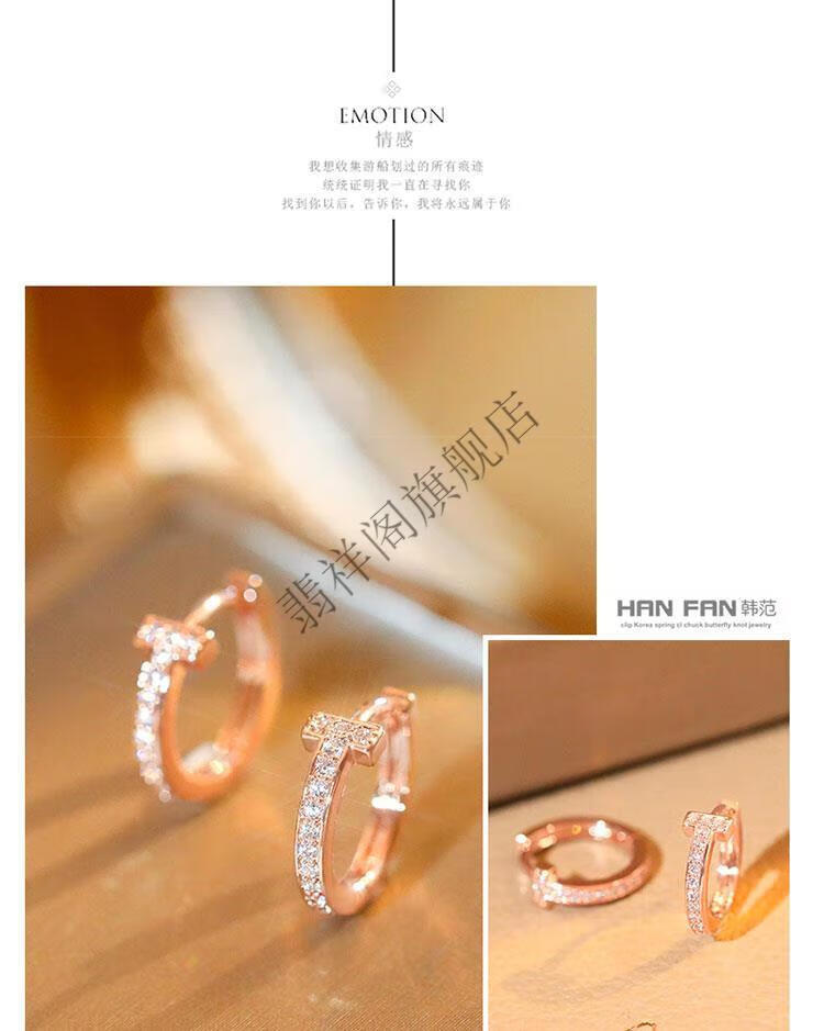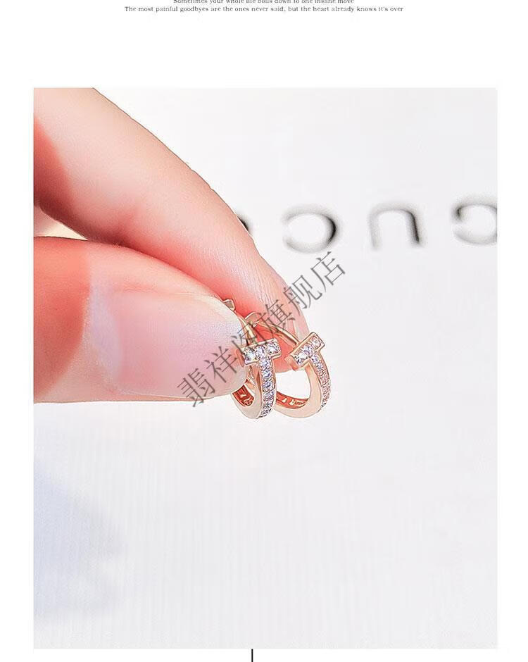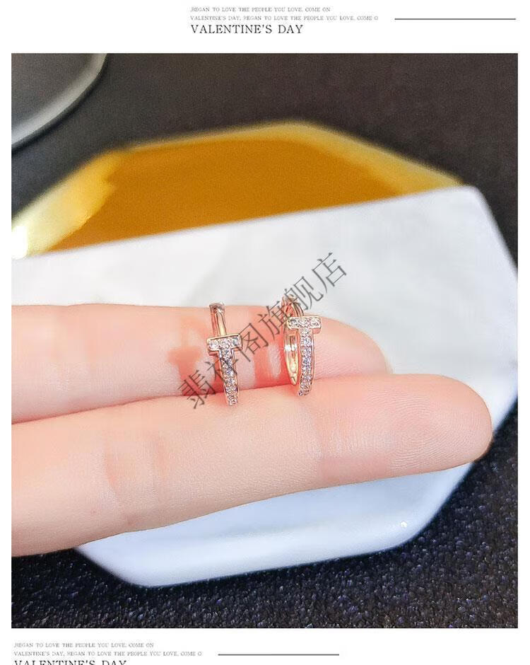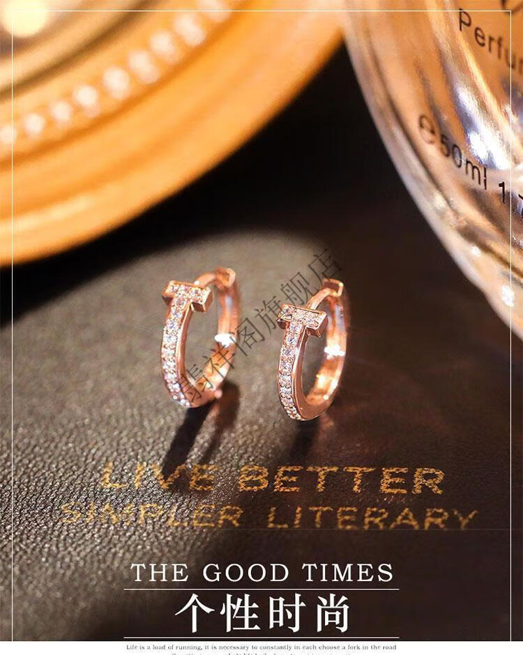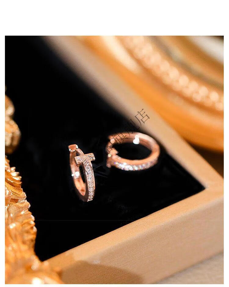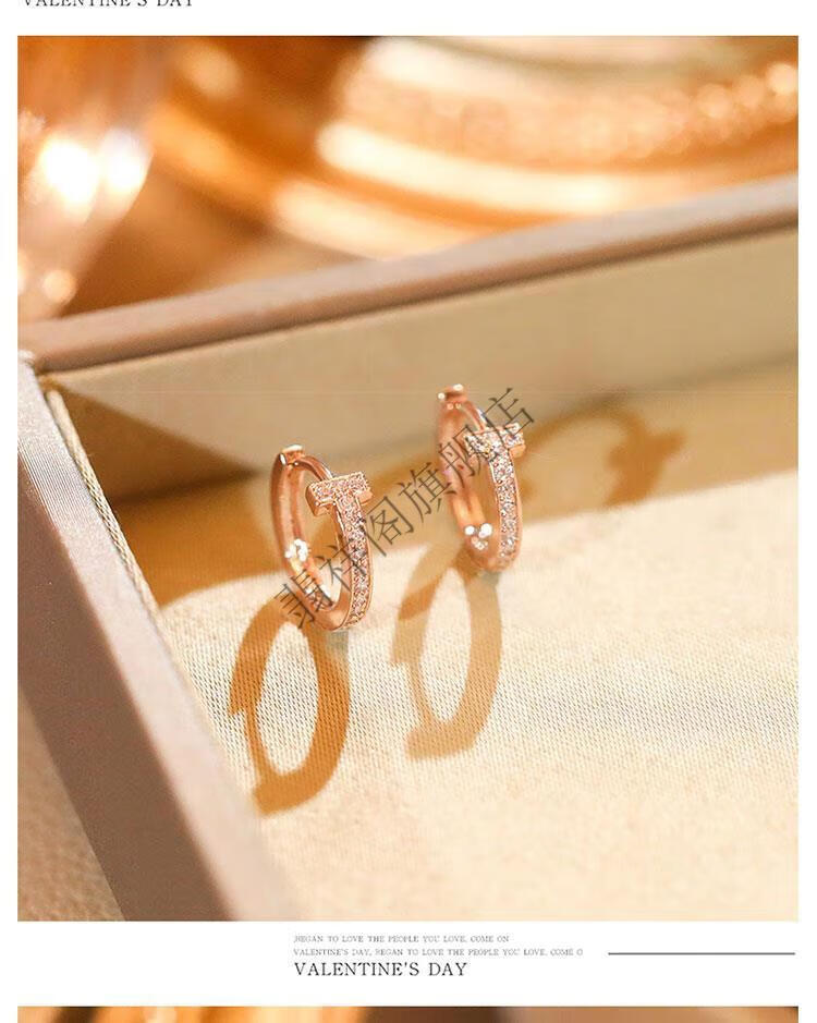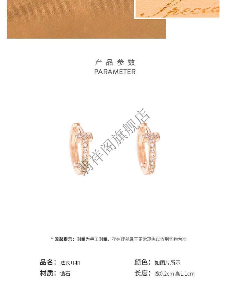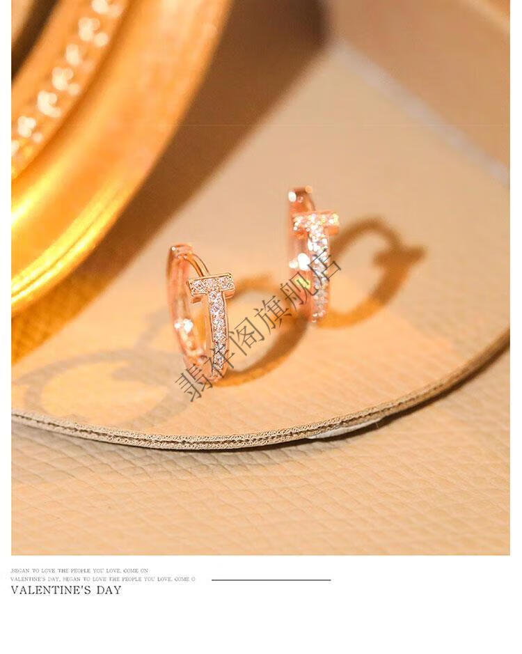 Feixiangge 2024 new trendy classic diamond small earrings T-shaped rose gold earrings women's bag 18k gold earrings T-letter French earrings rose gold