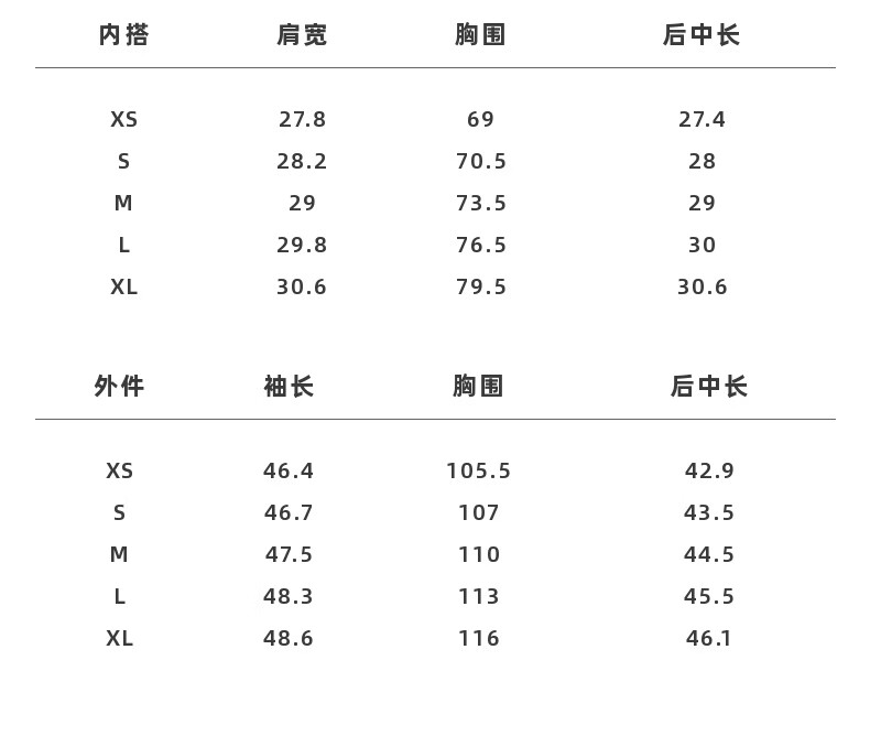 Size (cm) 42 44 46 48 50
