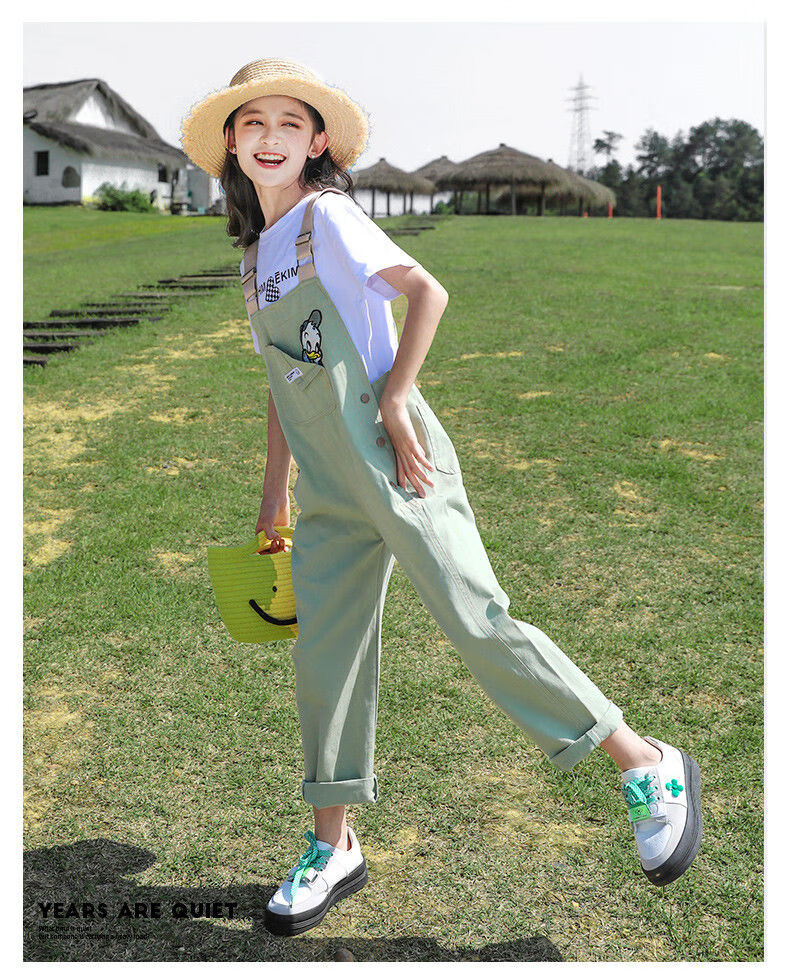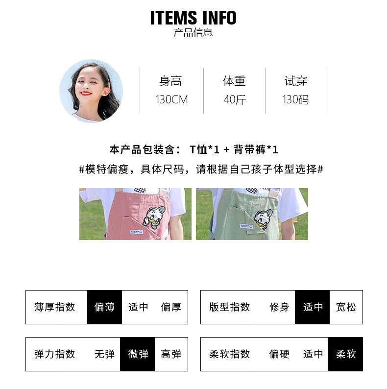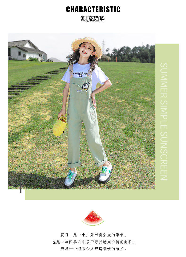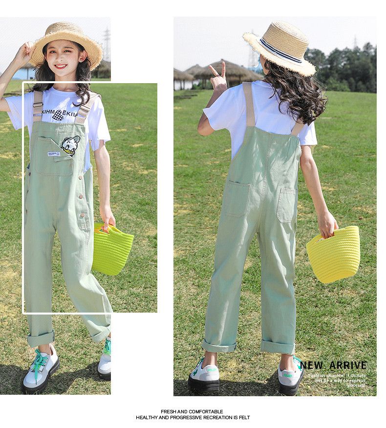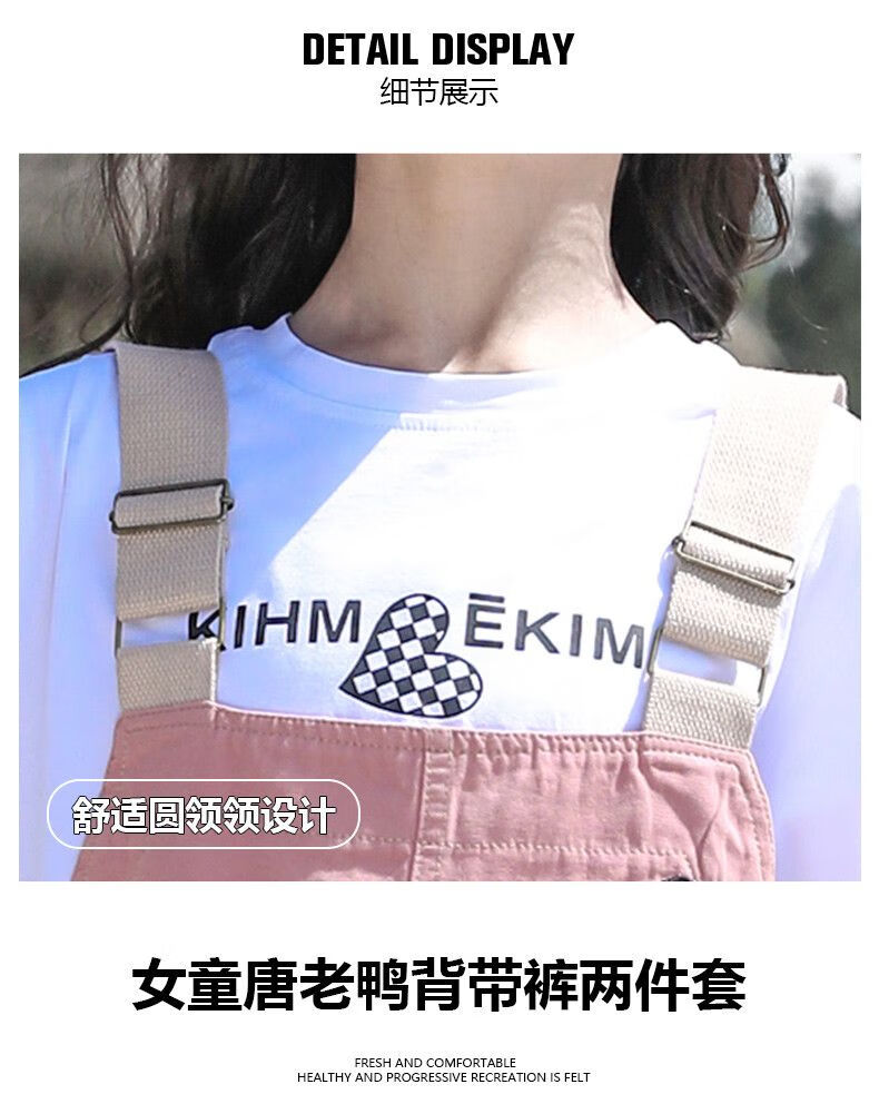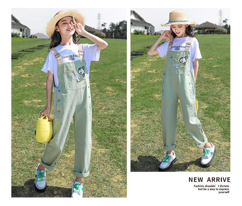 G.DUCKKIDS2025 new girls summer suit, cotton, western style, medium and large children's loose summer thin overalls two-piece set, Donald Duck overalls suit, pink 140