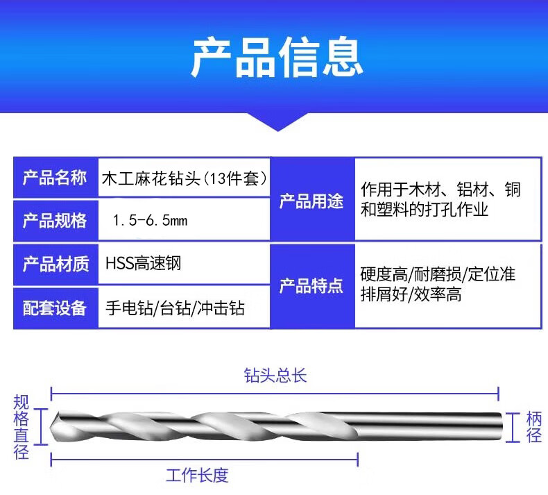 Tanbeiman Woodworking Drill Bit, Electric Wrench Drill Bit, Air Cannon, Special Twist Drill Bit, Punch Conversion Electric Drill Chuck Set, Woodworking Drill Bit 1.5-6.5mm, 13-piece Set, HSS High Speed Steel, Sharp and Wear Resistant, Accurate Drilling