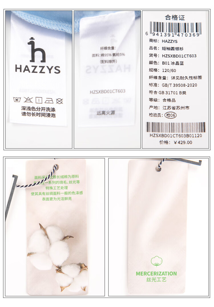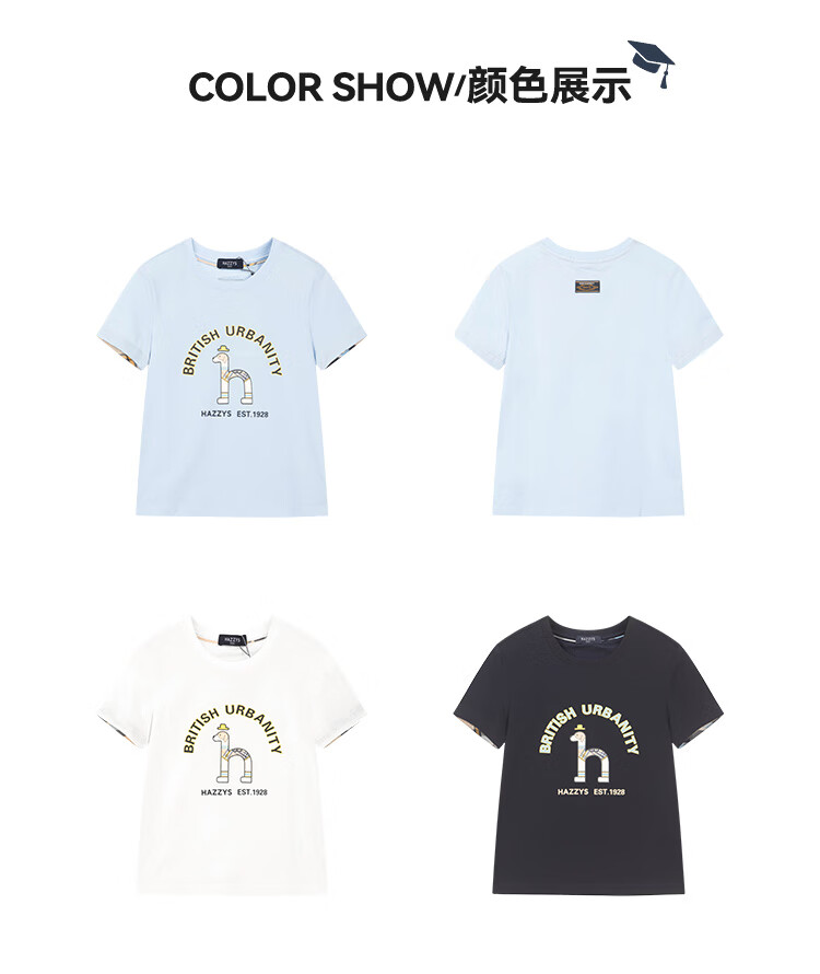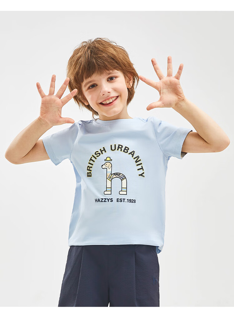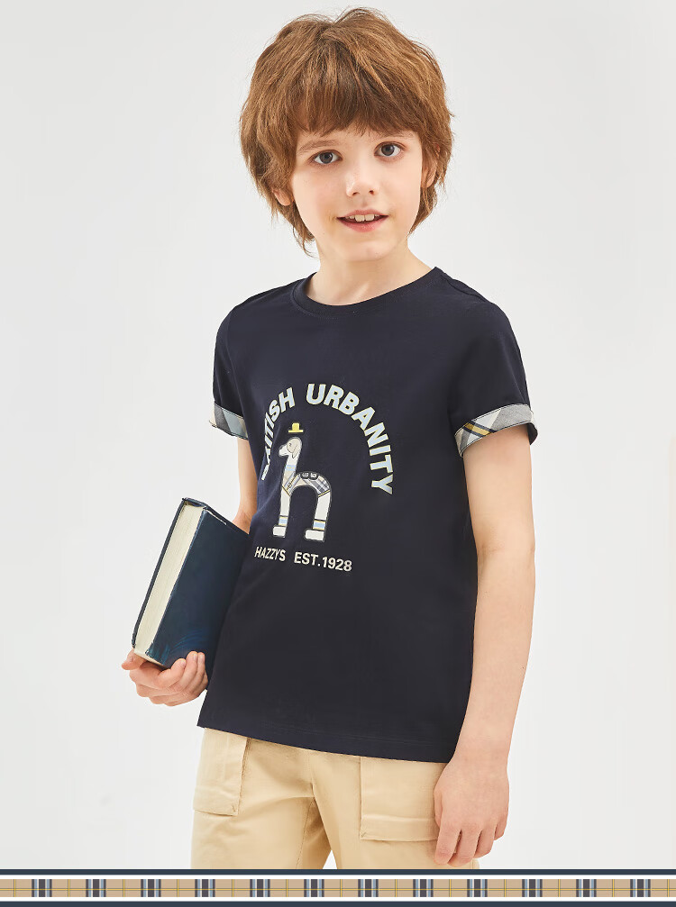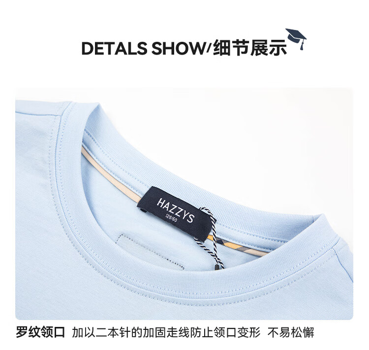 HAZZYS brand children's clothing boys' short-sleeved crew-neck shirt summer new style comfortable elastic casual simple short-sleeved crew-neck shirt original white 165cm