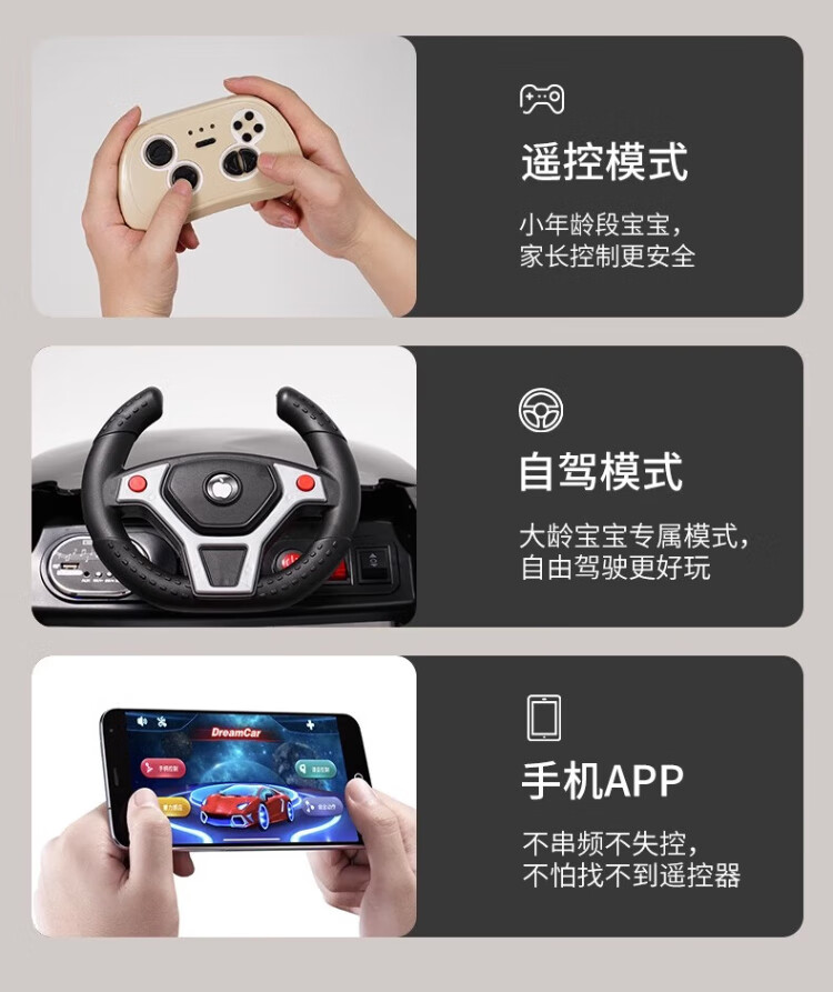Captain America children's toy car 1-3 years old baby boys and girls can ride on electric car birthday gift electric car with swing black and white rocking car + light music + Bluetooth + remote control