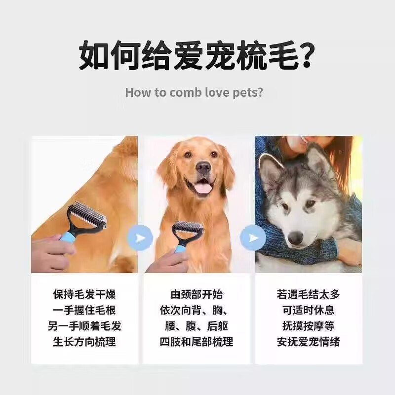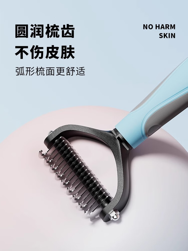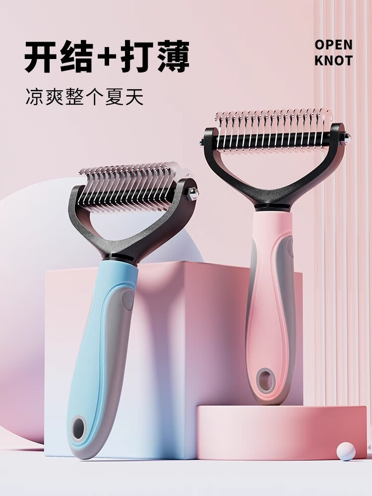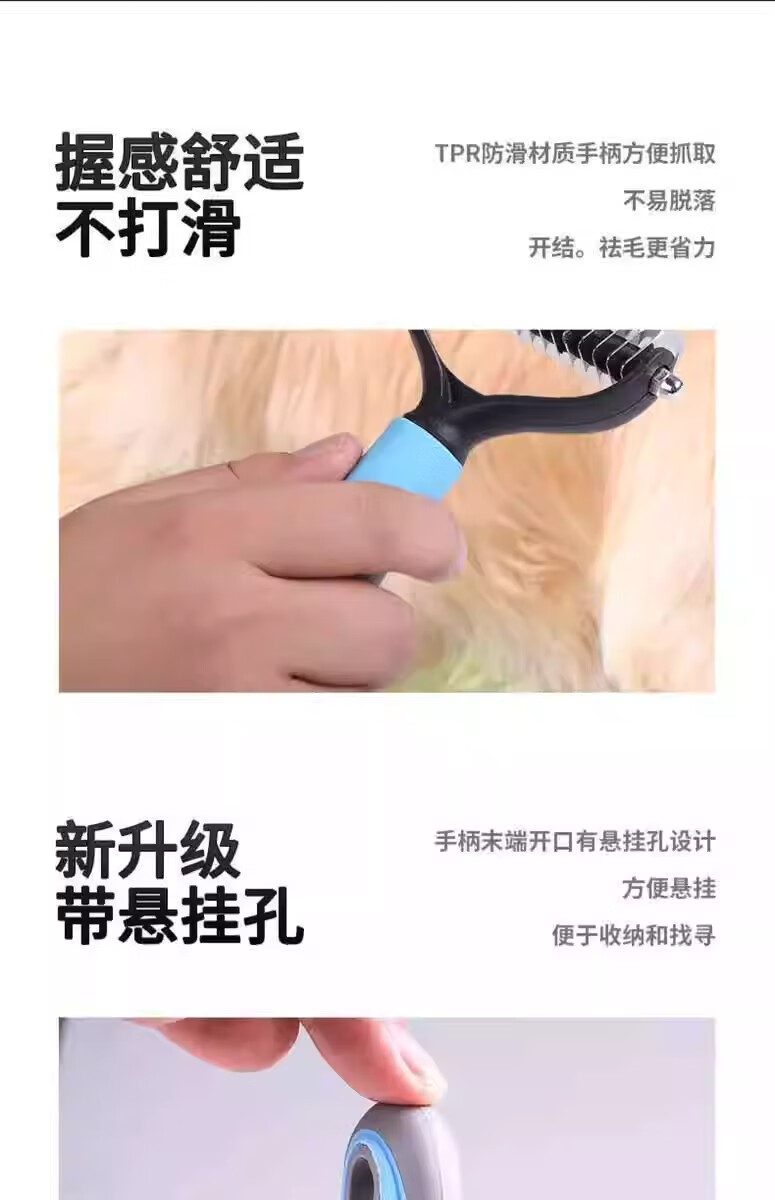 Huiyimu cat comb, knotting comb and thinning cat hair combing brush, special debugging and cleaning tool for long-haired pets, double-sided knotting and thinning comb, blue large size