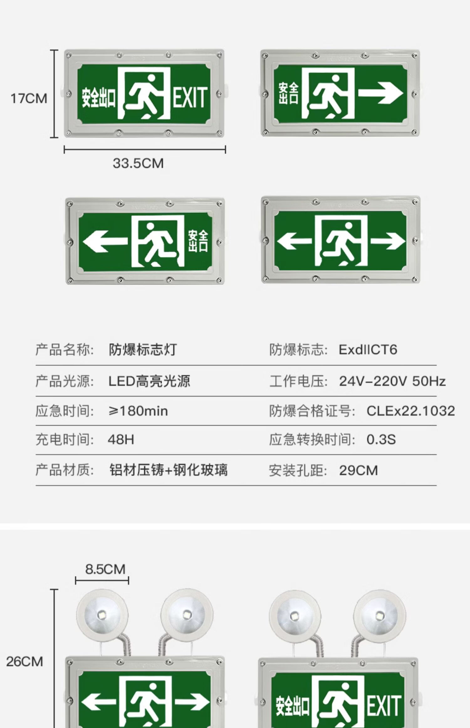SUOYADAled explosion-proof emergency light safety exit evacuation indicator light fire type A 36V centralized power supply control 24V explosion-proof emergency light emergency 120min or more