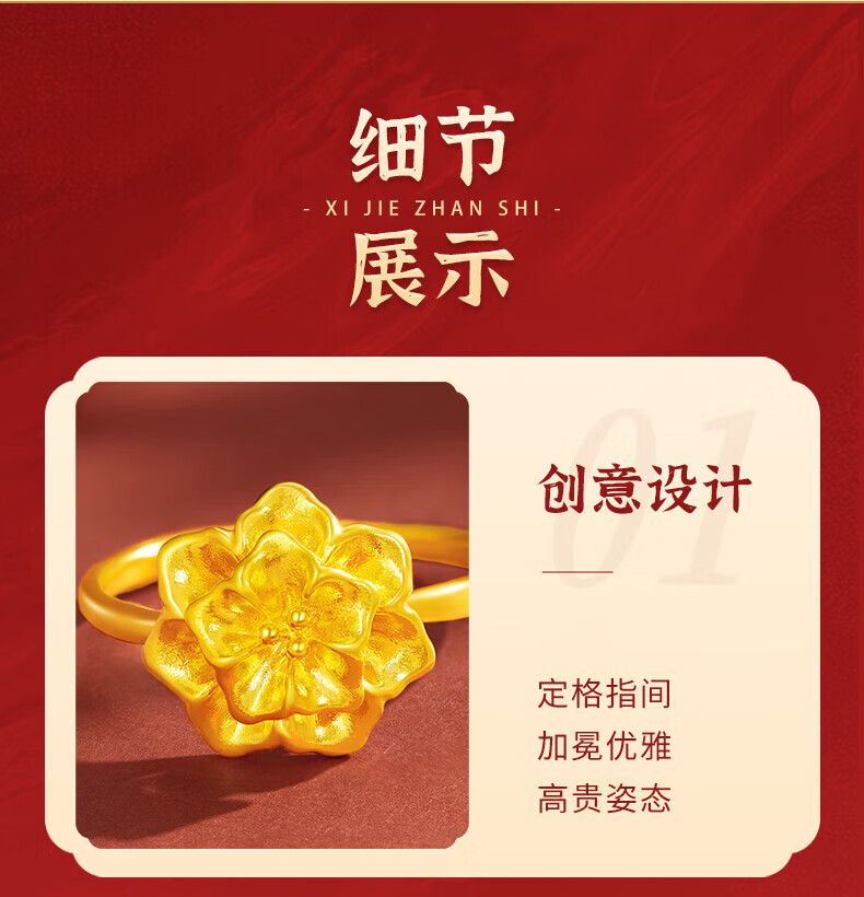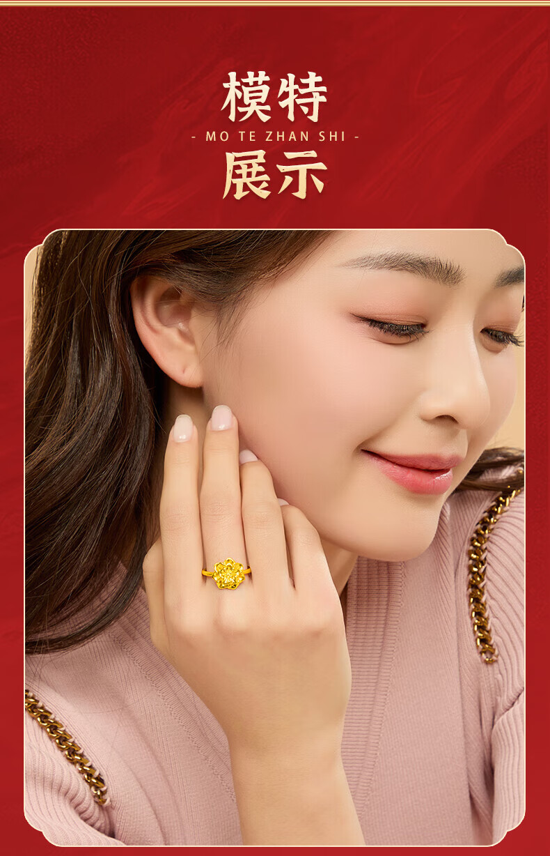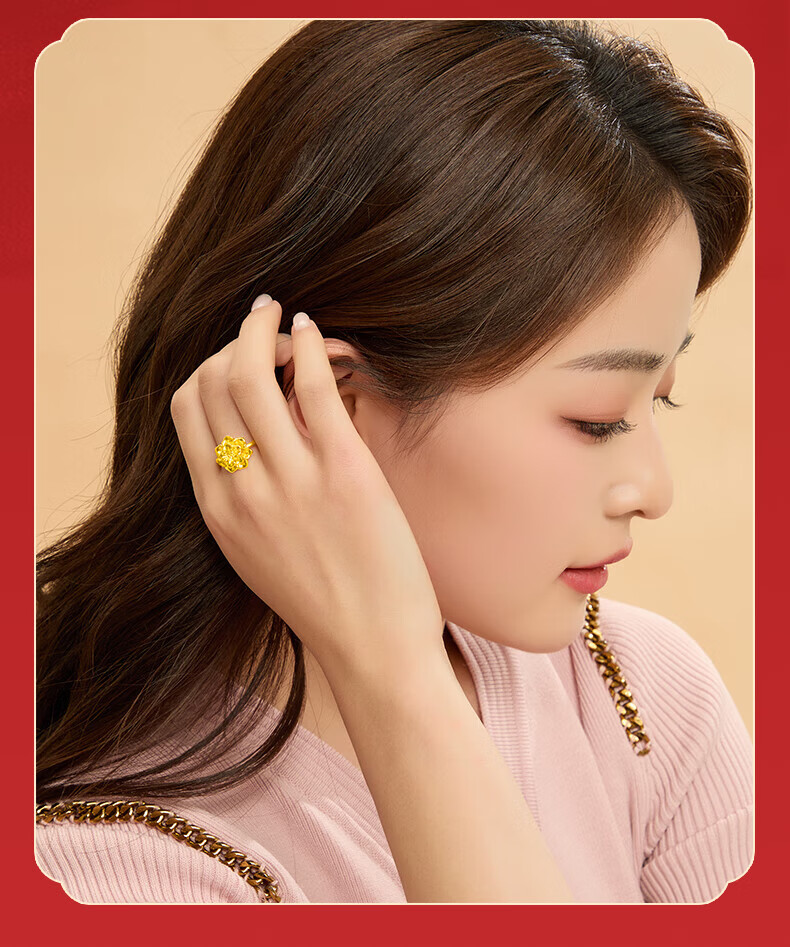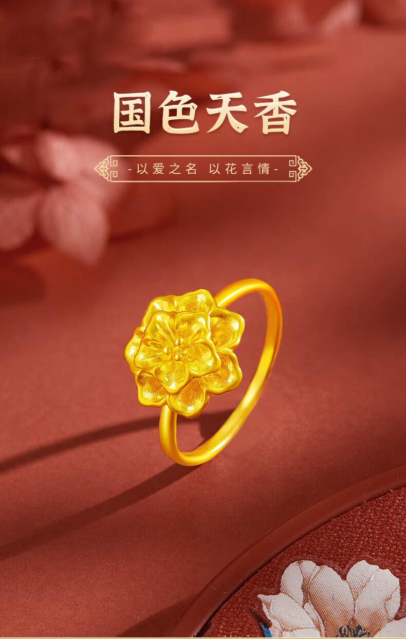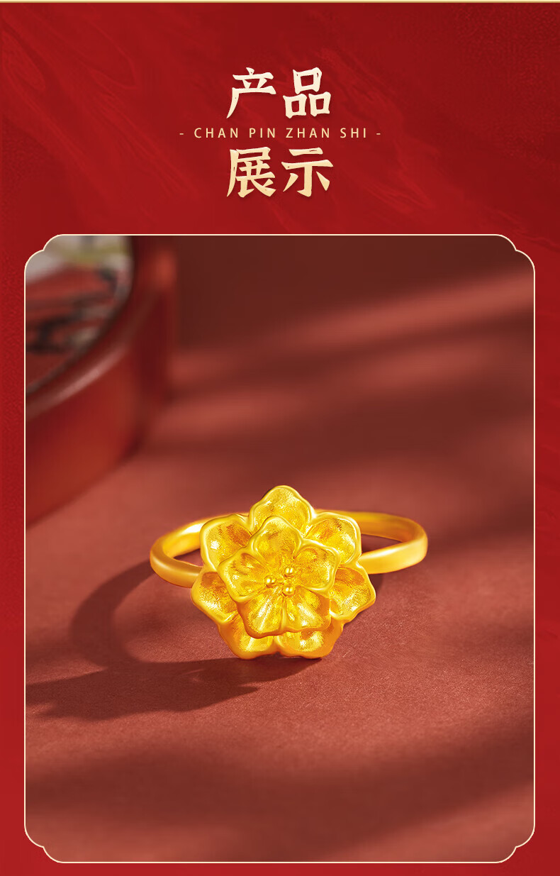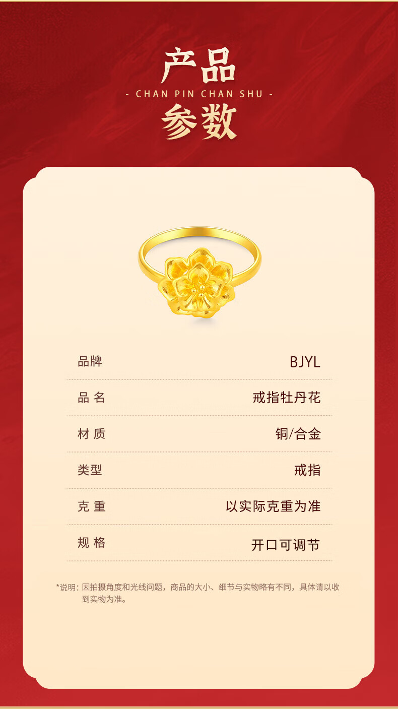 BJYL flower blooming wealth ring for women, ancient imitation sand gold ring, fashionable adjustable ring, birthday gift for mother and daughter, peony flower open ring