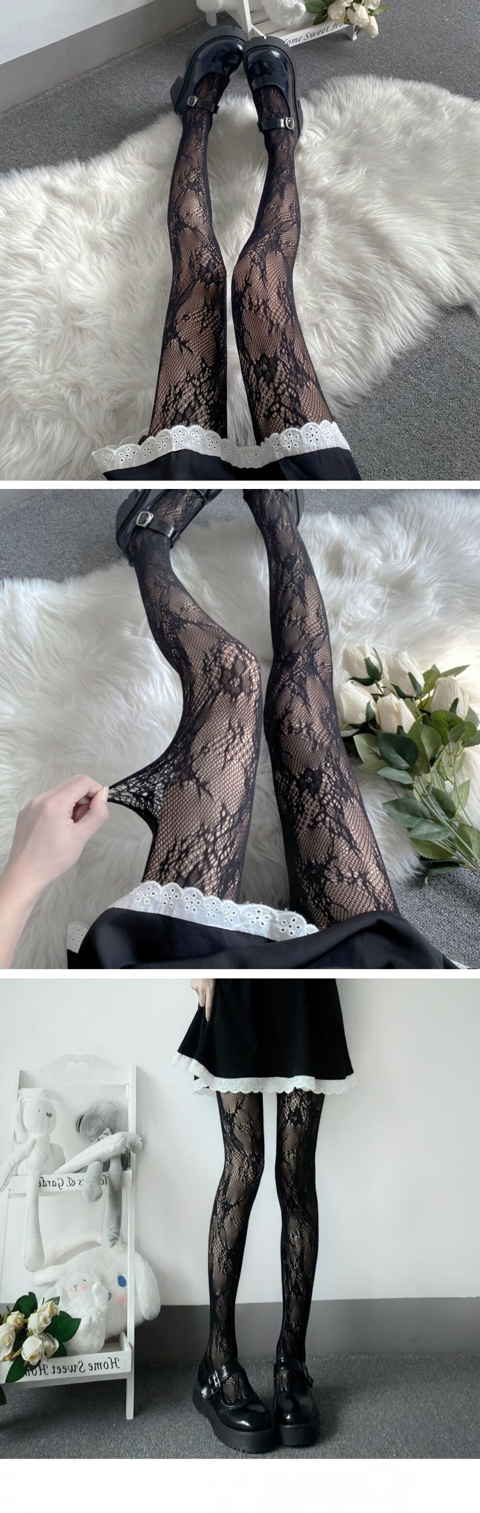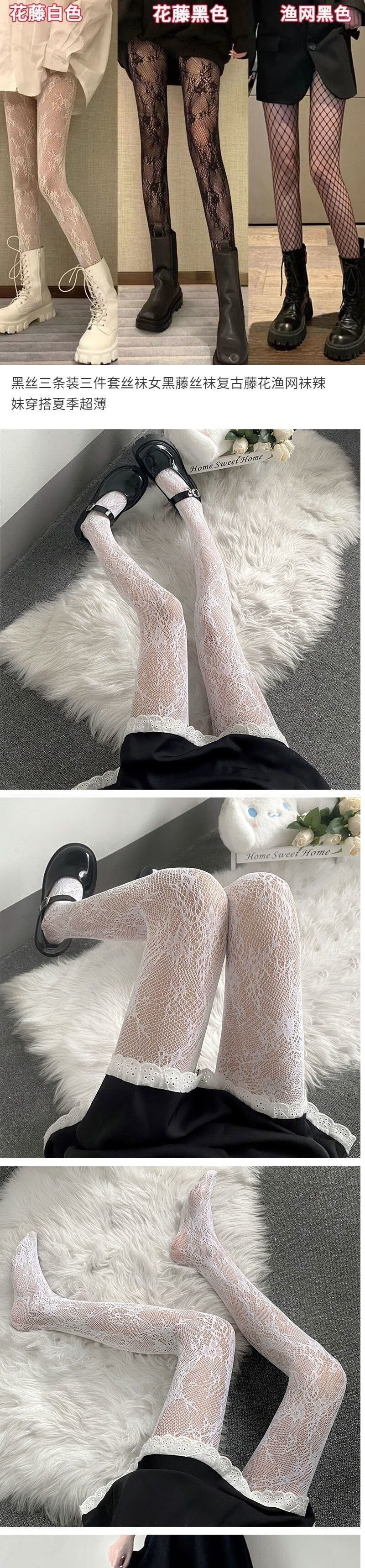 JUZEELY stockings fishnet stockings jk black silk sexy hot girl flower vine stockings white pantyhose women's ultra-thin anti-snag socks white flower vine + white silk + black silk | Confidential delivery 3 items One size fits all 70-140 Jin Jin equals 0.5 kg Confidential delivery