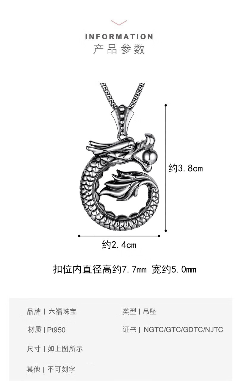 Lukfook Jewelry Platinum 950 Zodiac Dragon Spit Pearl Platinum Pendant Men's Price G07TBPP0003 17.91 grams (including labor cost 2382 yuan)