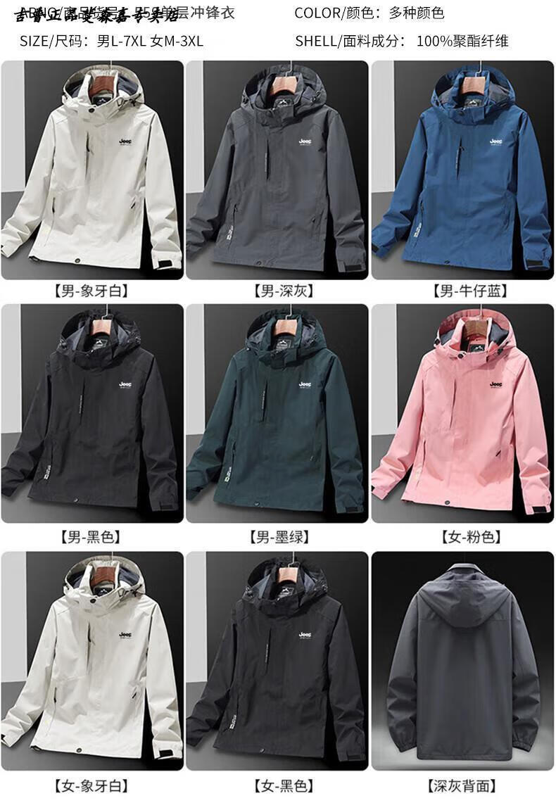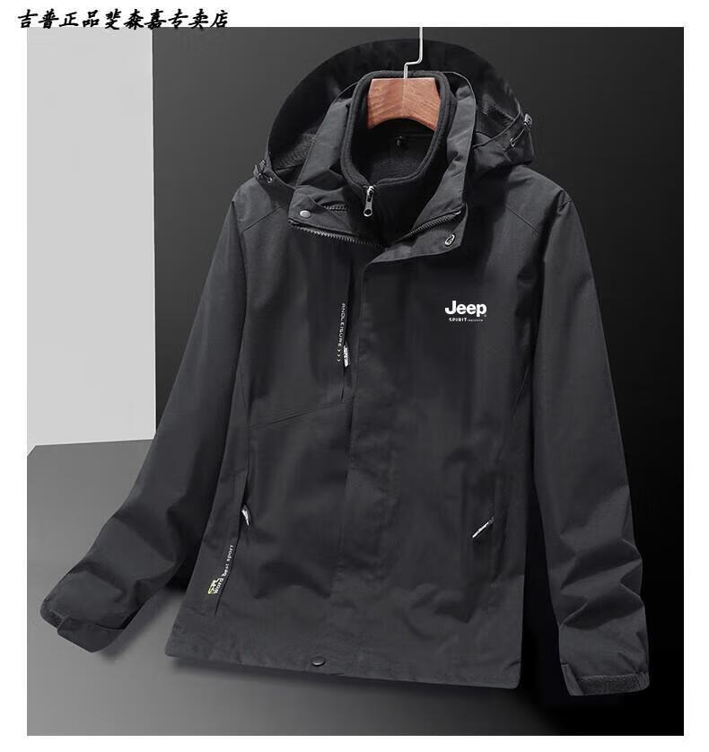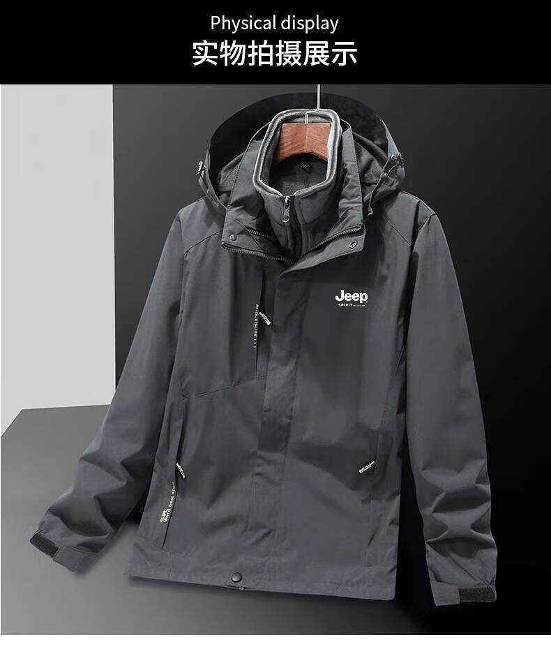 Jeep (JEEP) official high-end jacket three-in-one men's and women's jacket spring, autumn and winter mountaineering clothing waterproof top outdoor fishing jacket flagship high-end brand men's A-20 men's three-in-a soft and hard shell jacket 3XL male 160-180 female 1