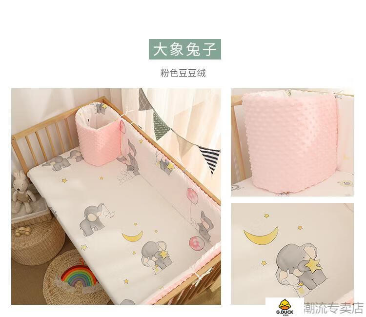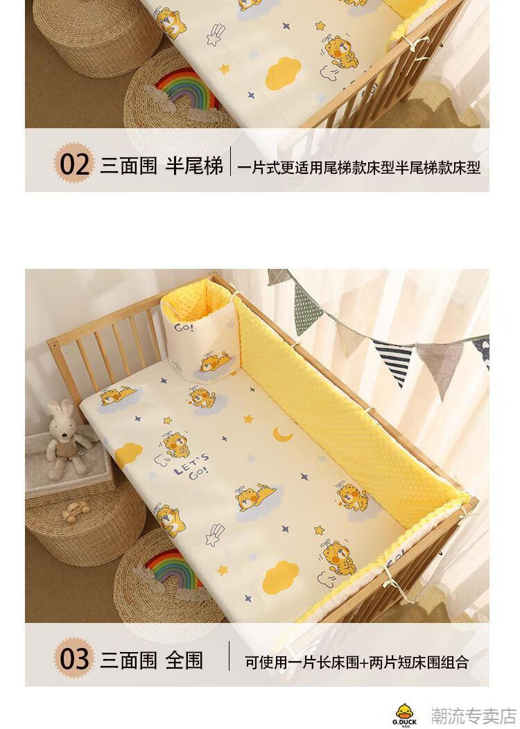 G.DUCKKIDS baby crib fence winter Class A pure cotton one-piece beanie bedside cloth children's spliced soft bag anti-collision baby blue car blue beanie (height 28cm) length 50 cm