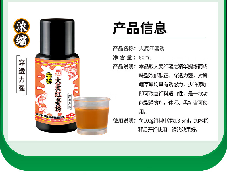 Fishing King's new product small drug fruit acid Senmile scented wild fishing lure black pit special crucian carp bait fish bait concentrated Senmile scent 60ml