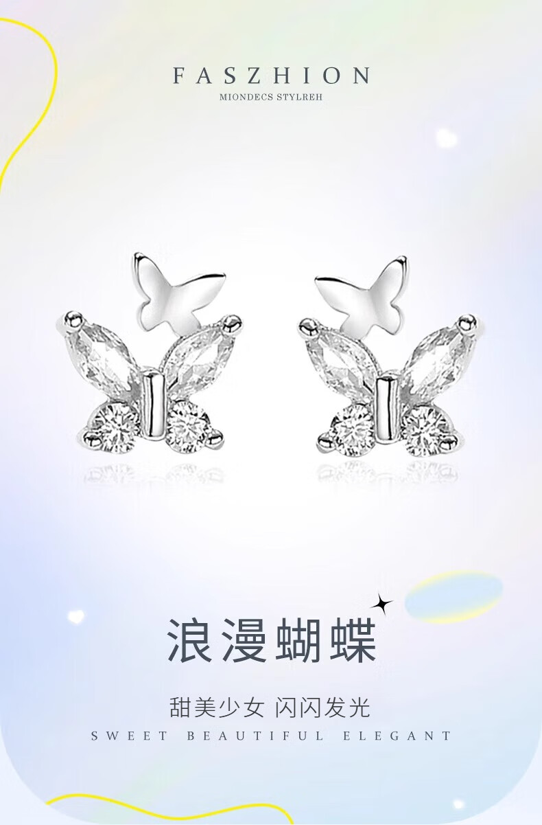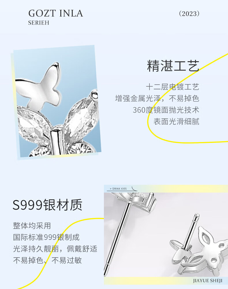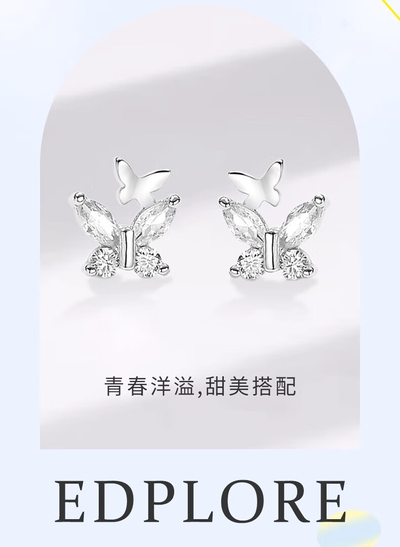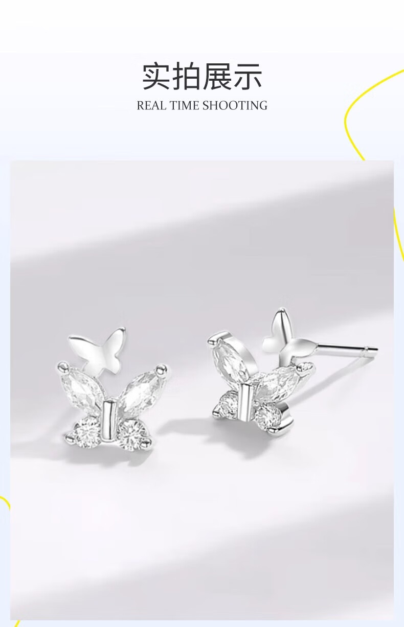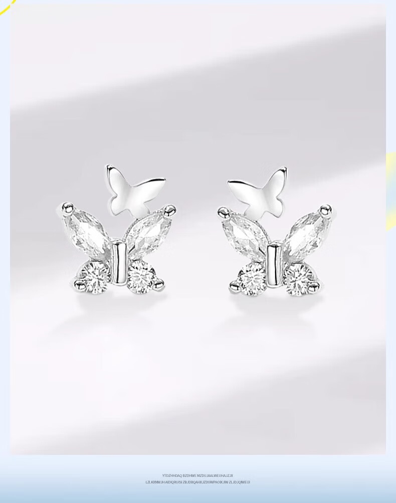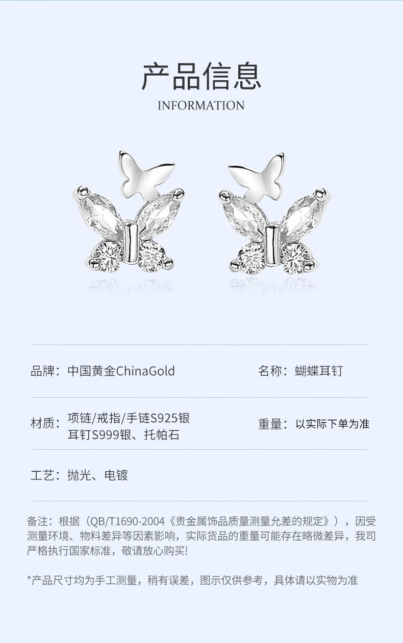 China Gold (CHINA GOLD) S999 Pure Silver Double Butterfly Earrings Women's New Earrings Temperament Jewelry Wedding Gifts for Girlfriends Birthday Gifts Jingsuda* Butterfly Silver Earrings 999 Pure Silver