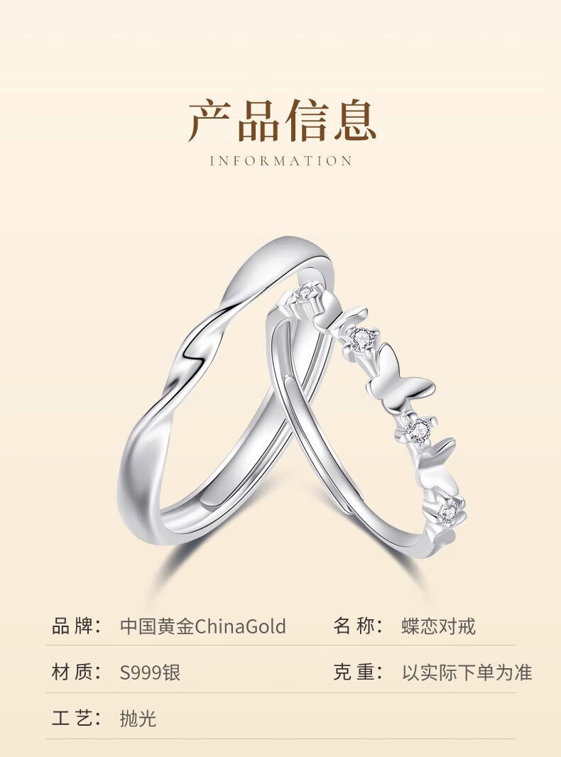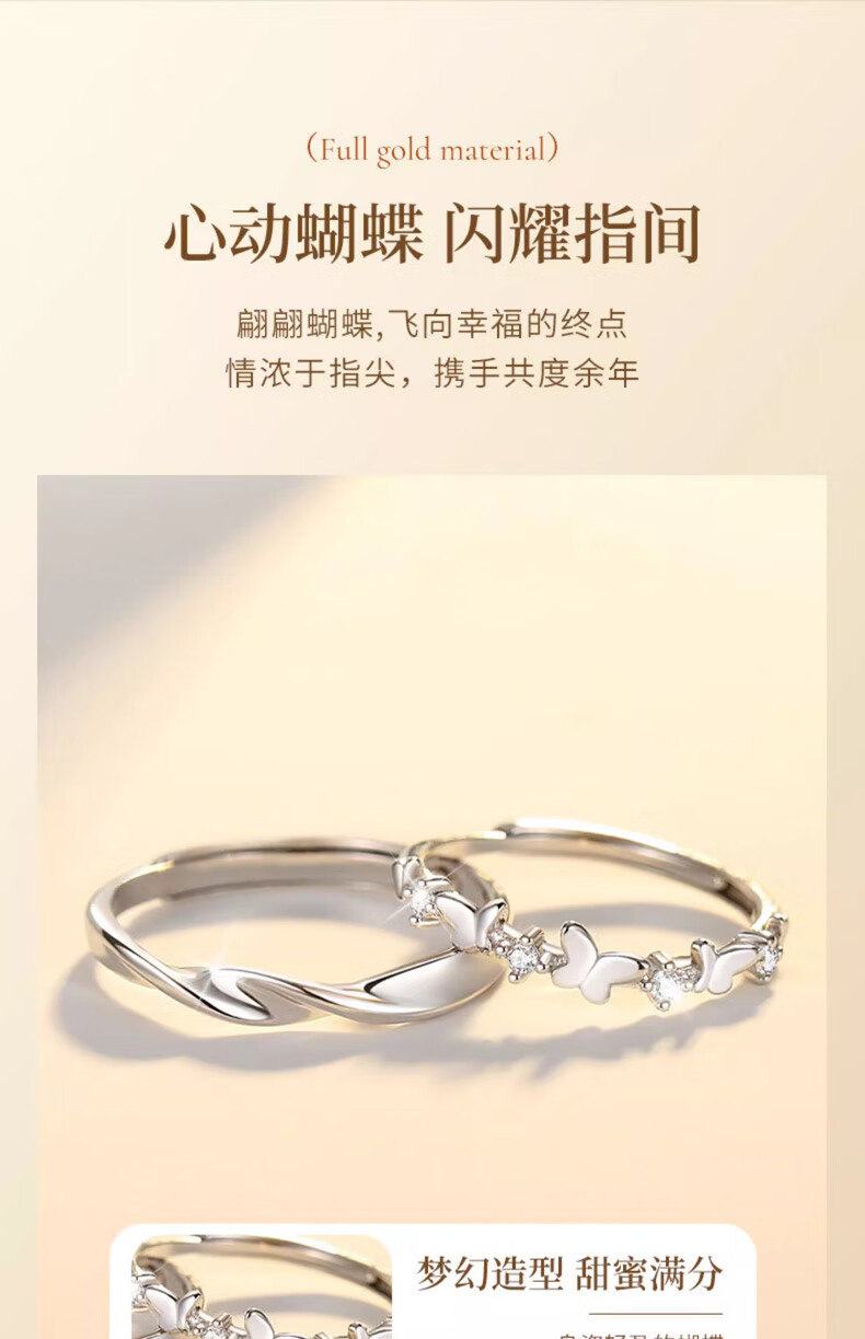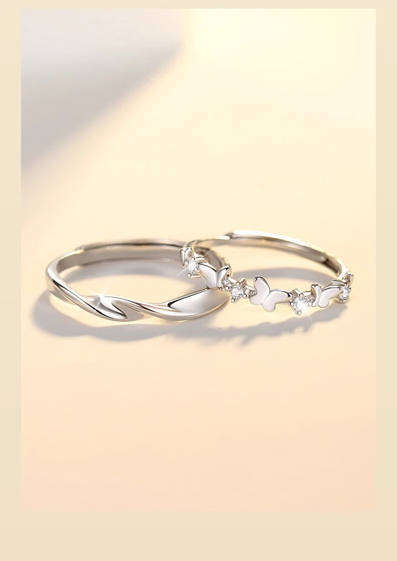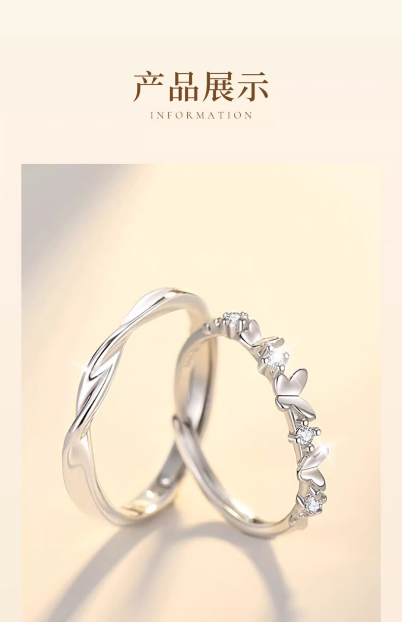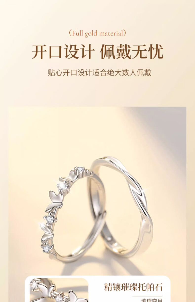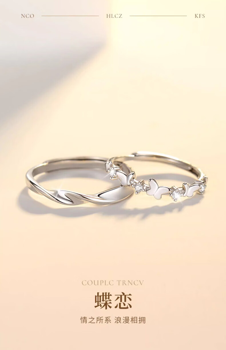 CHINA GOLD S999 Pure Silver Möbius Ring Butterfly Pair of Simple Couple Rings Valentine's Day Practical Birthday Gift Butterfly Couple Ring S999 Pure Silver Opening Adjustable