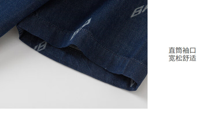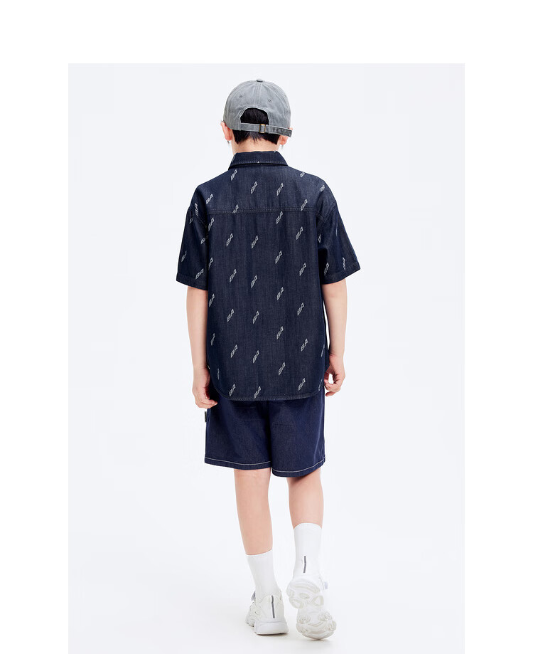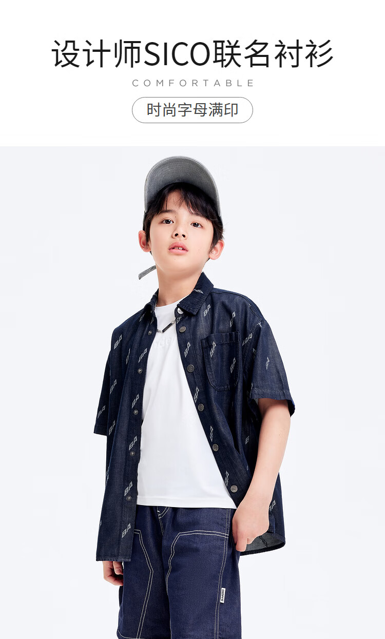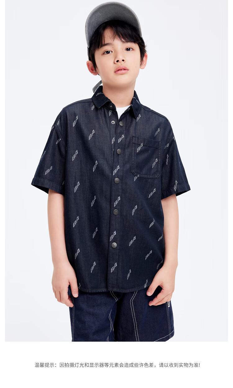 Balabala designer SICO IP children's shirt boys' shirt summer short-sleeved denim full print trend blue tone 00488 130