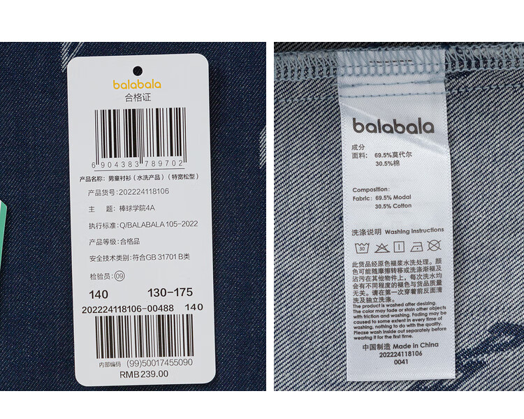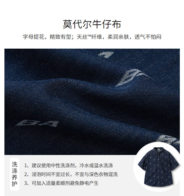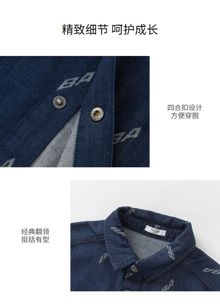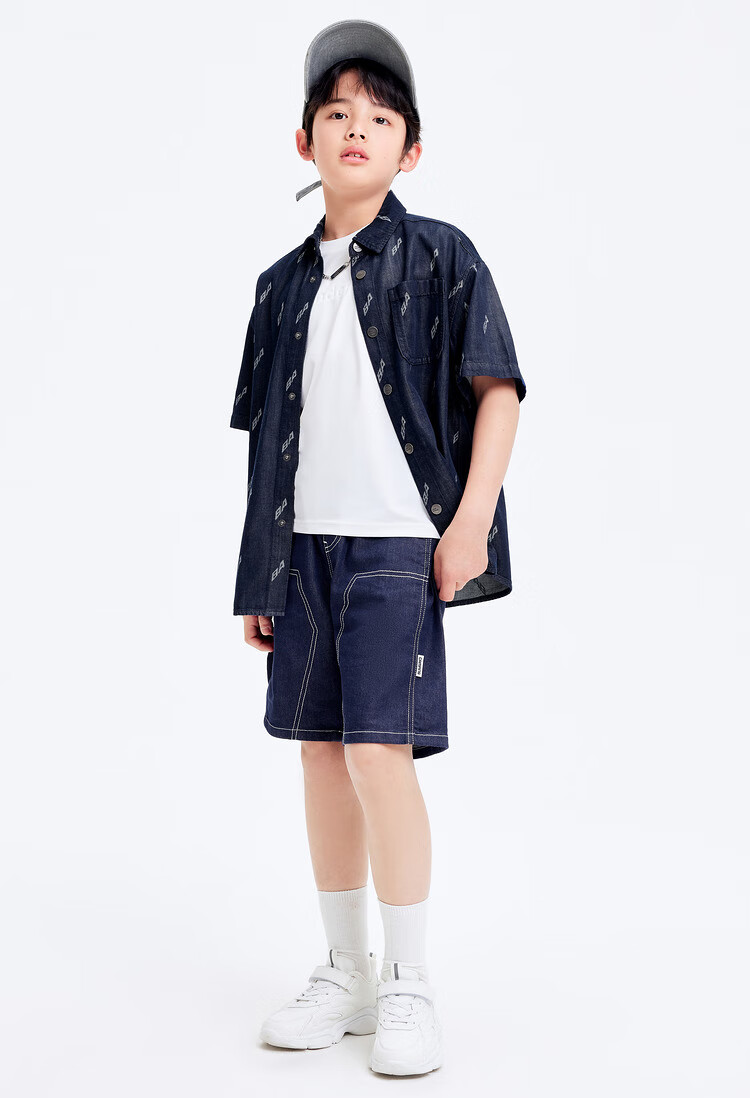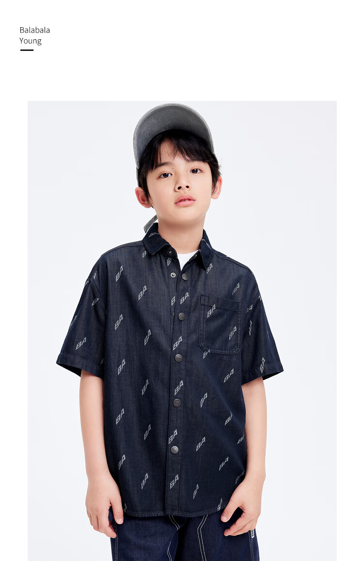 Balabala designer SICO IP children's shirt boys' shirt summer short-sleeved denim full print trend blue tone 00488 130