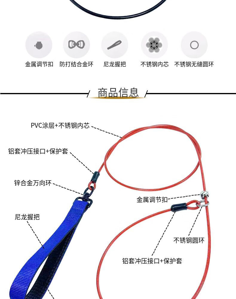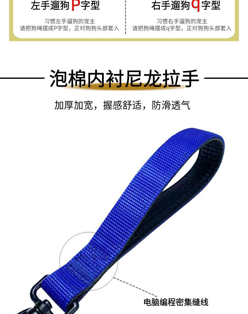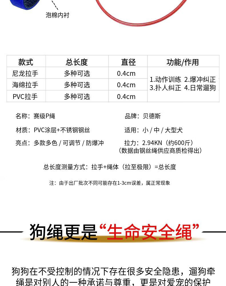 Baders p rope p chain dog leash large dog explosion-proof impact training dog suffocation rope small and medium-sized dogs adjustable dog walking rope anti-knot handle all black recommended 4mm*1.5 meters (common to all dogs)