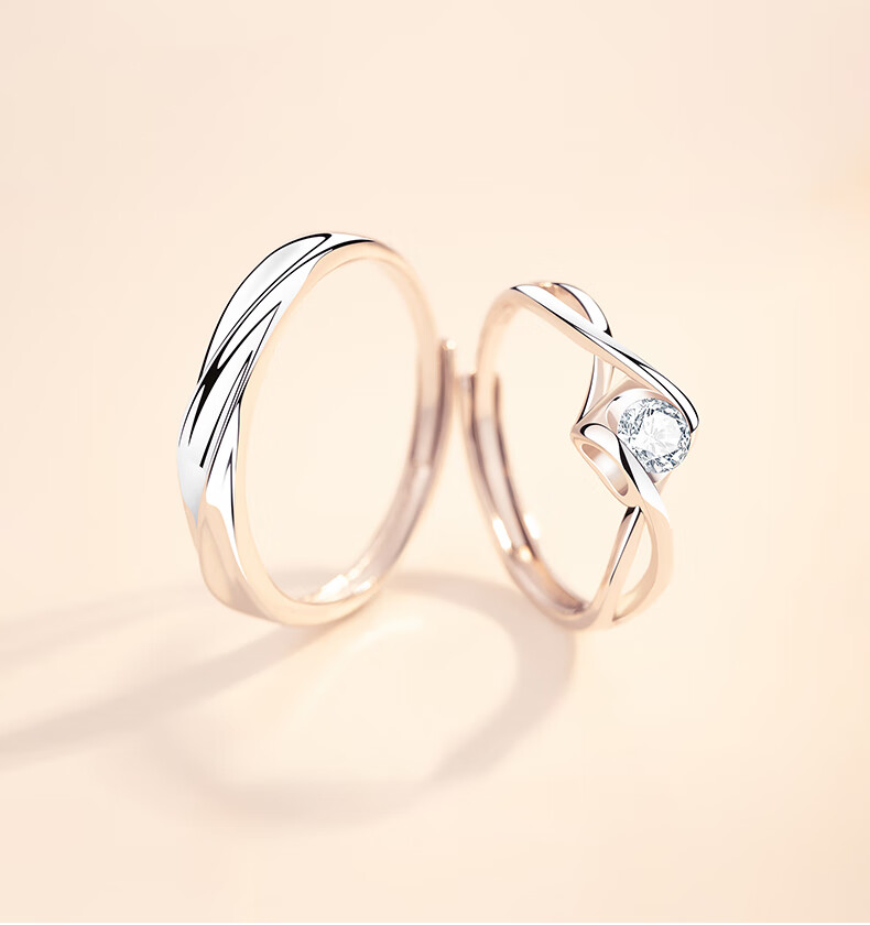 Chinese gold pure silver couple ring, a man and woman propose sterling silver ring, girl birthday gift, girlfriend, wife, wedding anniversary, intertwined love couple ring, Jingsuda