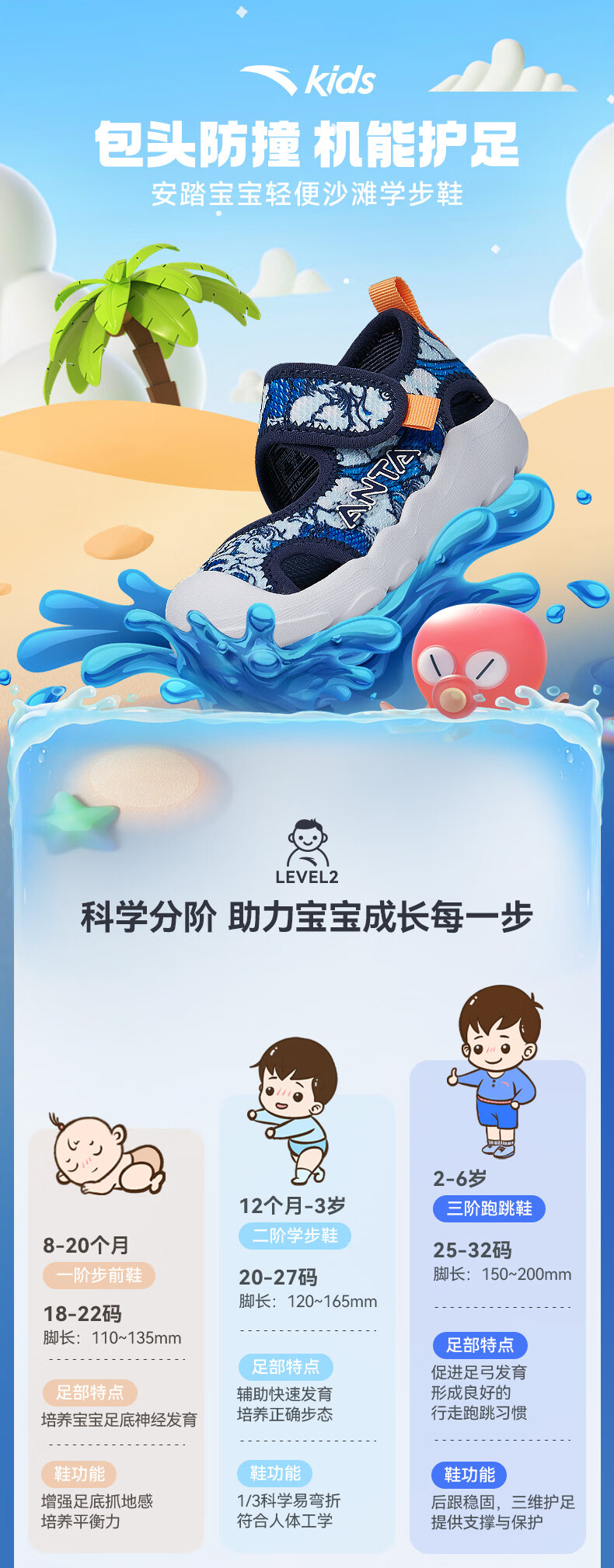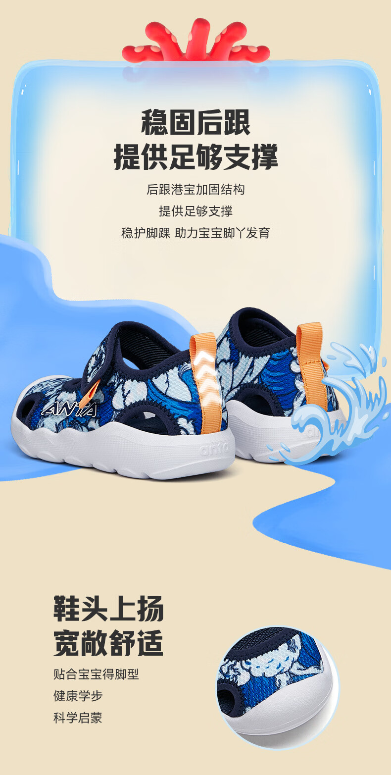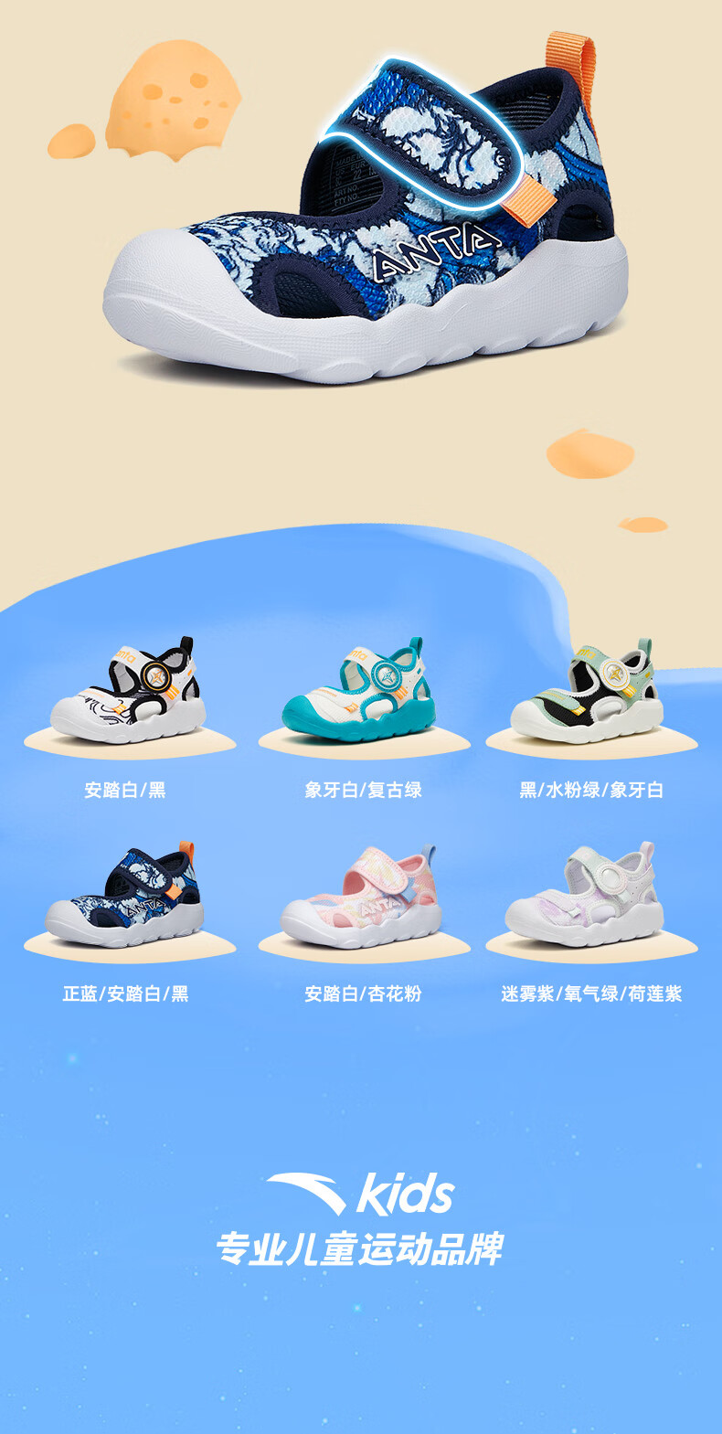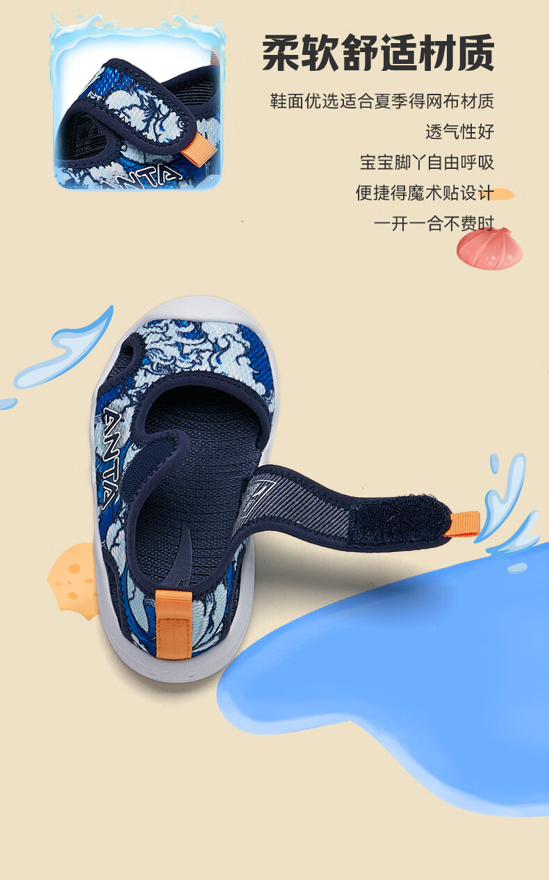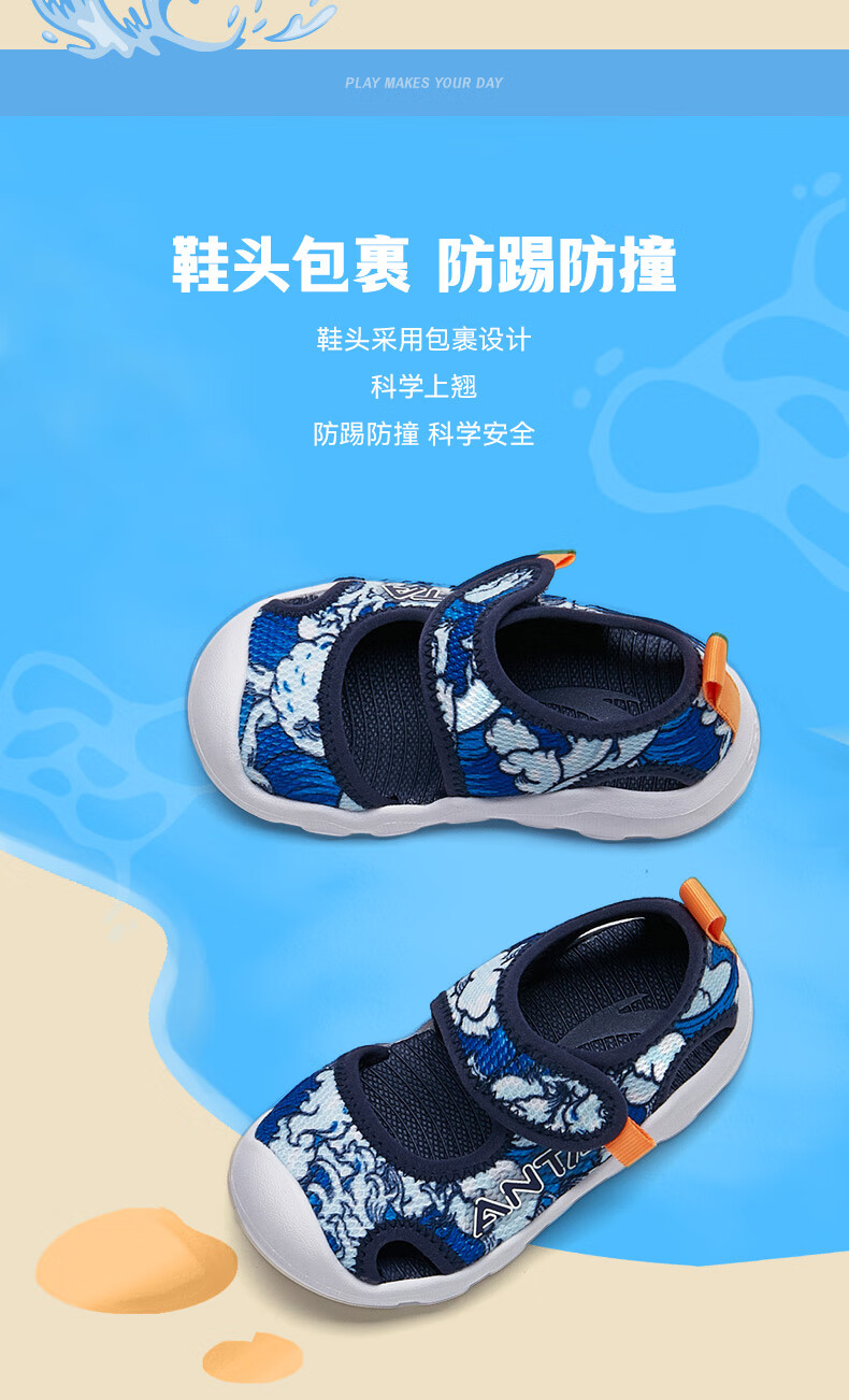 ANTA Children's Sandals 2026 Summer New Boys and Girls Baby Sandals Baotou Soft Sole Breathable Sports Beach Shoes True Blue/Anta White/Black-4 20