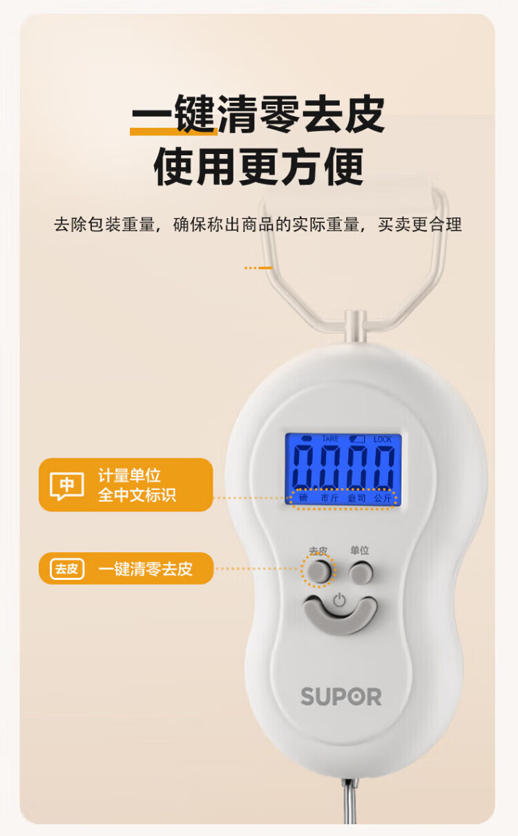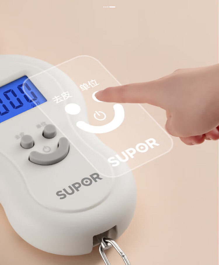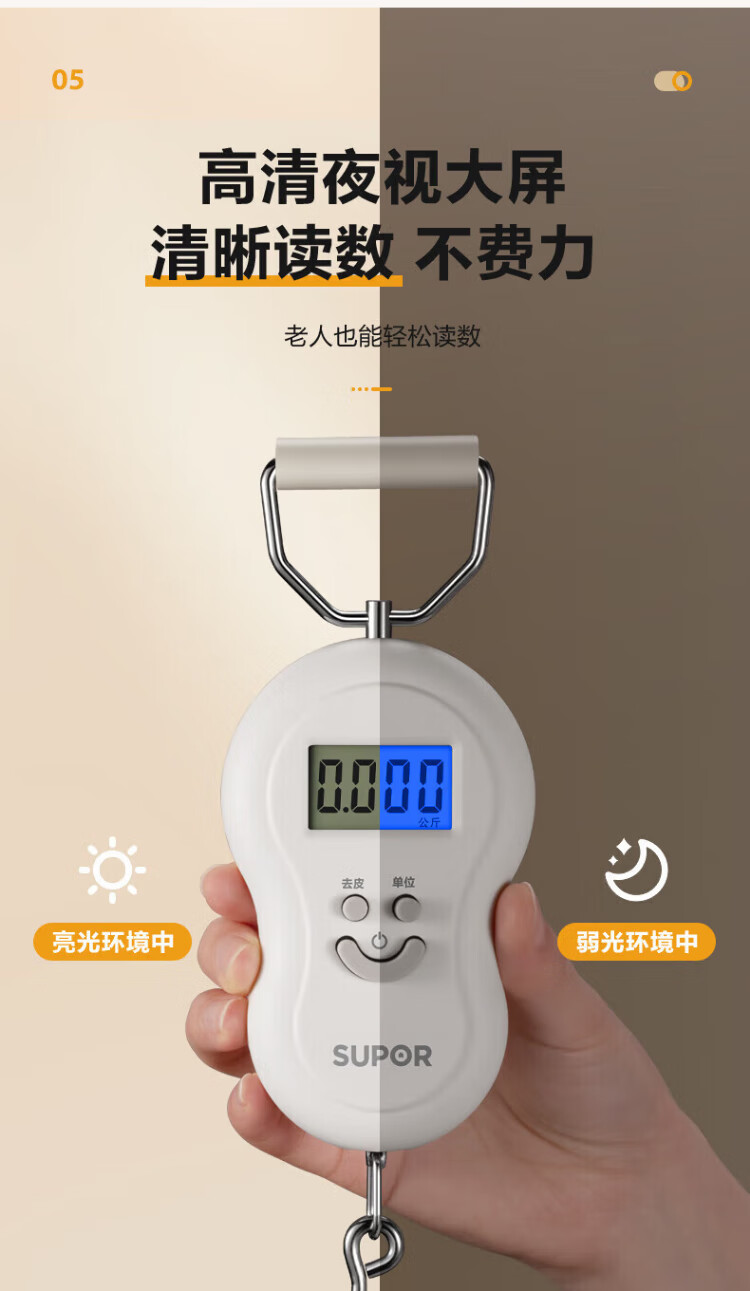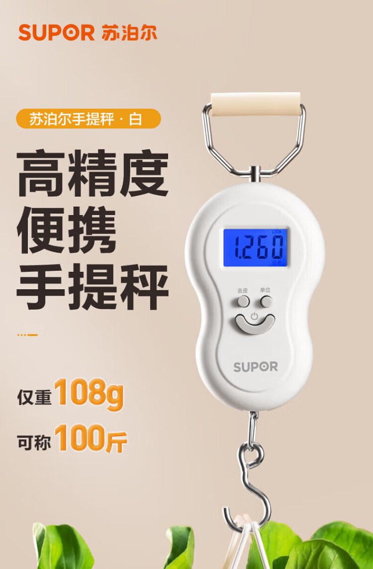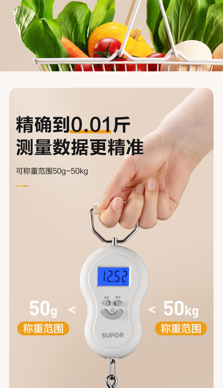 SUPOR electronic scale portable scale spring scale household electronic portable small scale kitchen hook scale high-definition screen high-precision portable electronic scale (weighing) 50kg