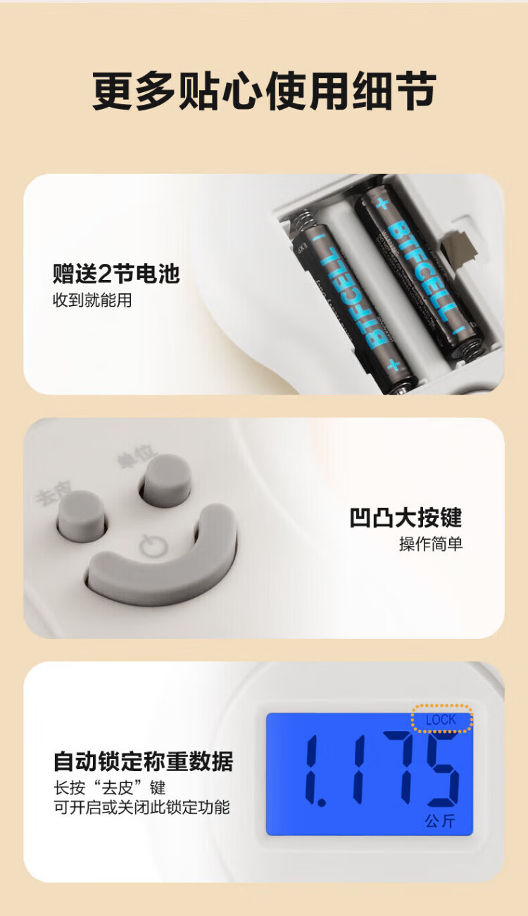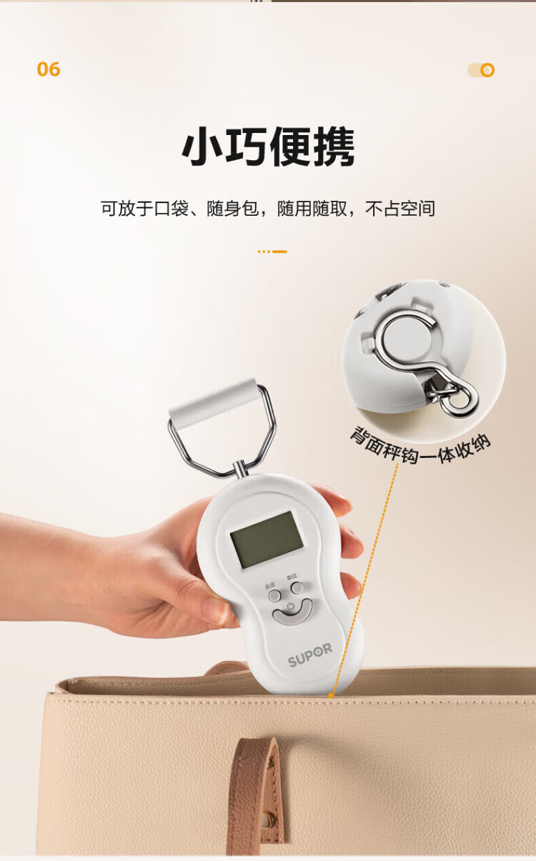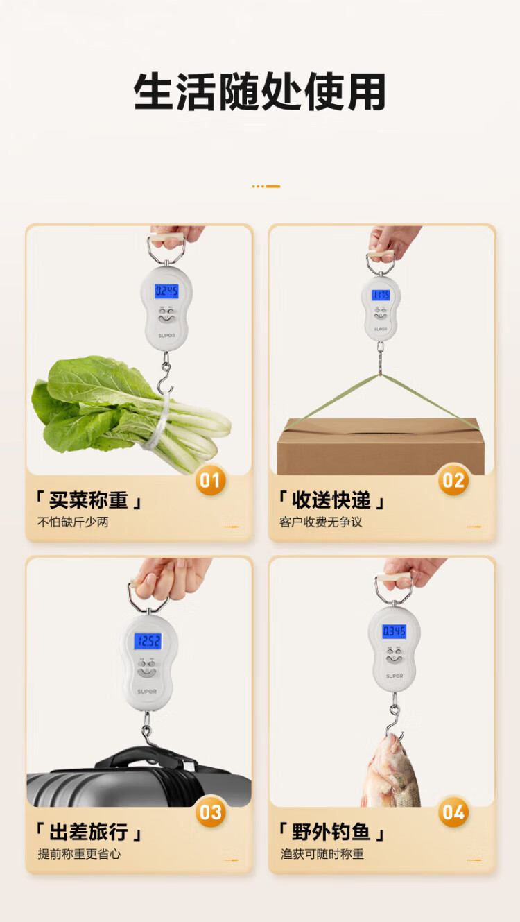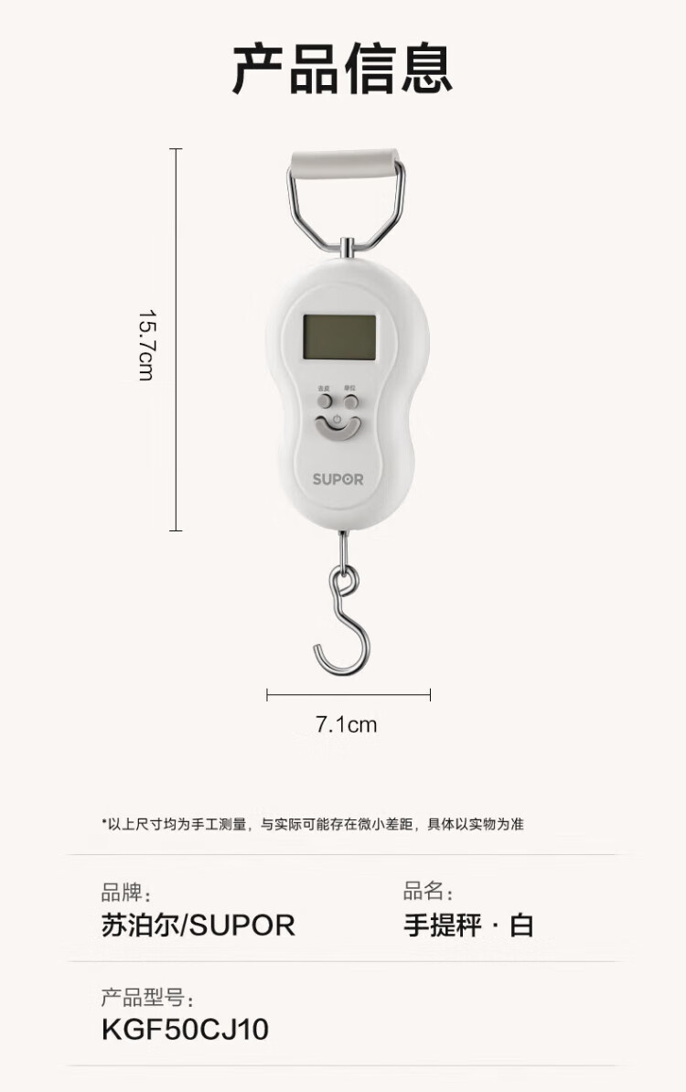 SUPOR electronic scale portable scale spring scale household electronic portable small scale kitchen hook scale high-definition screen high-precision portable electronic scale (weighing) 50kg