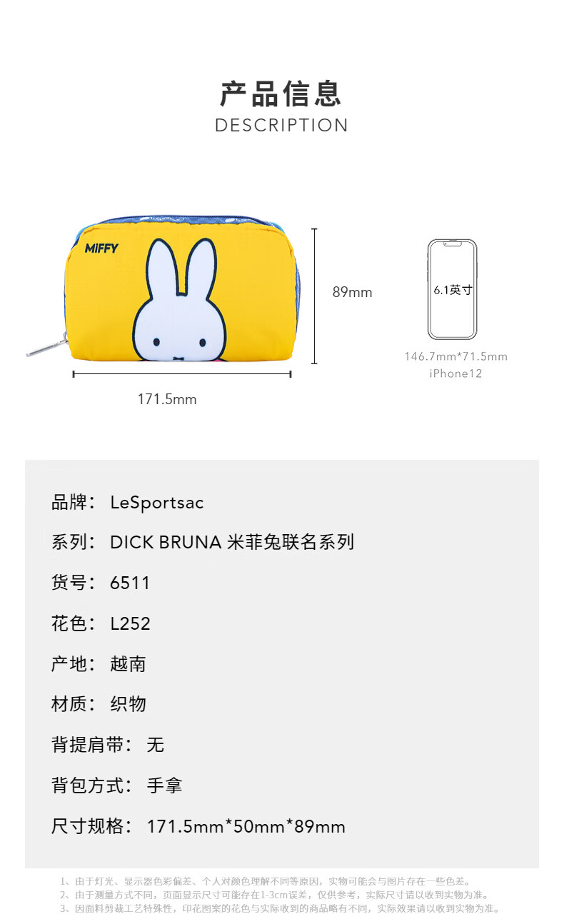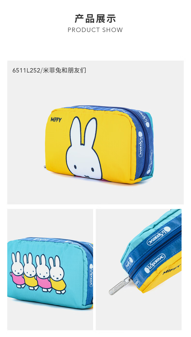 LeSportsac Lebo poetry bag women's bag new joint clutch bag cosmetic bag gifts for girls Miffy Rabbit and friends
