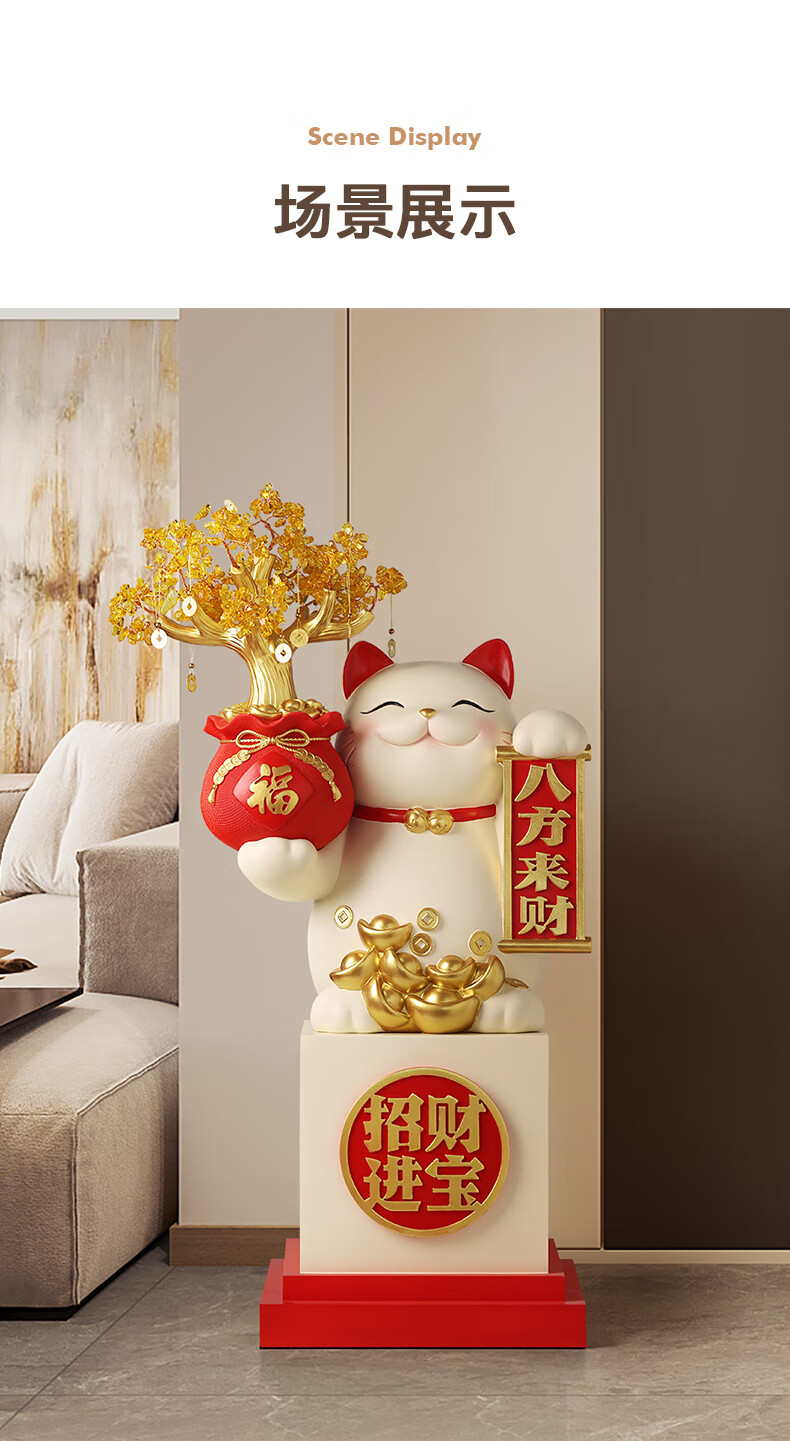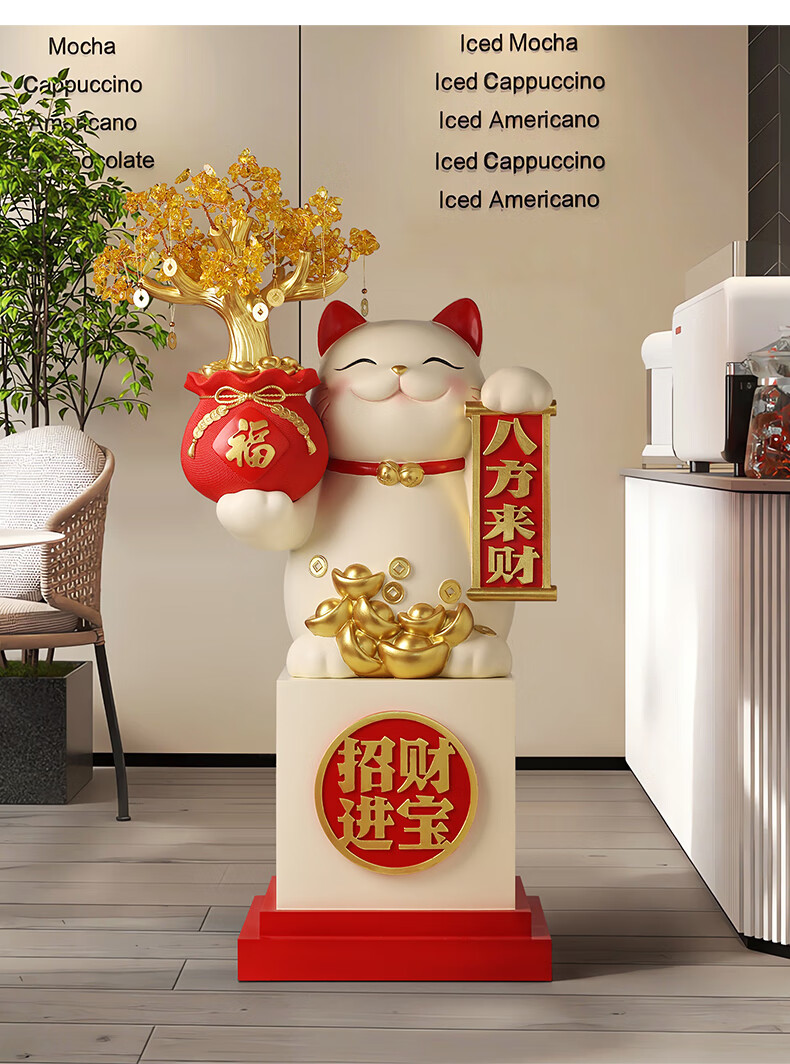 BHM large Lucky Cat floor-standing ornament opening gift practical high-end opening auspicious gift for opening business is booming red