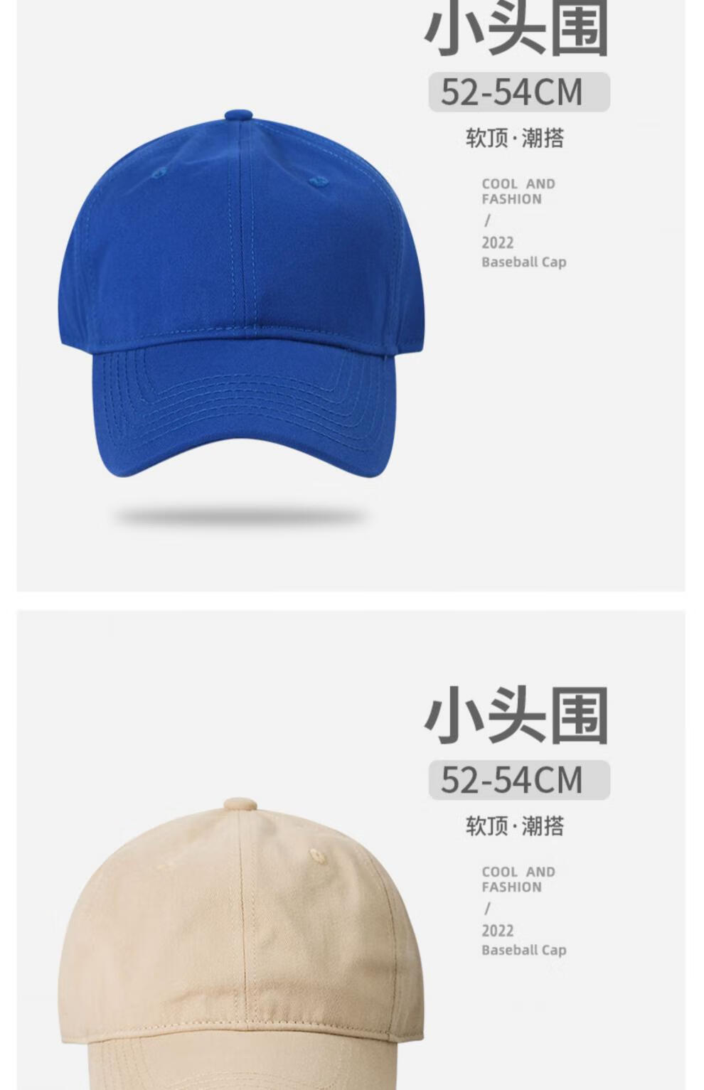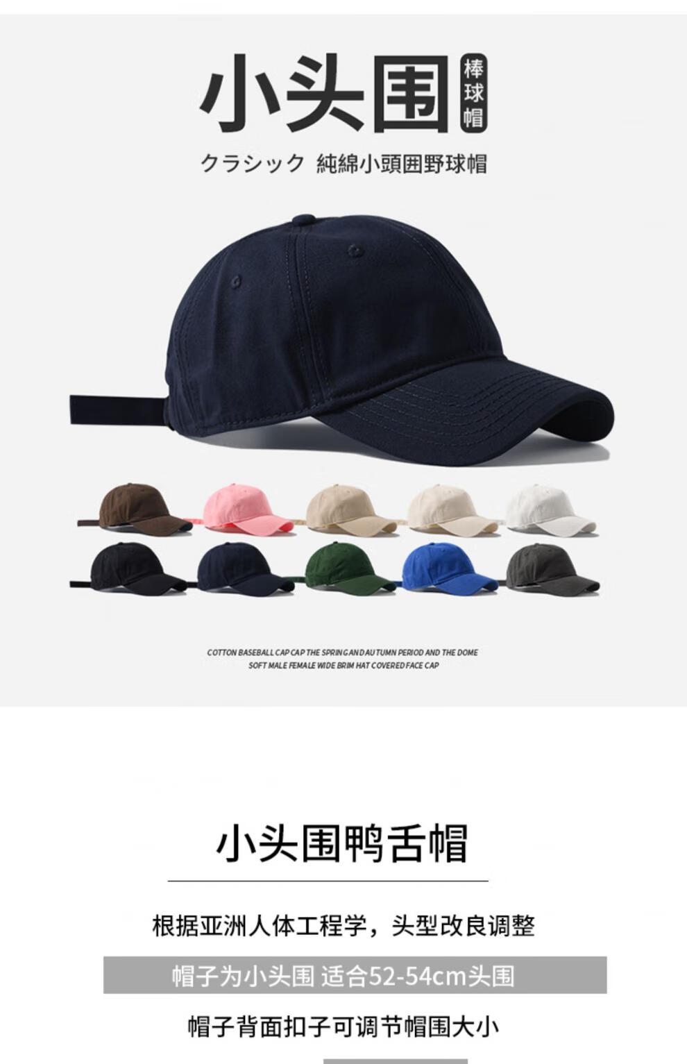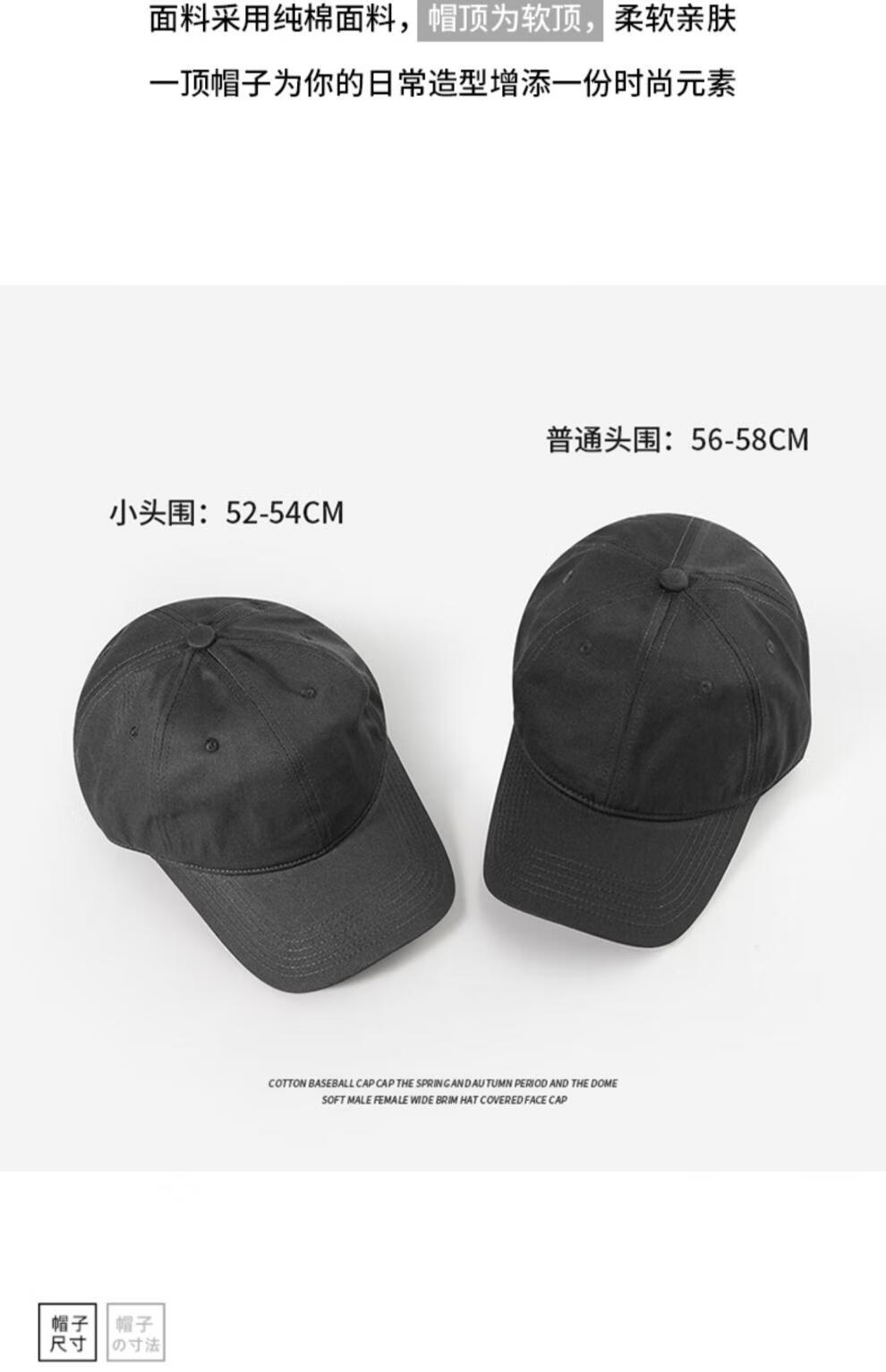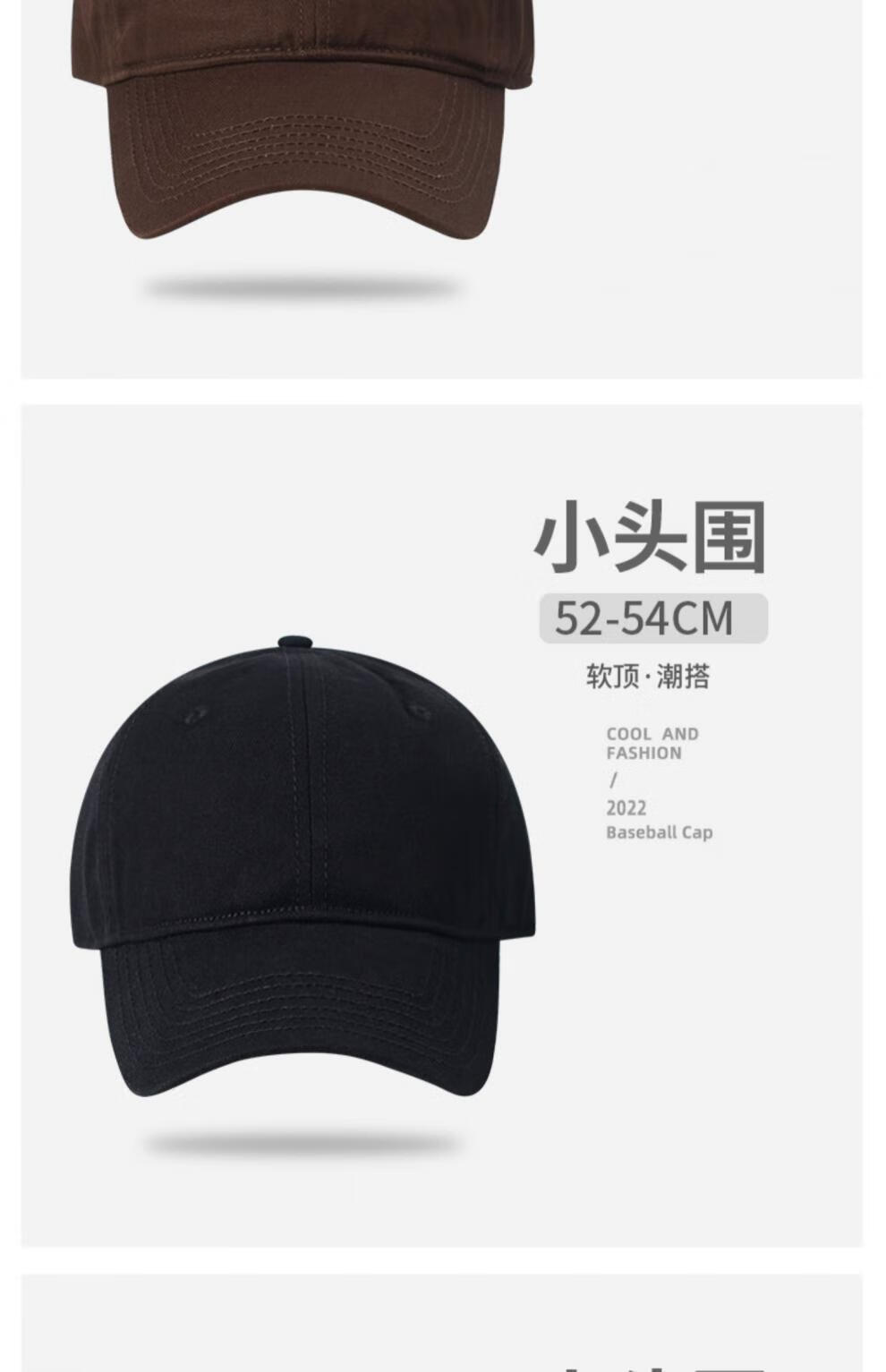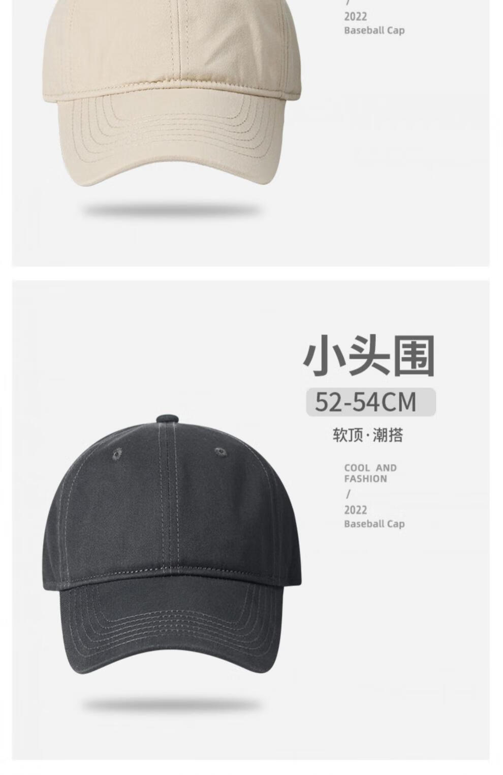 Woodpecker small head circumference hat men's solid color versatile baseball cap small head peaked cap small size sunshade soft top sun protection hat black S small head circumference (52-55c)