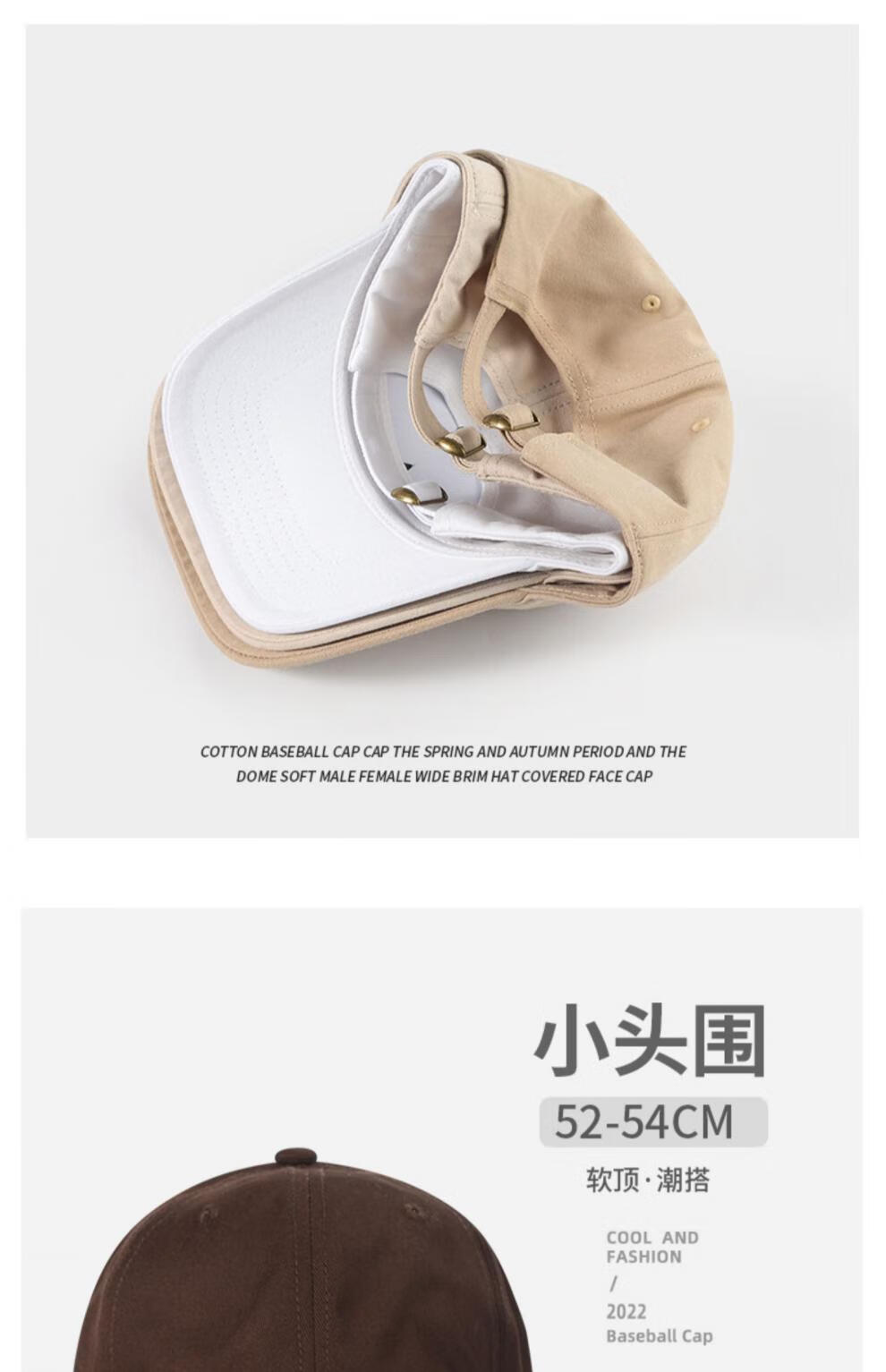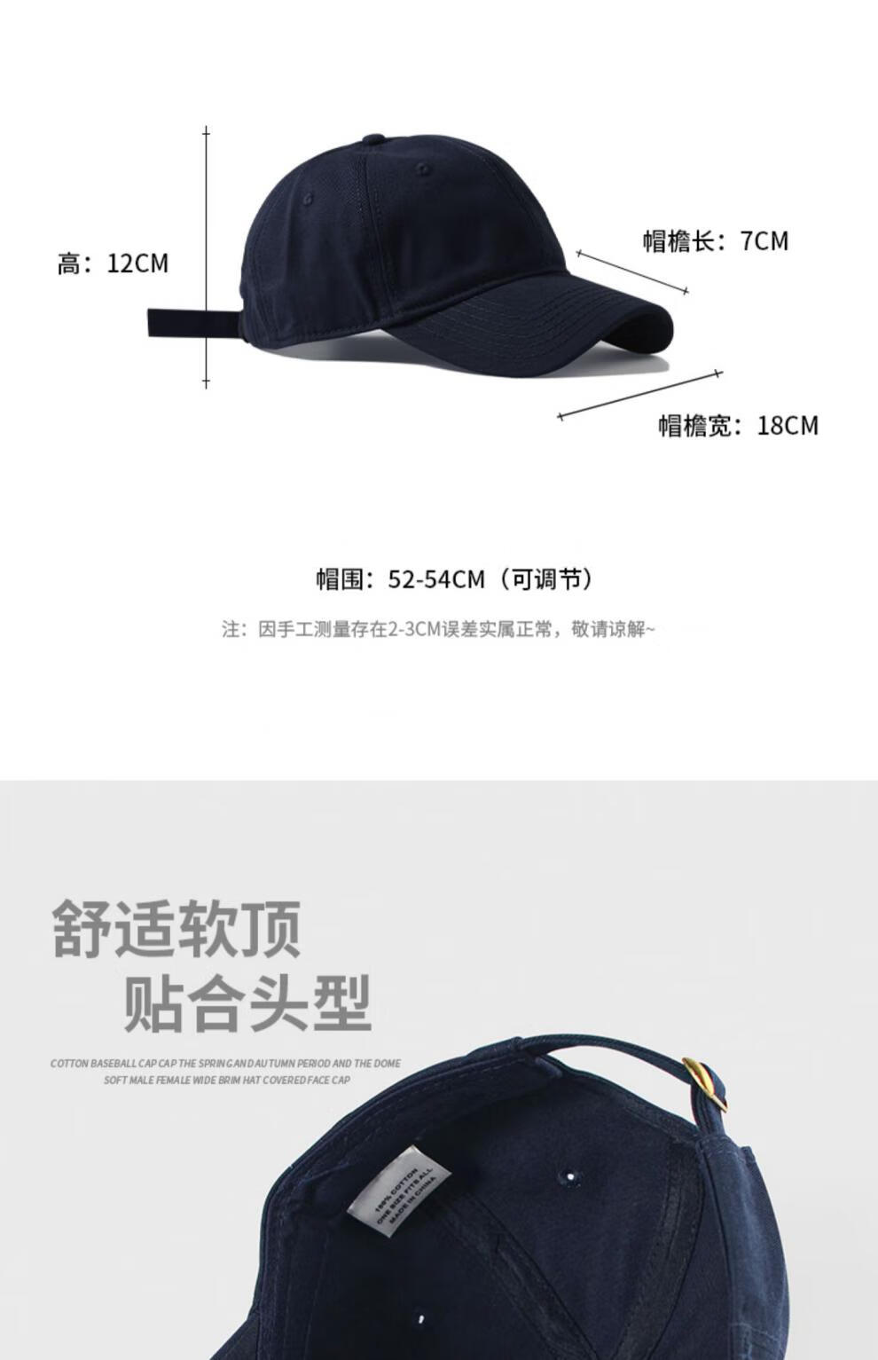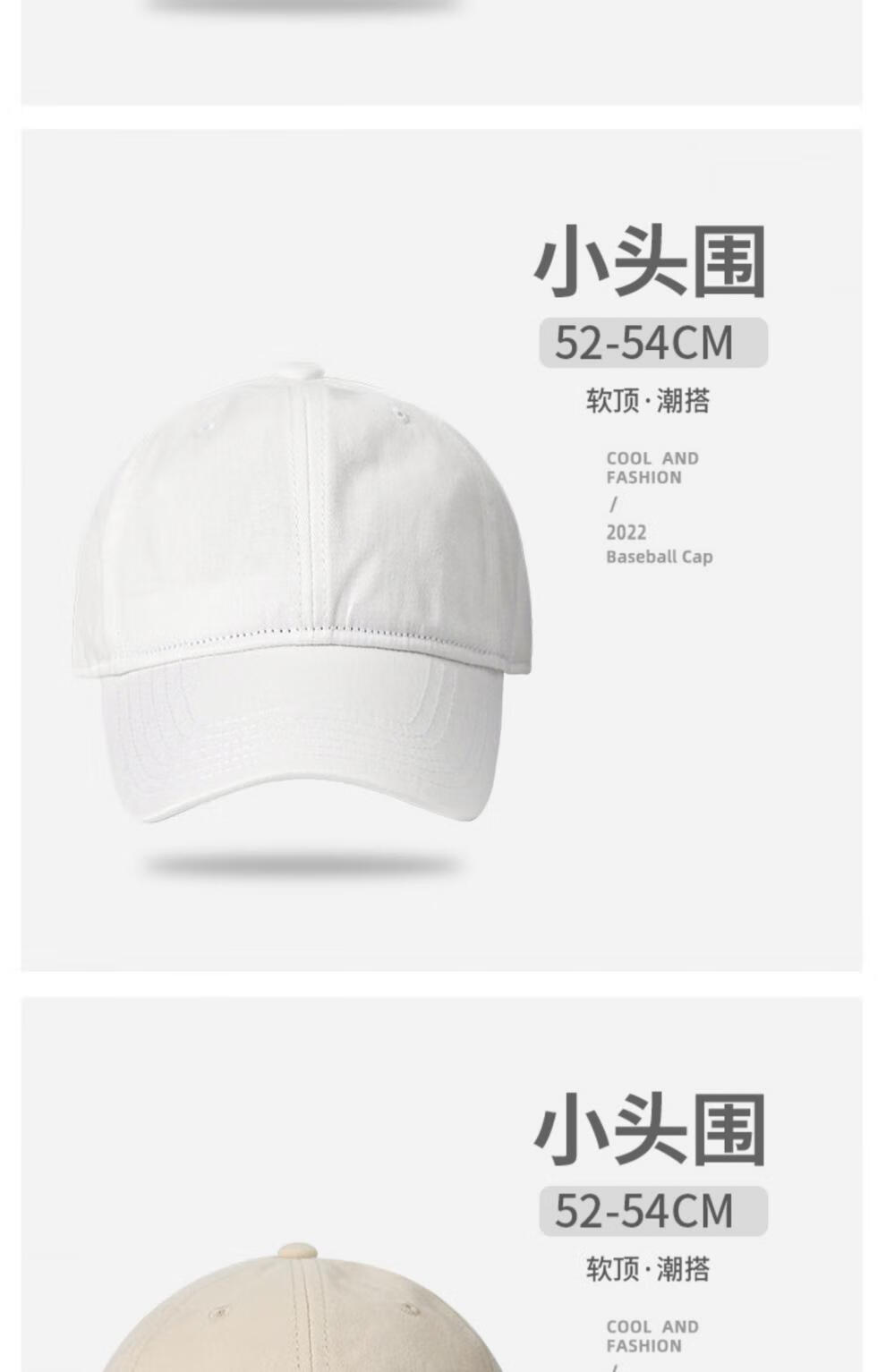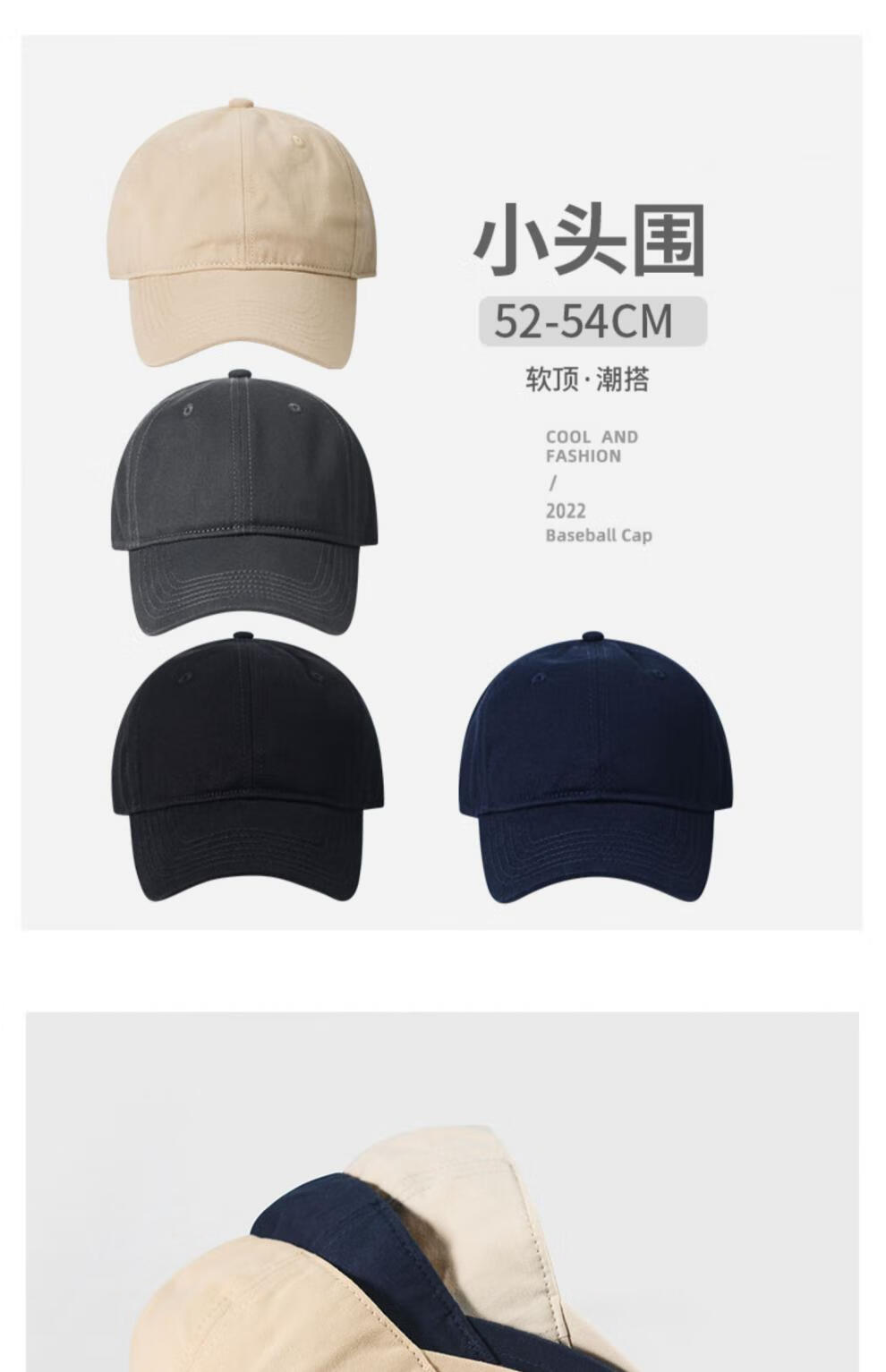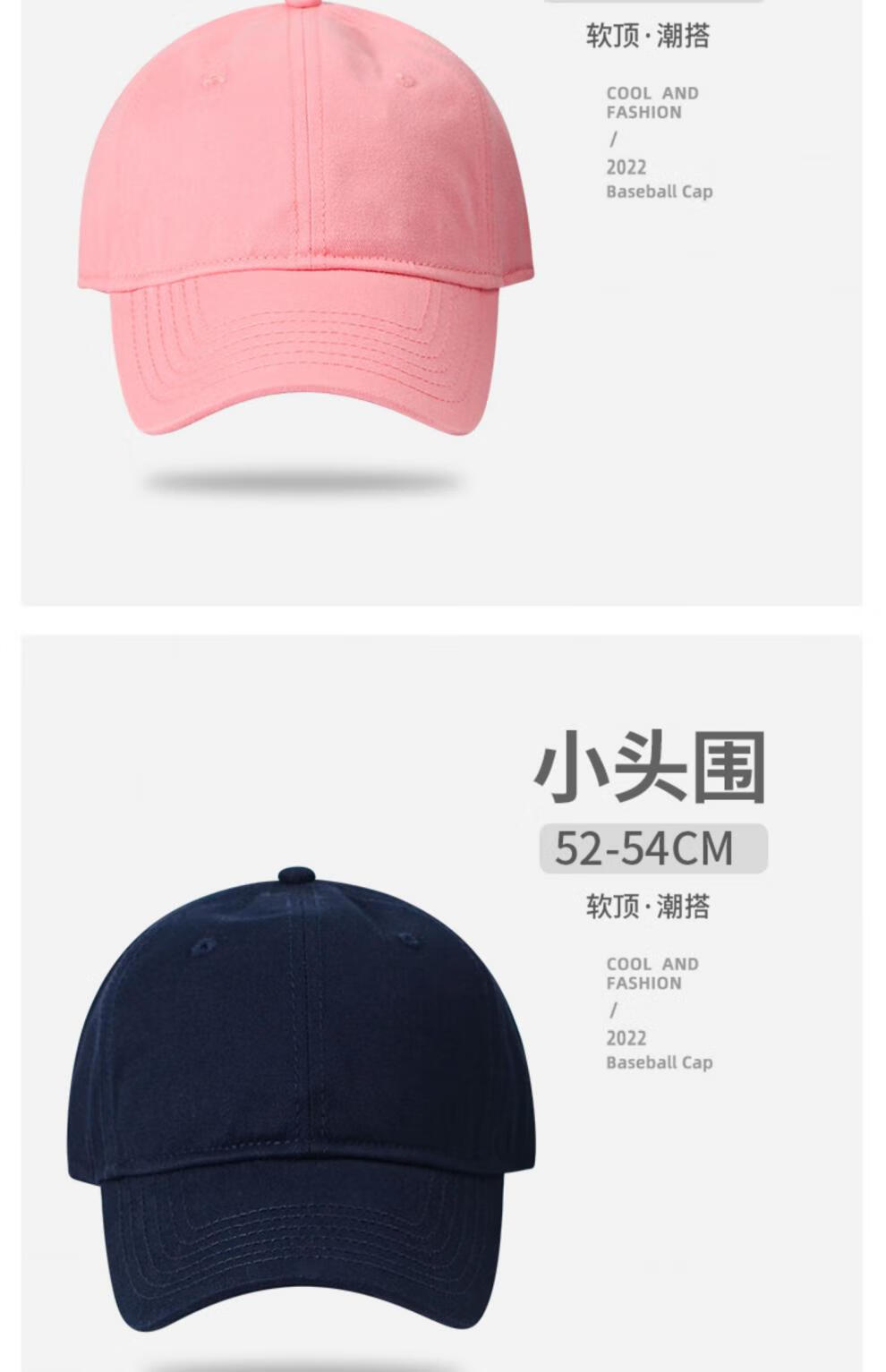 Woodpecker small head circumference hat men's solid color versatile baseball cap small head peaked cap small size sunshade soft top sun protection hat black S small head circumference (52-55c)