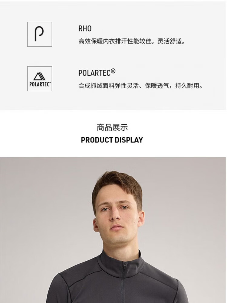 Arc'teryx (ARC TERYX) RHO HYBRID 1/2 ZIP men's warm, breathable and comfortable half-zip inner long-sleeved T-shirt Lampyre XL