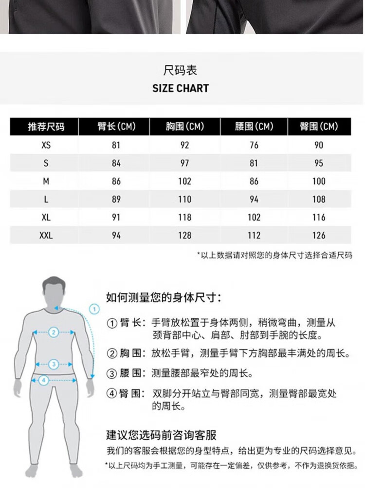 China (cm) 160-165/84-86 165-170 / 88-90 167-172 / 92-96 168-173 / 98-102 170-176 / 106-110