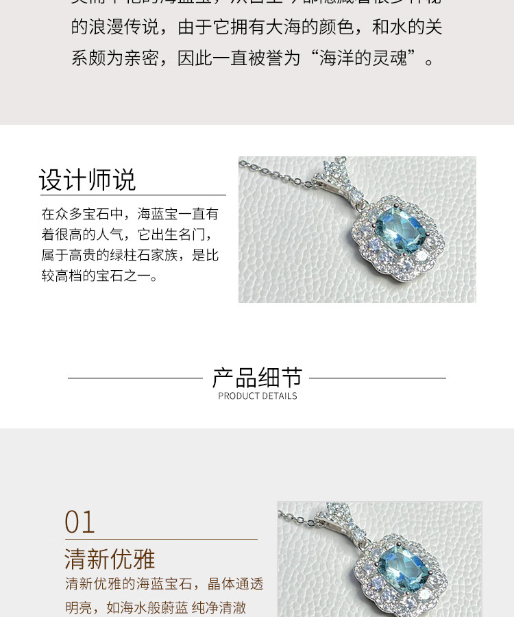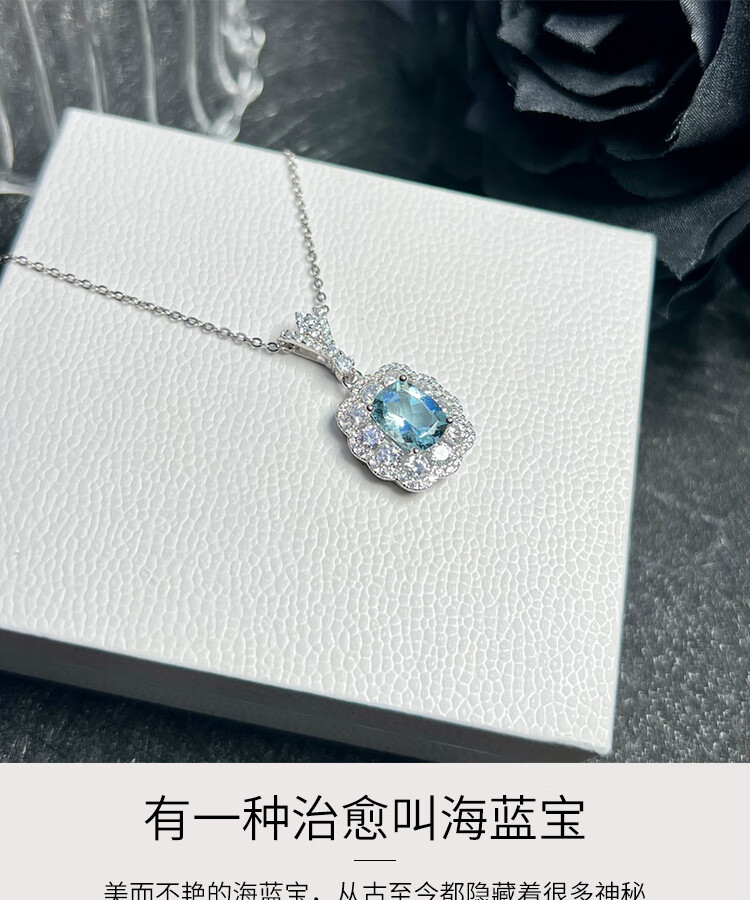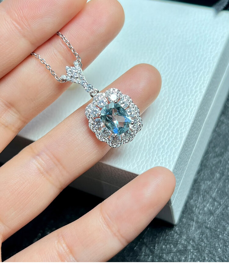 CAJJ Francois 1.60 carat aquamarine pendant for women, natural colored gemstone, jewelry gem 925 silver inlay, aquamarine pendant