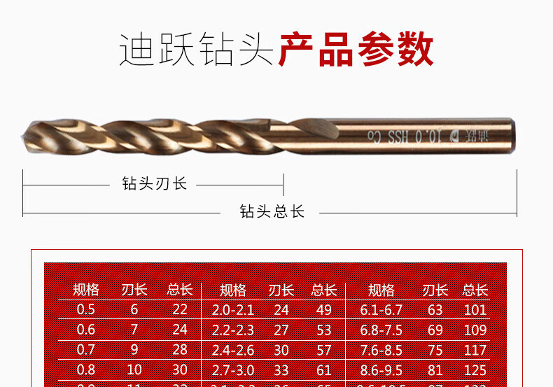 Diyue high cobalt small drill bit, cobalt-containing twist drill, special for drilling iron and stainless steel 1 3.0mm fine high hardness rotor 2 0.6mm ten pieces