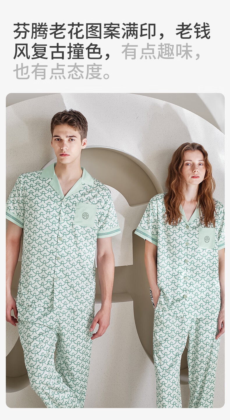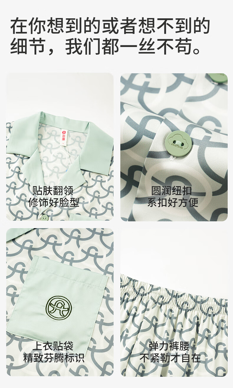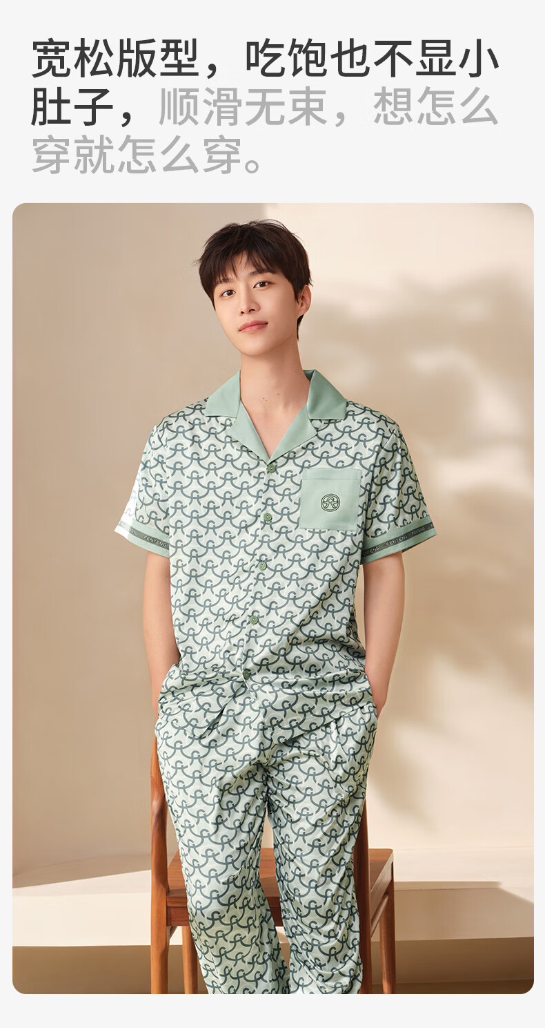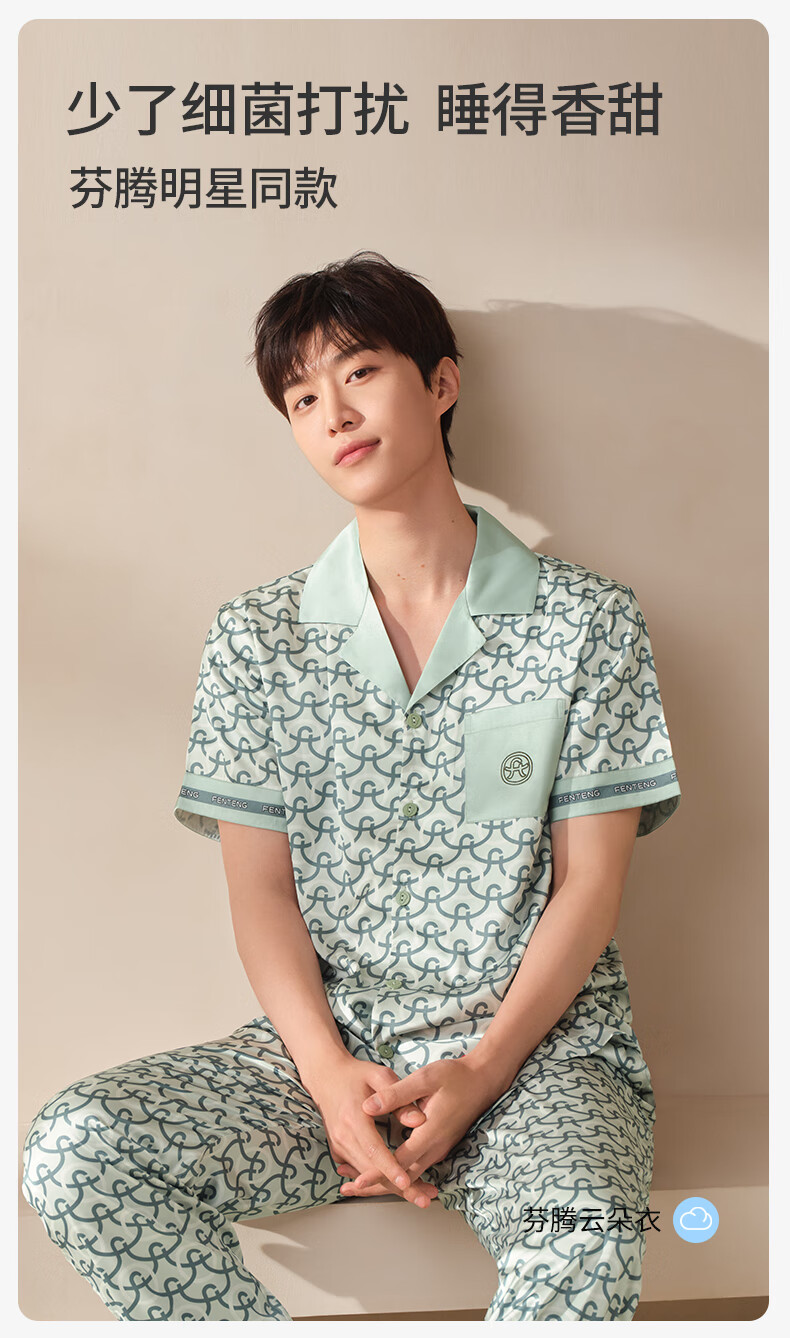 Fenton Pajamas Men's Fan Chengcheng's Same Style Star's Same Style Spring 5A Antibacterial Ice Silk Cool Cardigan Homewear Set Light Green-Men's 2XL