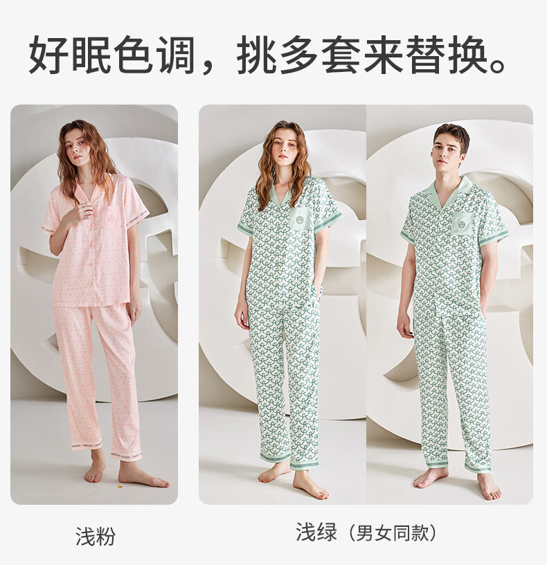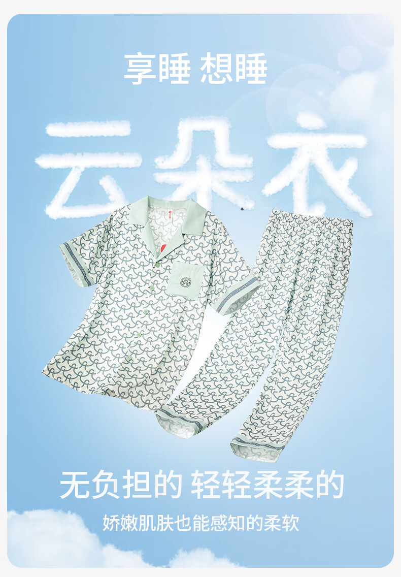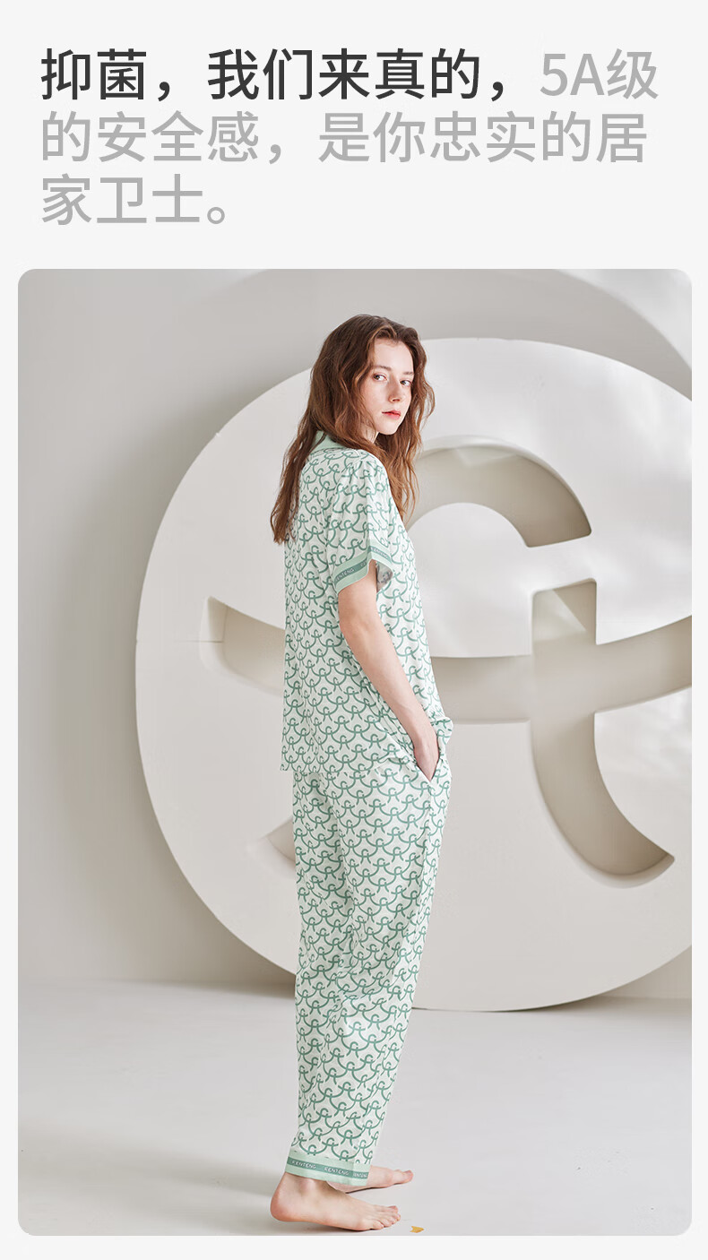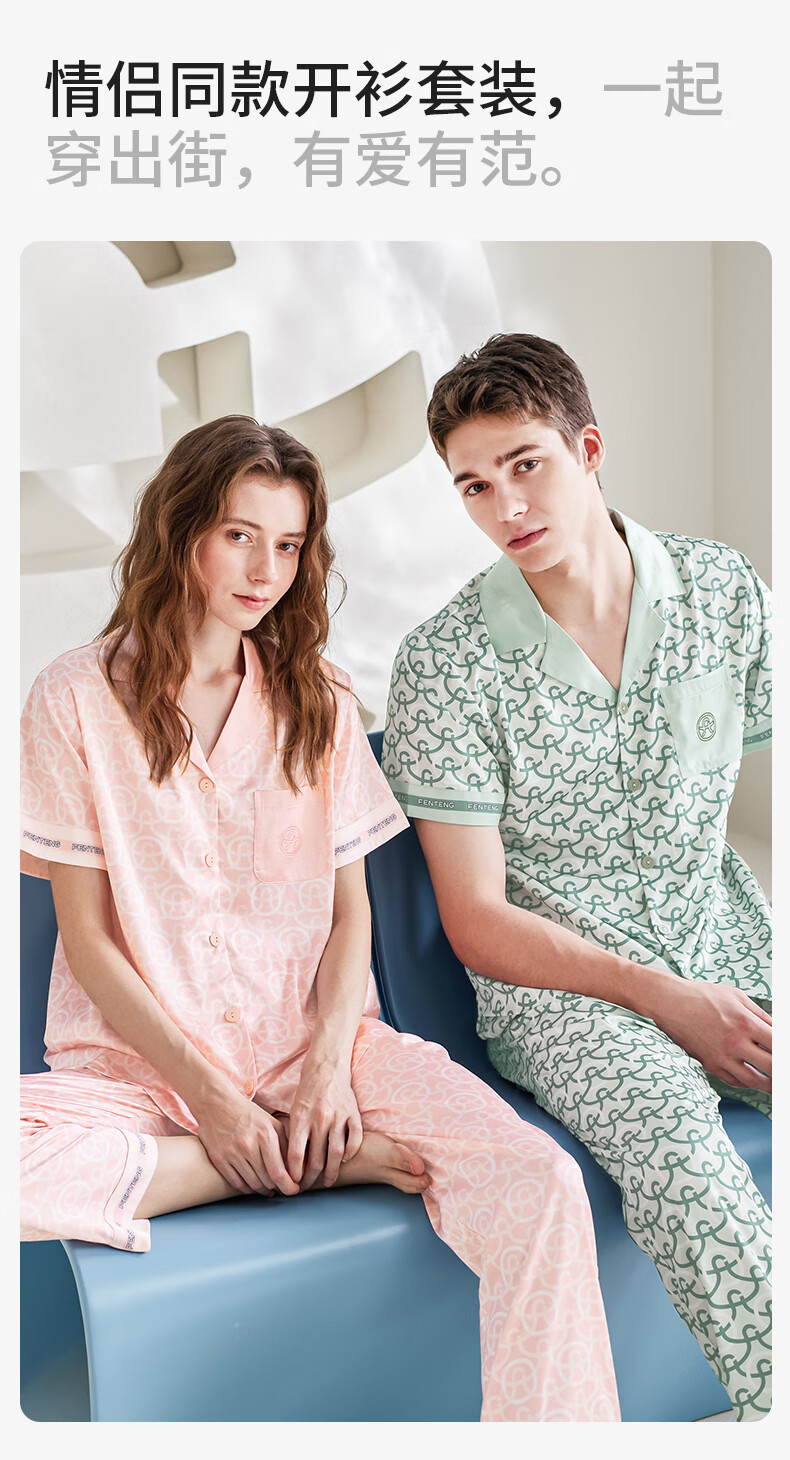 Fenton Pajamas Men's Fan Chengcheng's Same Style Star's Same Style Spring 5A Antibacterial Ice Silk Cool Cardigan Homewear Set Light Green-Men's 2XL