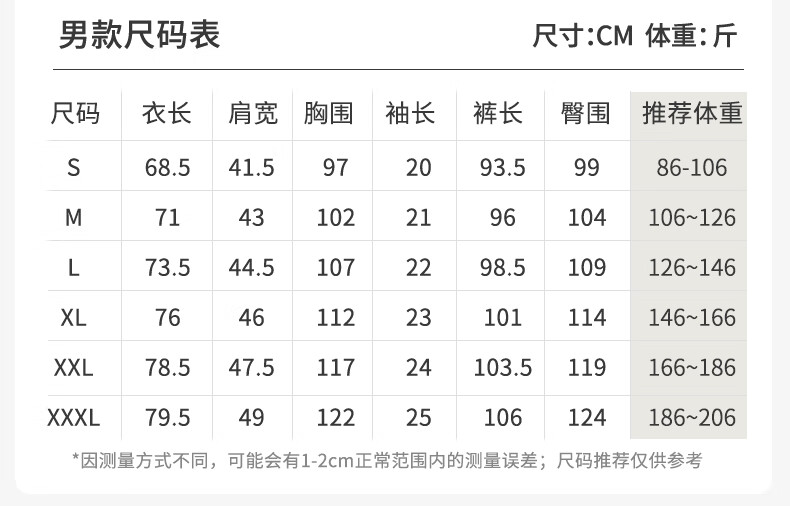 China (cm) 160-165/84-86 165-170 / 88-90 167-172 / 92-96 168-173 / 98-102 170-176 / 106-110